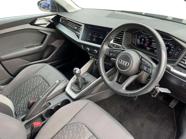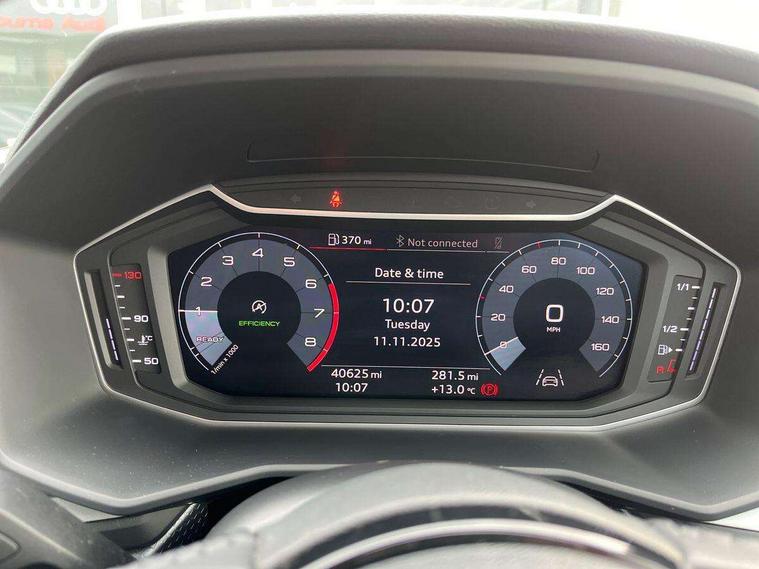 10.25" Digital instrument cluster display screen, Audi connect safety emergency and service including E-call, Audi drive select, Audi smartphone interface, Automatic start/stop system, Bluetooth interface, Driver's information system, Electromechanical power steering, Lane departure warning system, Service interval indicator, Speed limiter, Voice control system, Washer fluid level indicator, Dynamic suspension, 1 x SDXC card reader, 1 x USB type C and 1 USB type A charging points, Audi music interface, Bluetooth audio streaming, DAB Digital radio, MMI radio plus with 8.8" colour MMI display screen and MMI touch, Adaptive brake lights, Auto dimming rear view mirror, Body coloured bumpers, Body coloured door mirrors, Electric front and rear windows, Front side air inlets in grained matt black and C frame in titanium black, Heat insulating glass windscreen and side windows, Heated rear windscreen, LED headlights with LED rear lights + dynamic rear indicators, Radiator grille in matt titanium black, Radiator protective grille frame in matt aluminium silver, Rain and light sensors, Rear fog lights, Rear wiper, Side front spoiler lips in grained matt black, Titanium black matt diffuser, 12V socket in centre console with two cup holders, 3 rear seats, Door sills trims with aluminium inlays, Driver and passenger seat with manual height adjust with forward and backwards adjustment, Front head restraints, Front/rear floor mats, Height and reach adjustable steering wheel, Illuminated glovebox, ISOFIX child seat mounting in front passenger and rear outer seats, Leather gear knob with aluminium trim, Leatherette handbrake grip, Luggage compartment light with front and rear reading lights, Lumbar adjustment for front seats, Novum cloth upholstery with front sport seats, Rear head restraints, Split folding rear seats, Titanium grey cloth headlining, 3x3 point rear seatbelts, Brake assist function, Driver and front passenger airbag with front side and head airbags, Electronic Stability Control including ABS, EBD, ASR and EDL, Front and rear seatbelt reminder, Front passenger airbag deactivation switch, Hill hold assist, Seatbelt height adjustment for front seats, Seatbelt monitoring, Tyre pressure warning light, Warning triangle and first aid kit, Anti theft alarm, Anti theft wheel bolts and loose wheel warning, Audi pre-sense front with pedestrain and cyclist recognition, Immobiliser, Remote central locking with 2 remote folding keys, Aluminium trim for control switches, air vents and digital instrument cluster, Silver grey accent areas including air vents, door handle recesses and centre console in diamond paint finish, Slate grey inlays polygon structure in fine paint finish,