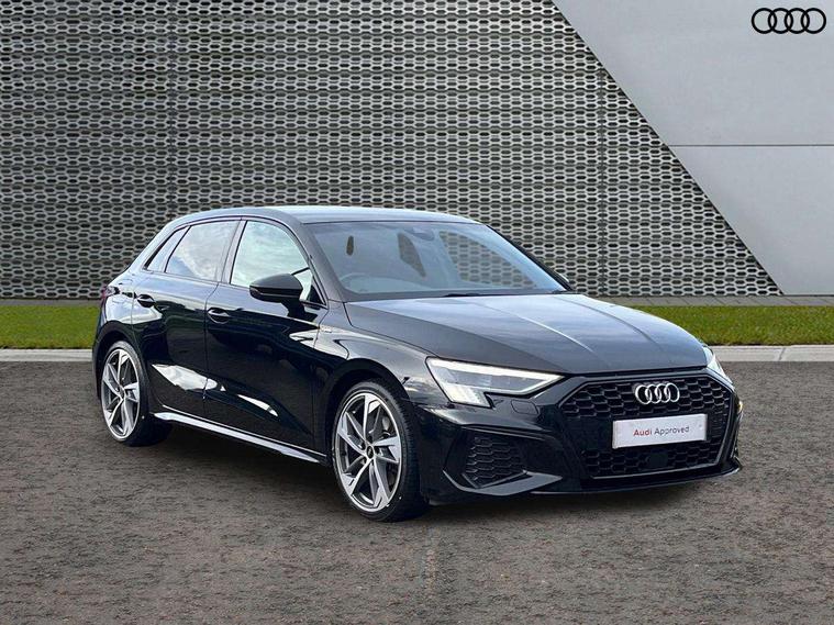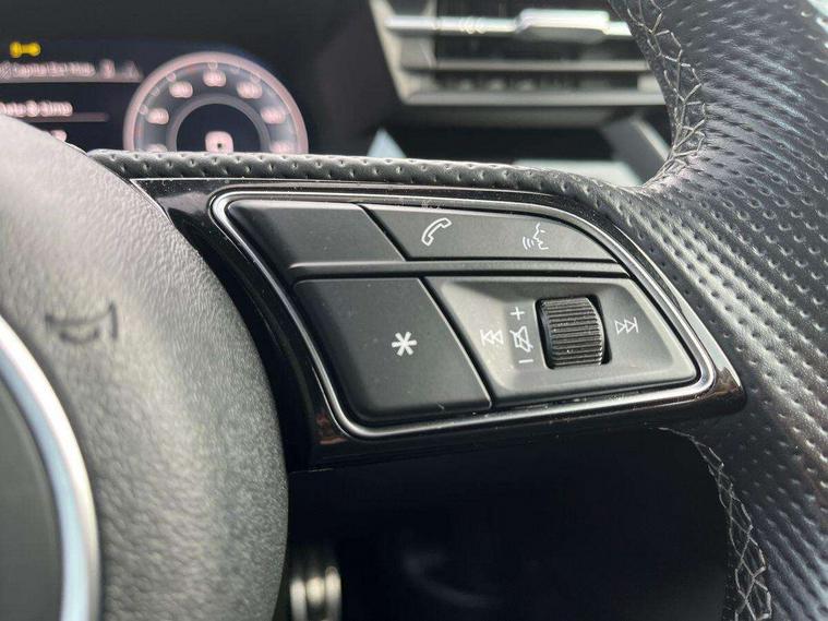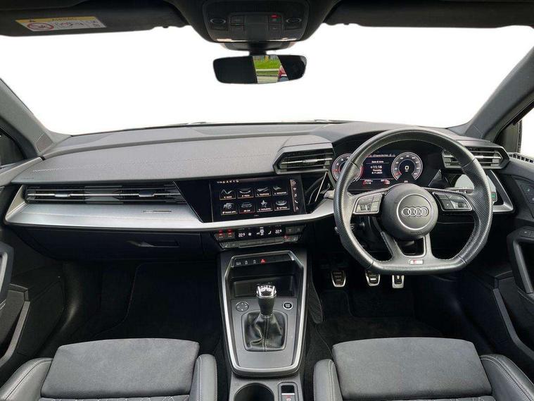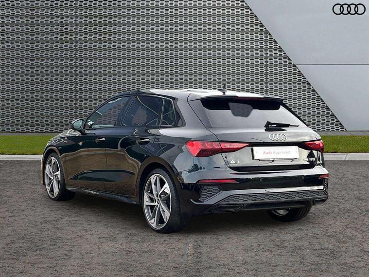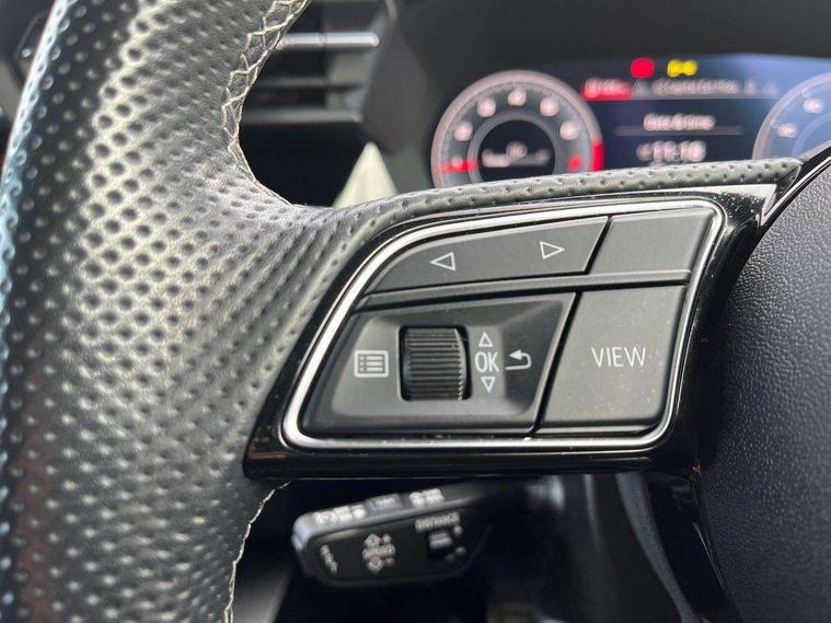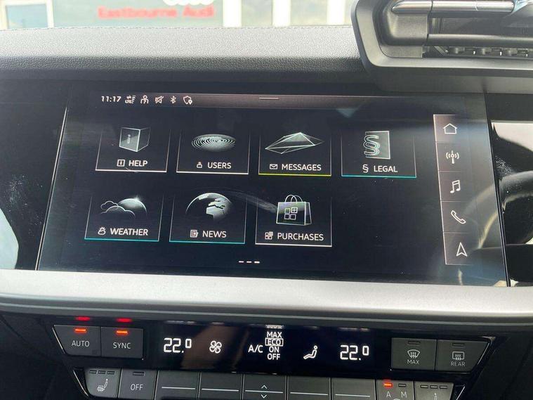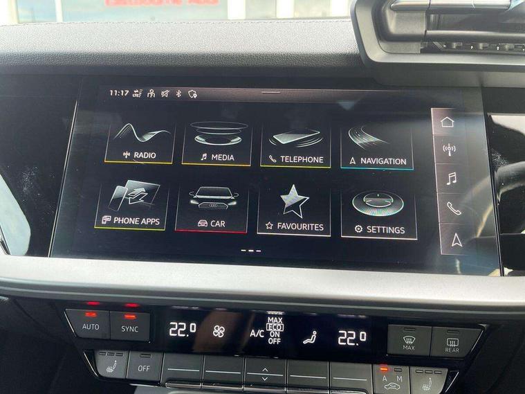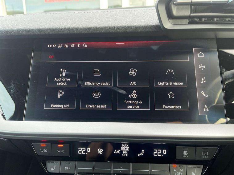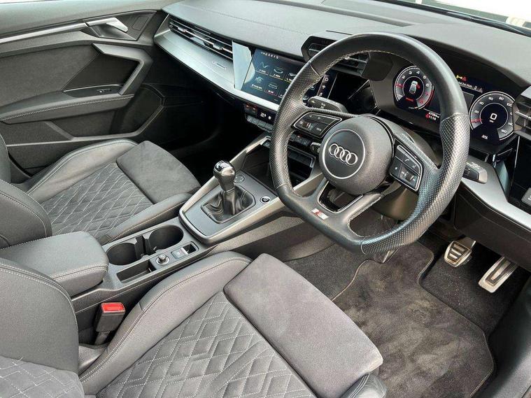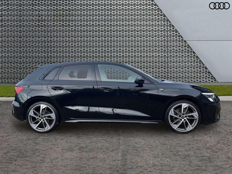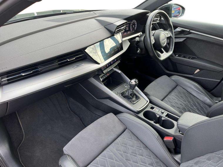 Audi connect emergency call and service, Audi drive select (Auto, Comfort, Dynamic, Efficiency and Individual), Audi smartphone interface, Audi virtual cockpit plus - 12.3" full HD resolution dynamic digital instrument cluster, Automatic start/stop system with recuperation, Bluetooth interface, Collision avoidance assistant, Electromechanical power speed sensitive steering, Lane departure warning system, MMI Navigation Plus with high resolution 10.1" colour touch screen display, Service indicator, Trip computer, Voice control system with natural language interaction, Sports suspension, 2xUSB-C connection with data and charging functions, 6 passive loudspeakers, DAB Digital radio, 3rd brake light, Acoustic glass windscreen, Audi matrix LED headlights with LED rear lights + dynamic front and rear indicators, Auto dimming frameless rear view mirror, Body colour front spoiler blade, Front electric windows, Headlight washers, Illuminated aluminium inserts front door sills with S logo, LED daytime running lights, Light and rain sensors, Privacy glass - dark tinted rear window, rear door and side windows, Rear diffuser in grained matt black, Rear electric windows, Rear side air outlets in grained matt black, Rear wiper, S roof spoiler, 12V socket and storage compartment in front centre console, 4 way electrically adjustable lumbar support for driver and front passenger, 40/20/40 split folding rear seat bench with cupholder, Black cloth headlining, Dual zone electronic climate control, Front and rear centre armrest in leather, Front and rear headrests, Front/rear floor mats, Heated front seats, Height and reach adjustable steering wheel, Interior lighting - glove compartment light and right hand side, Luggage compartment floor covering, Seat side bolsters, Stainless steel pedals and front footrest, Aluminium interior elements pack - A3 Sportback, Black styling pack - A3 Sportback, Dinamica microfibre/mono.pur 550 artificial leather pack - A3 Sportback, Extended ambient lighting pack - A3 Sportback, LED interior lighting pack - A3 Sportback Edition 1/Vorsprung, 3x3 point rear seat belts, Driver and front passenger airbag with passenger airbag deactivation, Electronic Stabilisation Control (ESC) including ABS, ASR and EDL, First aid kit with warning triangle and 2 safety vests, Front side airbags with head airbags and interaction airbag, Hill hold assist, Pre-sense front with pedestrian and cyclist detection, Seatbelt monitoring, Tyre pressure loss indicator, Anti theft alarm, Anti-theft wheel bolts, Electronically operated child lock, Immobiliser, Remote control central locking, Accent surfaces in the dashboard and centre console in platinum grey silk effect paint finish, Dark spectrum aluminium inlays, 19" 5 arm trapezoid design alloy wheels in titanium matt grey with diamond cut finish,