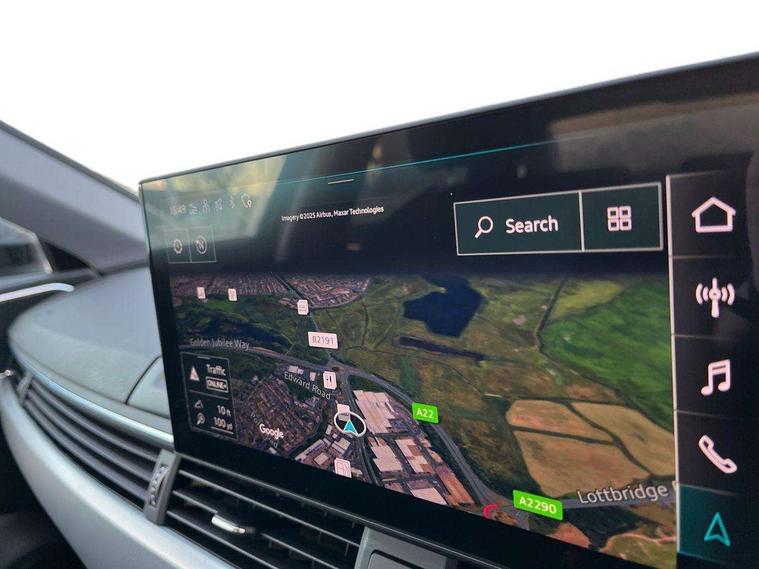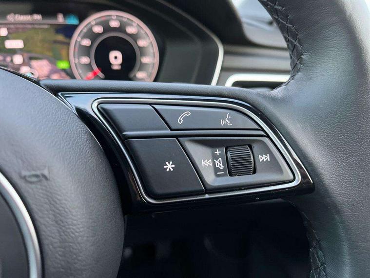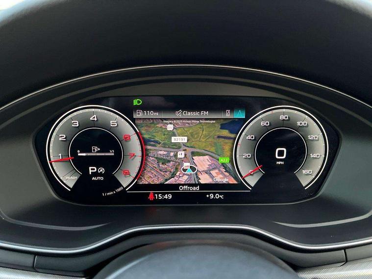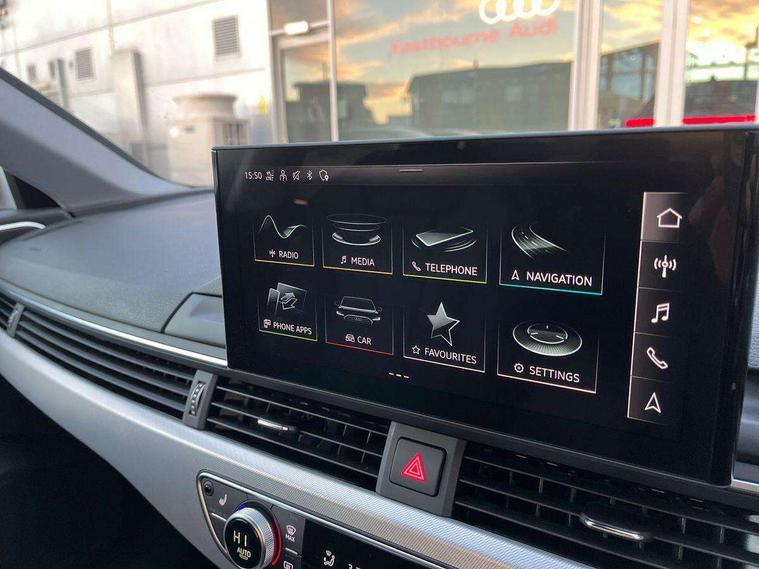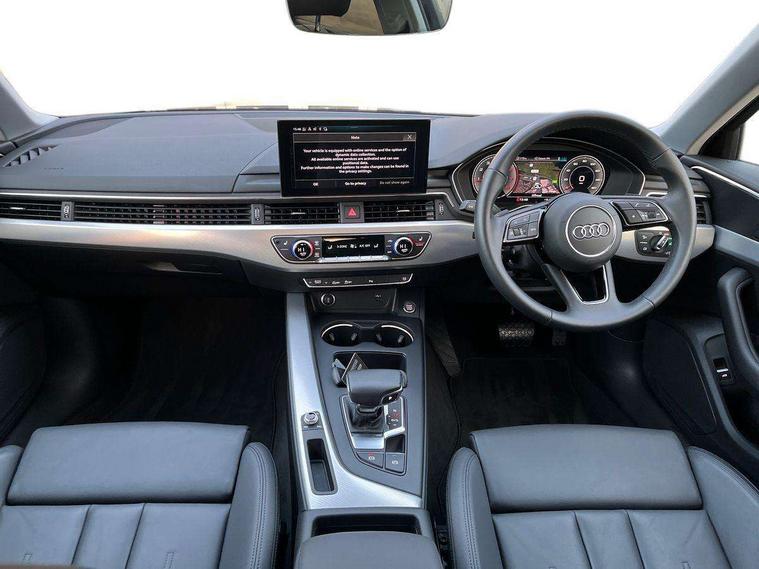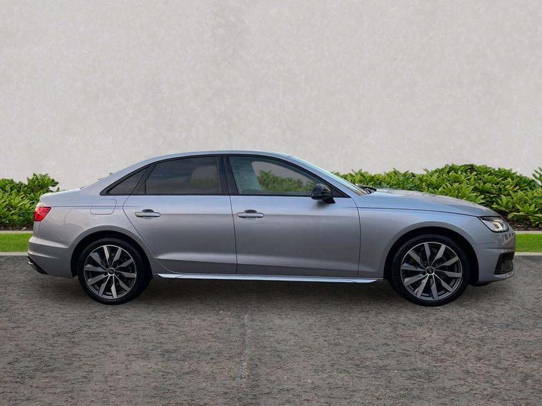 Audi connect safety and service (e-call), Audi connect with Amazon Alexa Integration, Audi drive select, Audi smartphone interface, Audi virtual cockpit, Automatic start-stop system with coasting functionality and efficiency programme, Bluetooth interface, Cruise control system with speed limiter, Electric boot lid release, Electromechanical power steering, Email, calendar and text messages displayed via MMI, MMI Navigation plus with MMI touch includes 10.1" high resolution colour MMI display, 3D map, Voice control system, 54 litre fuel tank, Comfort dynamic suspension, 2 USB charging ports, 8 passive loudspeakers, DAB digital radio reception, Auto dimming rear view mirror, Body colour door handles, Body colour side sill trim, Electrically folding auto dimming/adjustable/heated door mirrors with LED side indicators and kerb view function for passenger side, LED headlights and rear lights with LED daytime running lights, LED third brake light, Matt aluminium silver tailpipe trim, Privacy glass, Rain and light sensors, Rear boot, Rear diffuser in matt titanium black with trim strip in matt aluminium silver, Rear side wing doors, Sport front and rear bumpers with side skirts, Variable intermittent front wash/wipe, Windscreen with acoustic glazing, 3 spoke high multi-function leather sport steering wheel with paddle shift and height and reach adjustable, 4 way electric lumbar support for driver and front passenger, 40/20/40 split folding 3 rear seat bench in 3 parts with rear centre armrest, Deluxe 3 zone electronic climate control, Door sill trims with aluminium inlay, Front and rear head restraints, Front centre armrest, Heated front seats, ISOFIX child seat mounting and top tether, Manual seat adjustment, Single front passenger seat, Twin leather upholstery + front sports seats, Black styling pack - A4 Saloon Sport Edition/S4 Black edition/S4 Vorsprung, High gloss package - A4, LED Interior light pack - A4/S4, 3 rear seatbelts, 6 airbags - Driver, front passenger, curtain and side windows, Electronic Stabilisation Control (ESC) including ABS, ASR and EDL, Hill hold assist, Multi collision brake assist, Pop-up bonnet for pedestrian protection, Pre sense city, Rear door child safety locks, Seatbelt monitoring, Warning triangle and first aid kit, Anti theft alarm, Anti theft wheel bolts, Central locking, Keyless Go, Aluminium ellipse silver inlays, 18" 10 spoke dynamic design alloy wheels, Tool kit, Tyre repair kit,