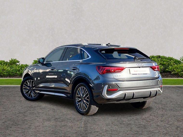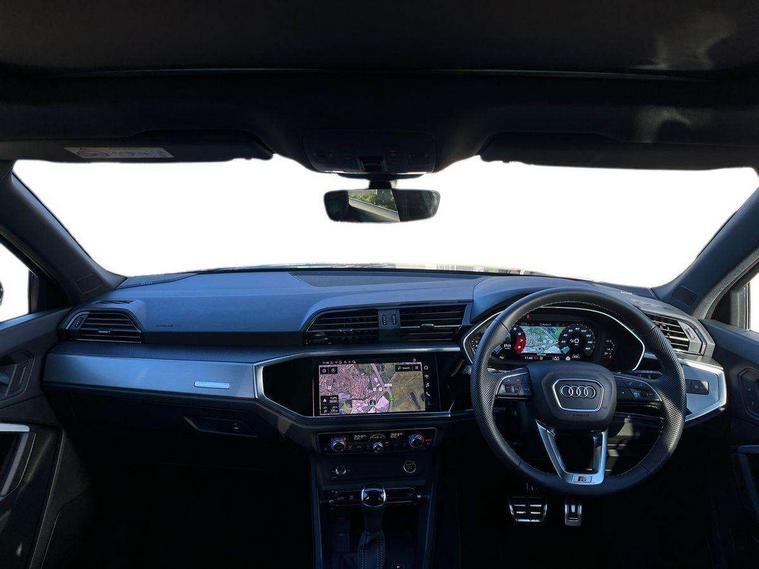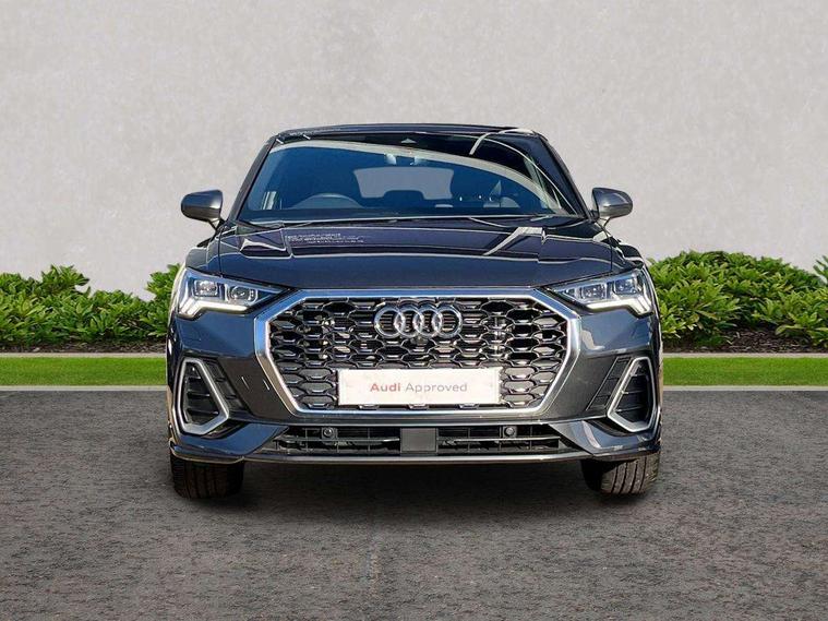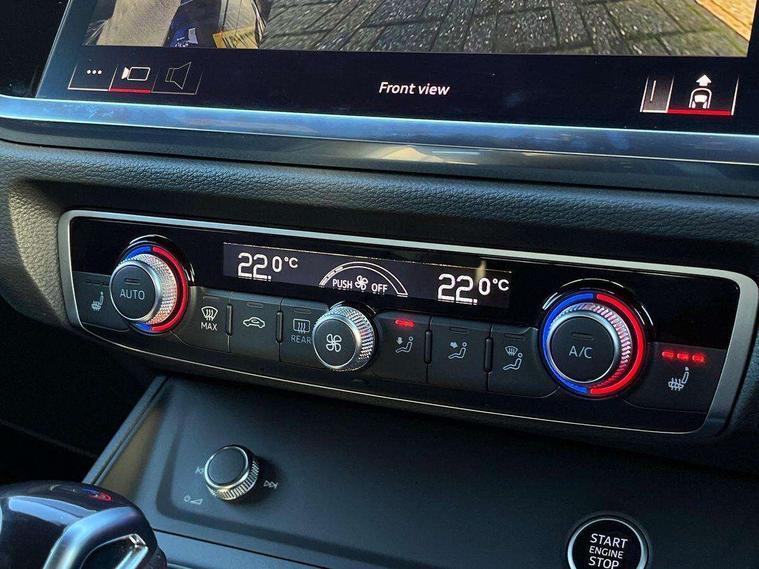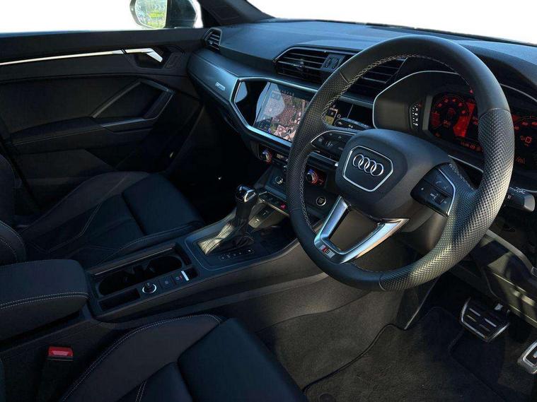 Audi connect safety and service, Audi drive select, Audi lane departure warning, Audi Virtual Cockpit - 10.25" display, Bluetooth interface, Camera based traffic sign recognition, Distraction and Fatigue warning, Legal emergency call, MMI Navigation Plus with high resolution 10.1 inch touchscreen colour display, Power operated tailgate, Progressive steering, Service interval indicator, Smartphone interface includes wireless Apple carplay/Android Auto, Start stop system with recuperation, Voice control system with natural language interaction, Sports suspension, 2 USB-C ports with charge and data functions, 6 passive loudspeakers, DAB digital radio module, Acoustic windscreen, Aluminium window trim, Auto dimming door mirrors, Auto dimming frameless rear view mirror, Diffuser grille in grained matt black, Diffuser trim in selenite silver, Electrically folding, adjustable and heated door mirrors with integrated LED side indicators and kerb view function for passenger side, Front and rear electric windows, Front fog lights, Front side air inlets in selenite silver, Front underbody protection in manhattan grey paint finish, Grille surround in aluminium silver matt, High gloss black finish B and C pillars, LED Dynamic rear indicators, LED headlights with LED daytime running lights, LED rear lights, LED third brake light, Privacy glass dark tinted rear and rear-side windows (from B-pillar backwards), Radiator grille in anthracite black with inlay in matt aluminium silver, Rain and light sensors, Rear side wing doors, Rear underbody protection in matt black, Rear wiper, S line badges on front wings, S line front and rear bumpers and side skirts in contrasting Manhattan grey paint finish, Side skirt insert in matt Platinium grey, Variable front intermittent wipers, 12V socket in rear centre console, 3 seat bench in 2nd row, 3 spoke leather multifunction steering wheel features S badging and grips in perforated leather with contrast stitching, 40:20:40 folding with manual adjustment for 60:40 forwards/backwards position and backrest angle, Adjustable rear seat bench/backrest with centre armrest and cupholder, Black cloth headlining, Dual zone electronic climate control, Electric lumbar support, Front and rear black floor mats with contrast stitching, Front and rear headrests, Front centre armrest, Height and reach adjustable steering wheel, Illuminated door sill trims with S logo, ISOFIX child seat mounting for front passenger with airbag deactivation and outer rear seat including top tether attachment point for outer rear seats, Luggage compartment sill protection in stainless steel, Manual front seats with height adjustment, Perforated leather gearknob, Single front passenger seat, Stainless steel pedals, Twin leather upholstery with front sport seats + S embossing, Non smoking pack - Q3, 3x3 point rear seatbelts, 6 airbags - Driver, front passenger, curtain and side windows, Audi pre-sense front with pedestrain and cyclist recognition, Electrically operated child locks on rear doors, Electromechanical parking brake, Electronic stabilisation control including ABS, ASR and EDL, Front seatbelt reminder, Hill descent control, Hill hold assist, Pre sense basic, Seatbelt monitoring, Tyre pressure warning, Warning triangle and first aid kit, Anti theft wheel bolts, Immobiliser, Remote central locking, Thatcham approved category 1 anti theft alarm, Aluminium look interior elements, Dark matt brushed aluminium inlay, Detail dashboard around MMI touch colour display in glass look, black with surround in aluminium look, Leatherette door armrest,
