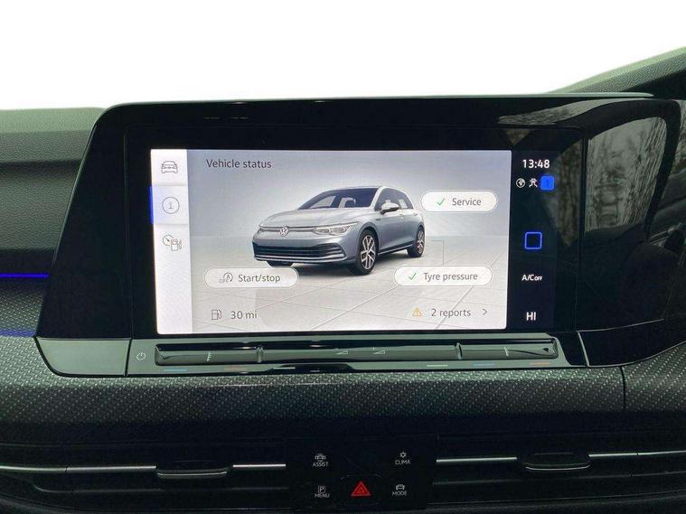 Adaptive cruise control (ACC) with speed limiter and front assist (reacting to vehicles pedestrians and cyclists), Car2X communication, Digital cockpit pro - 10.25" high resolution TFT dash display screen with customizable menus and information, Driver alert system, Dynamic road sign display, eCall - Emergency call service for SOS calls to emergency response, Lane assist, Mobile phone interface with wireless inductive charging function, Multifunction camera for distance control, PAS, Speedo, rev counter, electronic odometer, trip, service interval display, exterior temperature and fuel gauge, Start/Stop function, USB-C ports in the front and rear centre console with increased charging performance, Warning buzzer and light for front seatbelts unfastened, Wireless app connect, Petrol Particulate Filter, XDS electronic differential lock for improved traction and handling, Premium USB cable in choice of either Apple or Android smartphone compatibility, Ambient lighting, exterior illuminated styling elements at the sides, Auto dimming rear view mirror, Automatic headlamp activation with Coming home and Leaving home feature, Automatic headlights, Body colour door handles, Body colour door mirrors with integrated indicators, Body colour rear roof spoiler, Electrically heated and adjustable door mirrors with memory feature, Front and rear electric windows, Heat insulating glass windscreen, Heated rear windscreen, High level 3rd brake light, Highway light, LED License plate illumination, R Line body coloured bumpers, Rain sensor, Rear fog light on one side and reversing lights on both sides, Rear lights incorporating LED technology, Rear side wing doors, Rear tinted glass 65% light absorbing from B pillar backwards, Rear windscreen washer and wiper with interval delay, Welcome light, 12V socket in front centre console, 12V socket in luggage compartment, 3 rear head restraints, 3 seat bench in 2nd row, Ambient lighting - Customisable 30 colour ambient lighting, Black roof lining, Brushed stainless steel pedals, Chrome plated surround to electric mirror button, window switch and air vent surrounds, Drivers and front passengers sun visors with vanity mirrors, Front + rear carpet mats, Front centre armrest with storage compartment, Front cupholders x 2, Front passenger seat, Front reading lights x 2 incorporating LED technology, Front seat lumbar support adjuster, Front sports seats, Glovebox, Height adjustable front seats, Height and reach adjustable steering wheel, Isofix child seat preparation for 2 rear child seats and front passenger seat, Luggage compartment lighting, R Line door and side trim panel, R Line front seats integrated head restraints, R-Line leather wrapped multi function sports heated steering wheel, Removable luggage compartment cover, Sardegna cloth upholstery with front and outer rear seats Art Velour inner sides of bolsters, Split folding backrest with centre armrest and unsplit rear seat bench, Titanium black instrument panel, Woven fabric storage compartments in front and rear doors, 3 point height adj front seatbelts + pretensioners, 3 rear three point seatbelts, ABS, Child locks on rear doors, Driver and front passenger airbag with front passenger airbag deactivation, Drivers and front passengers safety optimised head restraints, Electronic parking brake with auto hold, ESC (Electronic Stability Control), Extended pedestrian protection measures, Front and rear passengers curtain airbag system including front side airbags, Front centre airbag, Front disc brakes, Front side airbags with curtain airbags, Rear disc brakes, Two tone horn, Tyre pressure monitoring system, Alarm with interior protection and deactivation via infotainment system, Electronic engine immobiliser, Carbon grey decorative inserts in dash and front door trim panels, High gloss black centre console,