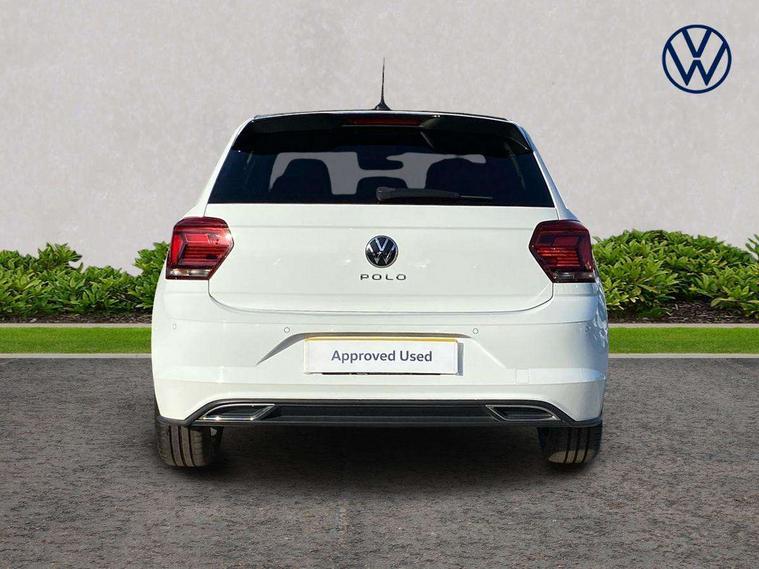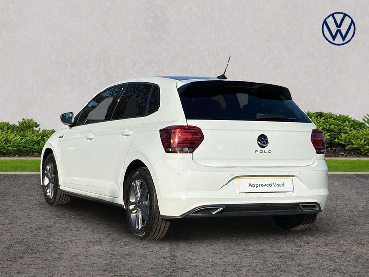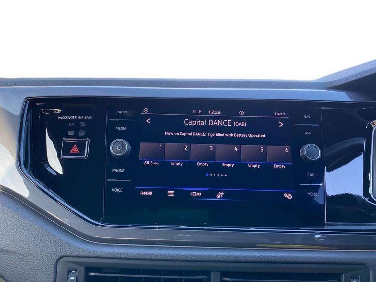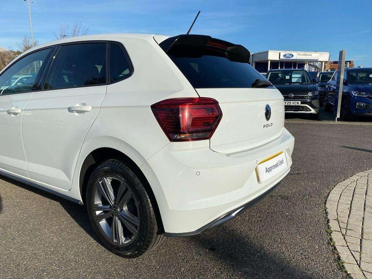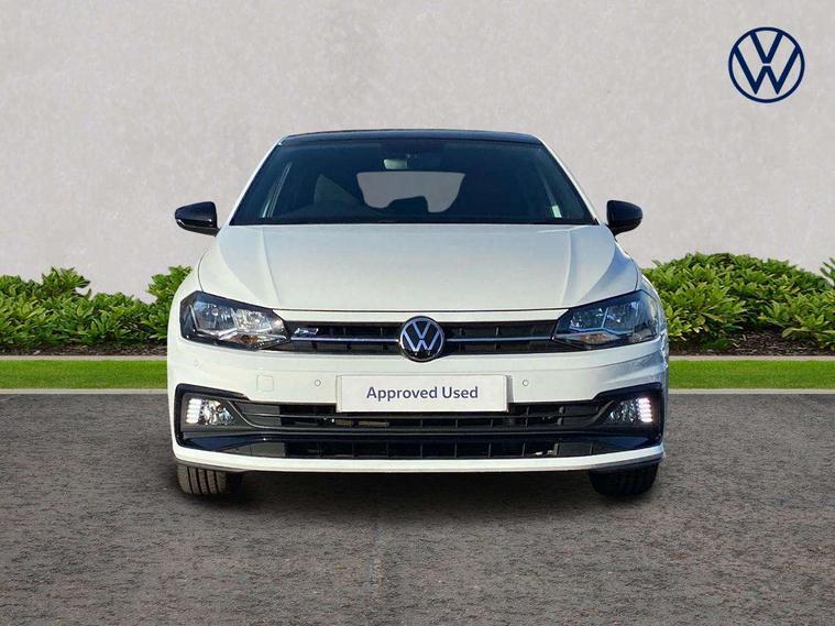 Digital clock, Driver alert system, Emergency call service, Lights on warning, Multifunction computer plus, Power assisted speed sensitive steering, Speedo and rev counter, electronic odometer, trip, service interval display and fuel gauge, Start/stop system, Volkswagen connect, Warning buzzer and light for front seatbelts unfastened, Wireless app connect, Battery regeneration during braking, Galvanished body, DAB digital audio broadcast, Diversity antenna for FM reception, Black grille with chrome surround, Body colour door handles, Body coloured side sills, Chrome trimmed strip on lower bumper, Electric front windows, Electrically foldable, adjustable and heated door mirrors with reverse activated kerb view adjustment on passenger's side, Front windscreen washers and wipers with 4 speed intermittent delay, Heated rear window with auto timer, High level 3rd brake light, LED darkened rear light clusters, LED daytime running lights, LED rear number plate lights, Left and right chrome effect trapezoid fascia exhaust tailpipe surrounds, Rear diffuser, Rear electric windows, Rear windscreen washer and wiper with interval delay, reverse activated, Unique R Line badging, 2 bag hooks in luggage compartment, 2 front cupholders and 12 V socket with cover, 3 rear head restraints, 60/40 split folding rear seat, Ambient lighting in front foorwell, front/rear door and dashboard light strips, Carbon flag cloth upholstery, Centre console storage with open storage compartment, Chrome-plated electric mirror adjustment switch surround, Chrome-plated electric window button surround, Driver and front passenger seat height adjustment, Driver and front passenger sunvisors with illuminated vanity mirrors, Dust/pollen filter, Folding rear seat backrest, Front + rear carpet mats, Front centre armrest with 2 x USB-C ports in front and 2 x USB-C ports in the rear, Front head restraints, Front seat backrest storage pockets, Front sport seats with lumbar adjustment and R line logo on seat backrest, Gear change selection via paddle shift on steering wheel, Gear lever gaiter in black trim surround, Glovebox, Handbrake grip button in chrome effect, Height/reach adjustable steering column, Instrument lighting, adjustable panel illumination, Interior light with delay, Isofix Preparation 2 Rear child seats, Leather gear knob and handbrake grip, LED interior lighting - 2 reading lights front and rear with interior delay and dimming function, Luggage compartment cover, removable, Luggage compartment lighting, Luggage compartment with variable load floor, Stainless steel pedals, Storage compartment in front doors, Storage compartment in rear doors, Storage compartment under front seats, Three spoke leather trimmed multifunction steering wheel with aluminium inserts and R Line Logo, Titanium black roof lining and sun visors, Unique R Line door sill protectors, Light and sight pack - Polo, R Line styling pack - Polo, 3 point height adj front seatbelts + pretensioners, 3x3 point rear seatbelts, ABS, Automatic post collision braking, Driver/front passenger airbag, Drivers and front passengers safety optimised head restraints, ESP with EDL + ASR, Front and rear passenger curtain airbags, Front passenger airbag deactivation, Front seat side impact airbags, Front/rear disc brakes, Hill hold control, Hydraulic Brake Assist (HBA), Single tone horn, Tyre pressure monitoring system, Alarm with interior protection and deactivation via infotainment system, Electronic engine immobiliser, Remote central locking with 2 remote folding keys, Chrome plated air vent surround, Chrome plated instrument surrounds, Shadow steel decorative inserts,