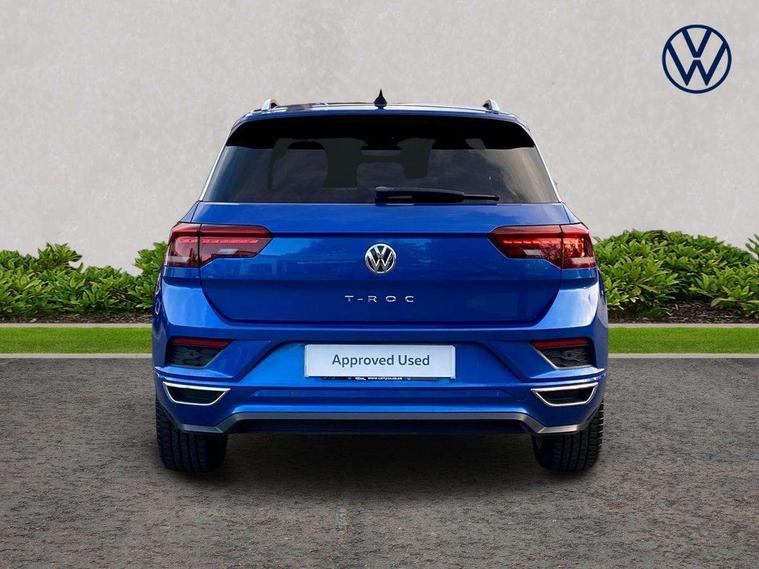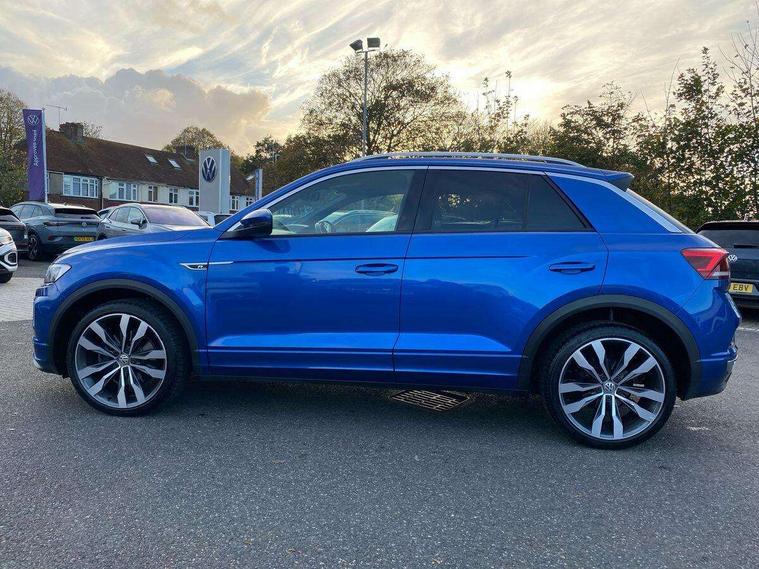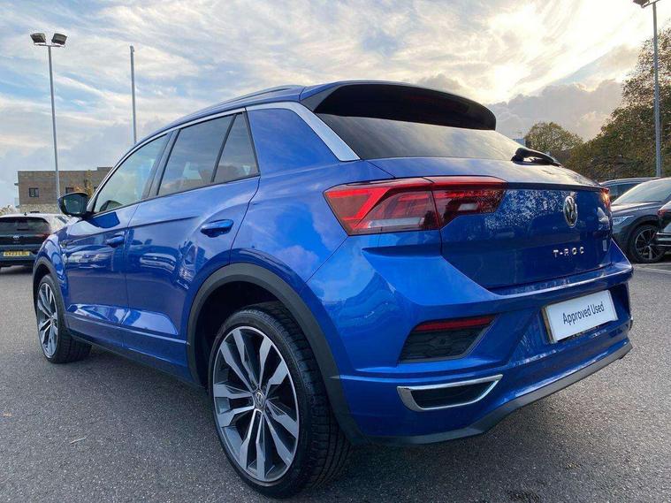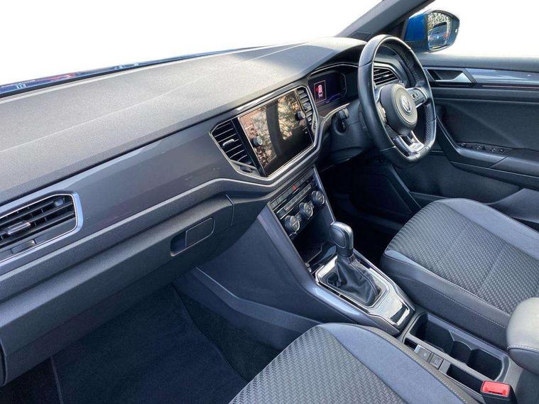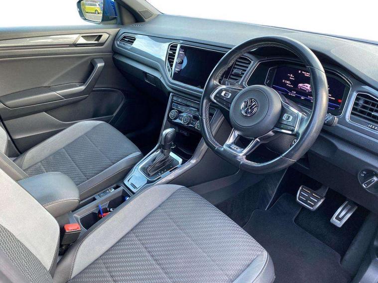 'Lights On' Reminder warning buzzer, 2 USB connection charging sockets, Active Info Display, 10.3" high resolution TFT dash display screen with customised information, Adaptive cruise control with front assist, radar sensor controlled distance monitoring, city emergency braking, App-Connect, Automatic start/stop system, Bluetooth telephone and audio connection for compatible devices, Car information display, Car-Net Security and Service, Discover navigation, 8" touch screen navigation/infotainment system with Car-Net, European map, CD/radio, 2D/3D map and speed limiter, Driver alert system with audible and visual fatigue detection system, Driver tips and journey analysis, Driving profile selection - Eco, normal, sport or individual modes with Individual mode allows for steering, drive and air conditioning settings, Lane assist, Multifunction computer with visual gear change recommendation for fuel consumption, Service interval indicator, Think blue trainer driver tips and journey analysis, Voice activation, Warning sound and light for doors and tailgate open, Warning sound and light for front seatbelts unfastened, Battery regeneration during braking, DAB Digital radio, Dynamic navigation based on TMC+, Multi device interface (MDI) with USB connection, Music playback - MP3, WMA and AAC files, Premium USB cable in choice of either Apple or Android smartphone compatibility, SD card slot, Simultaneous pairing of 2 compatible mobile devices, SMS functionality - read, compose and send SMS messages using touch-screen display, Three route options - Fast, Short, Eco, Title and cover art display, Auto dimming interior rear view mirror, Black grained lower door protectors, Body colour door handles, Body colour rear roof spoiler, Chrome effect left and right trapezoid exhaust tailpipe fascia surround, Chrome trim on upper and lower radiator grille, Dusk sensor, Electrically foldable, adjustable and heated door mirrors with puddle lights and reverse activated kerb-view adjustment on passenger's door mirror, Front and rear electric windows, Front fog lights with static cornering function, Front windscreen wiper with intermittent wipe and 4 position delay, Fully galvanised body, Heated rear window, High level 3rd brake light, LED darkened rear light clusters, LED rear number plate lights, Manual coming/automatic leaving home lighting function, Rain sensor, Rear tinted glass from B-pillar backwards approx 65% tinted, Rear wash/wipe with intermittent wipe setting, 12V socket in centre console storage area, 2 Front and rear reading lights incorporating LED technology, 3 rear head restraints, 4 load lashing points in luggage compartment, Aluminium pedals, Ambient lighting in front footwell and light strips below trim in front doors, Black roof lining and sun visors, Branded points of interest, Carbon flag cloth upholstery, Climate control - 2 zone electronic air conditioning with automatic air recirculation and allergy filter, Drawer under drivers seat, Front and rear carpet mats with contrast stitching, Front centre armrest with storage compartment, longitudinal and height adjustable and two rear air vents, Front cupholders x 2, Front footwell illumination, Front seat back storage pockets, Front sports seats with R-Line logo on seat backrest, Glovebox, Height adjustable front seats, Height/reach adjust steering wheel, Illuminated vanity mirrors, Instrument lighting, white adjustable panel illumination, Interior light delay, Isofix easy fit child seat preparation for 2 outer rear seats, Load through provision with single cup holder when folded down, Luggage compartment cover, removable, Luggage compartment lighting, R Line badge, Split folding rear seat backrests with centre armrest, Storage compartment in left and right luggage area, Storage compartment in rear doors, Storage compartments in driver and front passenger doors, Three spoke multifunction leather trimmed steering wheel including gear knob and paddle shift with aluminium inserts contrast stitch and R Line logo, Unique R Line door sill protectors, R line styling pack - T-Roc, Winter pack - T-Roc, 3 rear three point seatbelts, ABS, Curtain airbags, Driver and front passenger safety-optimised head restraints, Drivers and front passengers airbags with passengers deactivation switch, Electronic parking brake with auto hold, Electronic stability control (ESC) includes ASR, EDL, EDTC and trailer stabilisation function, Front seat side impact airbags, Predictive pedestrian protection, Rigid safety cell with front and rear crumple zones, Three point height adjust front seatbelts + pretensioners, Tyre pressure loss indicator, Ventilated front and rear disc brakes, Volkswagen roadside assistance, Alarm with interior protection and deactivation via infotainment system, Electronic engine immobiliser, Remote central locking with 2 remote folding keys, Shadow steel decorative inserts in dash and door panel, 19" Suzuka alloy wheels with low rolling resistance tyres and anti wheel bolts, Space and weight saver spare wheel,