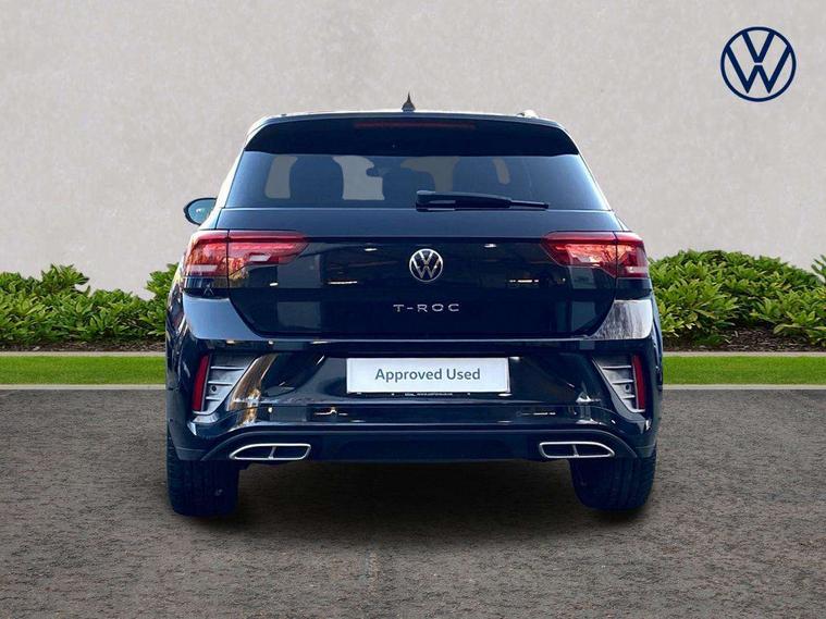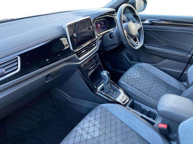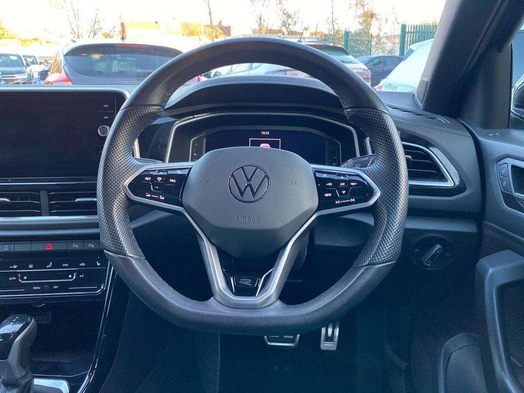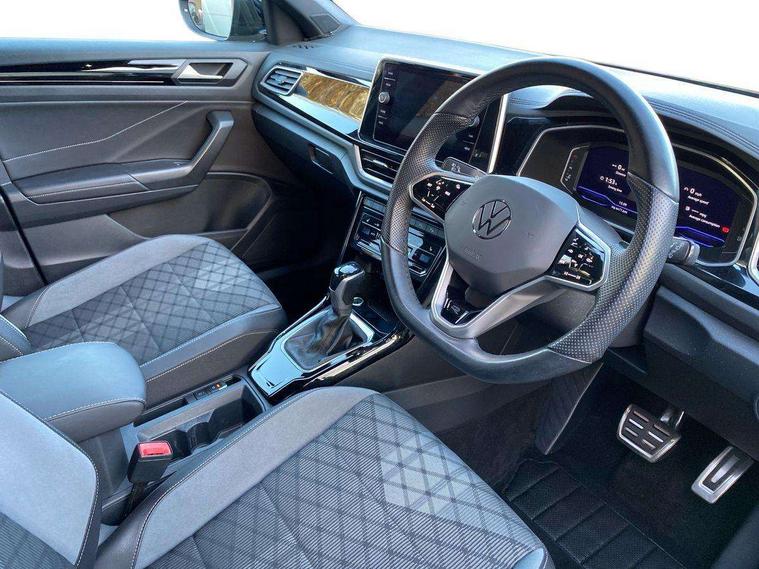 10.25" Digital cockpit pro, Bluetooth mobile phone interface, Driver alert system with fatigue detection, Driver tips and journey analysis, Emergency call service, Lane keeping system Lane Assist, Modified key software - reduce switch off time for key status change to Long no motion, Online services, Park assist including front and rear parking sensors, Service interval indicator, Tailgate/trunk lid release from outside, Think blue trainer driver tips and journey analysis, Warning sound and light for front seatbelts unfastened, Wireless app connect, Battery regeneration during braking, Start/stop function with battery regeneration, Diversity antenna for FM reception, Front and rear 6 speakers, Music playback - MP3, WMA and AAC files, Premium USB cable in choice of either Apple or Android smartphone compatibility, SD card slot, Simultaneous pairing of 2 compatible mobile devices, Title and cover art display, We Connect and We Connect Plus functionality, 3rd brake light, Auto dimming interior rear view mirror, Automatic hazard lights activation under emergency braking, Automatic headlight control with LED separate daytime running lights with coming/leaving home function, Extended roof spoiler, Exterior mirrors aspherical on driver side, convex on front passenger side, External USB type C socket and charging sockets, Front windscreen wiper with intermittent wipe and 4 position delay, Heated rear window, LED Plus headlamps, LED rear combination lamps, LED rear number plate lights, LED tail lamp rear comination lamps, Power windows with comfort operation and circuit breaker, R-Line design body coloured bumpers, Rain sensor, Rear exhaust tailpipe, Rear fog light on one side and reversing lights on both sides, Rear side wing doors, Rear wash/wipe with intermittent wipe setting, Remote electrically foldable door mirrors, puddle lights and reverse activated passenger's door mirror, 12V power socket in centre console, 3 rear head restraints, 3 seat bench in 2nd row, 4 load lashing points in luggage compartment, Air care climatronic air conditoning system with active combination filter and 2-zone temperature control, Black roof lining, Chrome plated radiator grille inserts, air vent surrounds and light switch surrounds, Door and side trim panel with leatherette insert, Drawer under drivers seat, Front + rear carpet mats, Front centre armrest, Front cupholders x 2, Front footwell illumination, Front reading light, Front scuff plates with R logo, Instrument lighting, white adjustable panel illumination, Interior ambient lighting and surround lighting, Interior light delay, Isofix child seat preparation, Leather gearshift handle, Load-through provision with cup holder when folded down ('Unsplit rear seat bench, split folding backrest, with centre armrest), Luggage compartment lighting, Single front passenger seat, Stainless steel pedals, Storage compartment in left and right luggage area, Storage compartment in rear doors, Storage compartments in driver and front passenger doors, Sunvisors with illuminated vanity mirrors, Variable boot floor, height adjustable and removable, Driver assistance pack without proactive passenger protection - T-Roc, 3 point height adj front seatbelts + pretensioners, 3 point seatbelts in outer rear with ECE label, ABS, Child locks on rear doors, Driver and front passenger airbag with front passenger airbag deactivation, Driver and front passenger safety-optimised head restraints, Drivers seatbelt reminder, Electronic parking brake, Electronic Stability Control (ESC) inc EDL (Electronic Differential Lock) and ASR (Traction Control), Front and rear passengers curtain airbag system including front side airbags, Front assist with city emergency braking and pedestrian monitoring, Front seat side impact airbags, Hill start assist, Predictive pedestrian protection, Rear disc brakes, Single tone horn, Tyre pressure loss indicator, Volkswagen roadside assistance, Alarm with interior protection, Anti-theft alarm system with interior monitoring, backup horn, and towing protection, Remote central locking with SAFELOCK, radio remote control with 2 remote control folding keys, Trims for alloy wheels,