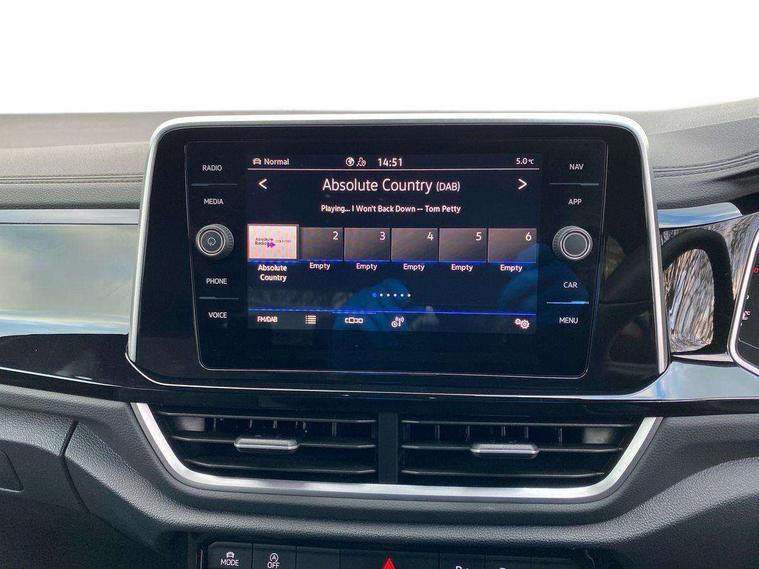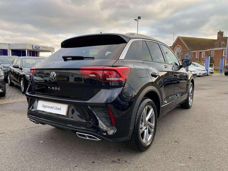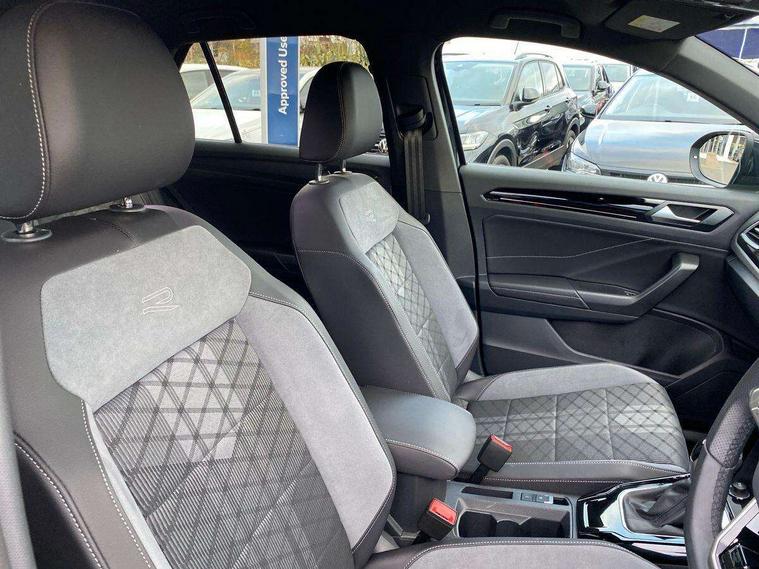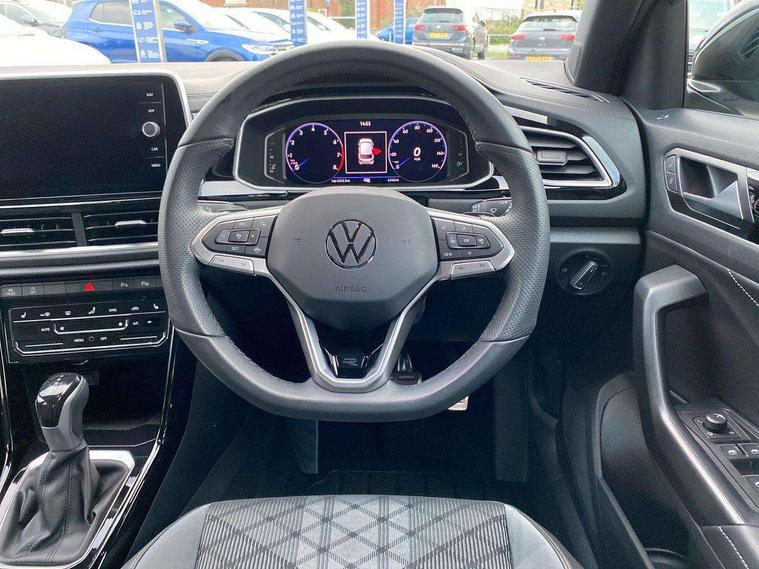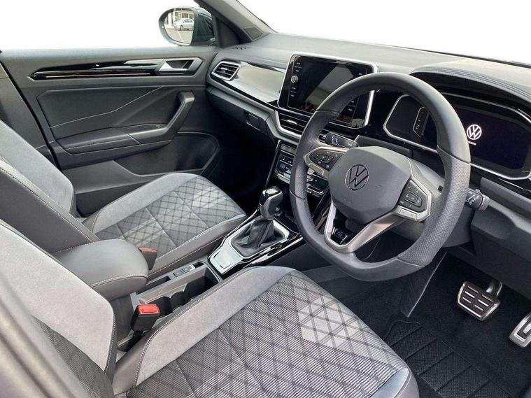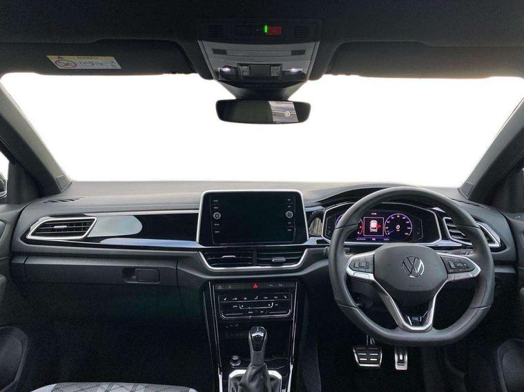 10.25" Digital cockpit pro, Advanced driver attention and drowsiness monitor, Emergency call service, Lane keeping system Lane Assist, Mobile phone interface, Modified key software - reduce switch off time for key status change to Long no motion, Online services, Park assist including front and rear parking sensors, Service interval indicator, Tailgate/trunk lid release from outside, Think blue trainer driver tips and journey analysis, Warning sound and light for front seatbelts unfastened, Wireless app connect, Battery regeneration during braking, Start/stop function with battery regeneration, DAB Digital radio, Diversity antenna for FM reception, Front and rear 6 speakers, Music playback - MP3, WMA and AAC files, Premium USB cable in choice of either Apple or Android smartphone compatibility, SD card slot, Simultaneous pairing of 2 compatible mobile devices, Title and cover art display, We Connect and We Connect Plus functionality, Auto dimming interior rear view mirror, Automatic hazard lights activation under emergency braking, Automatic headlight control with LED separate daytime running lights with coming/leaving home function, Body coloured exterior mirror housings and door handles, Electrically adjustable and heated door mirrors, Extended roof spoiler, Exterior mirrors aspherical on driver side, convex on front passenger side, External USB type C socket and charging sockets, Front windscreen wiper with intermittent wipe and 4 position delay, Heated rear window, LED 3rd brake light, LED rear combination lamps, LED rear number plate lights, Power windows with comfort operation and circuit breaker, Privacy glass for rear side windows and rear window, R-Line design body coloured bumpers, Rain sensor, Rear exhaust tailpipe, Rear fog light on one side and reversing lights on both sides, Rear side wing doors, Rear wash/wipe with intermittent wipe setting, Remote electrically foldable door mirrors, puddle lights and reverse activated passenger's door mirror, 12V power socket in centre console, 3 rear head restraints, 3 seat bench in 2nd row, 4 load lashing points in luggage compartment, Air care climatronic air conditoning system with active combination filter and 2-zone temperature control, Black roof lining, Chrome plated decorative trims, Chrome plated radiator grille inserts, air vent surrounds and light switch surrounds, Door and side trim panel with leatherette insert, Front + rear carpet mats, Front centre armrest, Front cupholders x 2, Front footwell illumination, Front reading light, Front scuff plates with R Line logo, Front seat back storage pockets, Glove compartment door with light, Instrument lighting, white adjustable panel illumination, Interior ambient lighting and surround lighting, Interior light delay, Isofix child seat preparation, Leather gearshift handle, Load-through provision with cup holder when folded down ('Unsplit rear seat bench, split folding backrest, with centre armrest), Luggage compartment lighting, Single front passenger seat, Stainless steel pedals, Storage compartment in left and right luggage area, Storage compartment in rear doors, Storage compartments in driver and front passenger doors, Sunvisors with illuminated vanity mirrors, Variable boot floor, height adjustable and removable, Driver assistance pack without proactive passenger protection - T-Roc, 3 point height adj front seatbelts + pretensioners, 3 point seatbelts in outer rear with ECE label, ABS, Child locks on rear doors, City emergency braking and pedestrian monitoring, Driver and front passenger airbag with front passenger airbag deactivation, Driver and front passenger safety-optimised head restraints, Drivers seatbelt reminder, Electronic parking brake, Electronic Stability Control (ESC) inc EDL (Electronic Differential Lock) and ASR (Traction Control), Front and rear passengers curtain airbag system including front side airbags, Hill start assist, Predictive pedestrian protection, Rear disc brakes, Two tone horn, Tyre pressure loss indicator, Volkswagen roadside assistance, Piano black decorative inserts in dashboard and front door trim panels, Trims for alloy wheels,