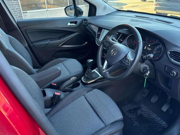 3.5" monochrome instrument colour display, Audible lights on warning, Bluetooth connectivity, Cruise control + speed limiter, Digital clock with automatic RDS time adjustment, eCall emergency call system, Instrumentation - Speedometer, rev counter, low fuel gauge warning light + water temperature gauge warning light, shift up/down indicate light, Lane departure warning system, Multi function trip computer, Multimedia sat nav pro with 8" colour touchscreen, AM/FM, Bluetooth streaming, Bluetooth mobile phone portal, apple CarPlay/Android Auto + 6 speakers, Outside temperature display with ice warning, Refridgerant low indicator, Service interval indicator, Speed sensitive power steering, Speed sign recognition, Front wheel drive, 2 x USB connections, DAB Digital radio, Steering wheel mounted audio/phone/cruise controls, 2 speed wipers/wash wipe/intermittent wipe, 3rd brake light, Alloy effect front and rear skid plates, Automatic anti dazzle rear view mirror, Automatic headlamp levelling system, Automatic high beam control with cornering light, Automatic lighting control, Black radiator grille with chrome bar, Body colour door handles, Body colour front and rear bumpers, Chrome effect upper window moulding, Dark tinted rear side windows + tailgate window, Electrically adjustable and heated door mirrors, Front power windows with express up/down and anti-pinch function, Hazard warning lights, Headlamps for left side traffic, Heated rear window, Integrated tailgate spoiler, Intermittent rear wash/wipe, LED daytime running lights, LED front fog lights, LED Headlights, LED side repeat indicators, Rain sensitive windscreen wipers, Rear fog lights, Rear power windows with express up/down and anti-pinch function, Rear side wing doors, Rear wing door, Reversing light, Side window demist vents, Solar heat absorbing windscreen and windows, Welcome lighting, Windscreen demist vents, Without LED rear lights, 12v power outlet - front, 2 way adjustable front passenger seat, 2 way front passive headrests, 3 rear seats, 3 spoke flat bottomed leather covered steering wheel with bezel decoration, 4 way electrically adjustable lumbar support for drivers seat, 60/40 split folding rear seat backrest, Adjustable rear seat backrest, Air recirculation facility, Ambient lighting, Anti submarining ramps in front seats, Cabin particulate filter - removes dust, airborne particles and pollen, Centre console, Driver and front passenger illuminated vanity mirrors with flip up covers, Driver's seat armrest, Drivers ergonomic active seat with 8 way manual adjustable driver seat , height, reach and backrest, Dual zone electronic climate control, Fade up/fade down on interior lighting, Four adjustable facia vents, Front door pockets with bottle holders, Front map reading lights, Front passenger seat, Fully carpeted luggage area, Glovebox with lid, Height adjustable front/rear head restraints, Illuminated load area, Interior courtesy light operated by all doors, Isofix system on outer rear seats, Jet black premium leather side bolsters, Luggage compartment cover, Multi-speed fan with Illuminated control, Open storage compartment in centre console, Passenger assist handles, Reach + rake adjustable steering column, Rear door pockets with bottle holders, Rear floor ventilation ducts, Rear reading lights, Satin chrome effect bezel on steering wheel, Seat cushion extension, Sparkle cloth/vinyl upholstery, Storage pockets on front seat backs, Two drinks holders in centre console, Rear view camera plus pack - Crossland, Winter pack - Crossland, 3x3 point rear seatbelts, 6 airbags - Driver and co-driver front, front side, head curtain roof airbags, front and rear row coverage airbags, ABS, Child locks on rear doors, CSC - Cornering stability control, Deactivate switch for side impact airbags, Deformation zones front and rear, Dual seatbelt pretensioners on front seats, EBD - Electronic brakeforce distribution, Energy absorbing steering column, Engine drag torque control, ESP + traction control, Front and rear seatbelt unfastened audible warning and warning light, Front side impact airbag, Hill start assist, Hydraulic Brake Assist (HBA), Hydraulic brake boost, Inertia reel lap and diagonal seatbelts for all seats, Passenger airbag deactivate switch, Rear seat belt pretensioners, Reinforced passenger safety cell, Seatbelt load limiter, Side impact protection beams, Smart seatbelt reminder for front and rear seats, Tyre pressure monitoring system, 2 remote folding keys, Electronically protected audio equipment, Engine immobiliser, Locking wheel nuts, Remote central deadlocking, Remote control central locking activation switch on driver door, Remote control central locking operates on doors, tailgate and fuel filler flap, Remote security alarm system, Visible vehicle identification number, Black facia with silver trim insert, Black trim inserts on front doors, Cluster black with chrome rings, 17" five twin spoke diamond bi colour alloy wheels,