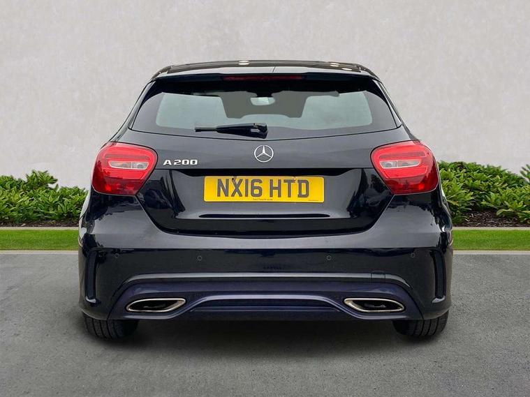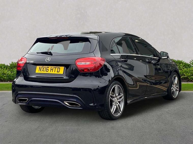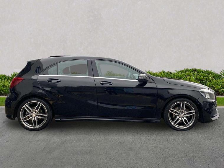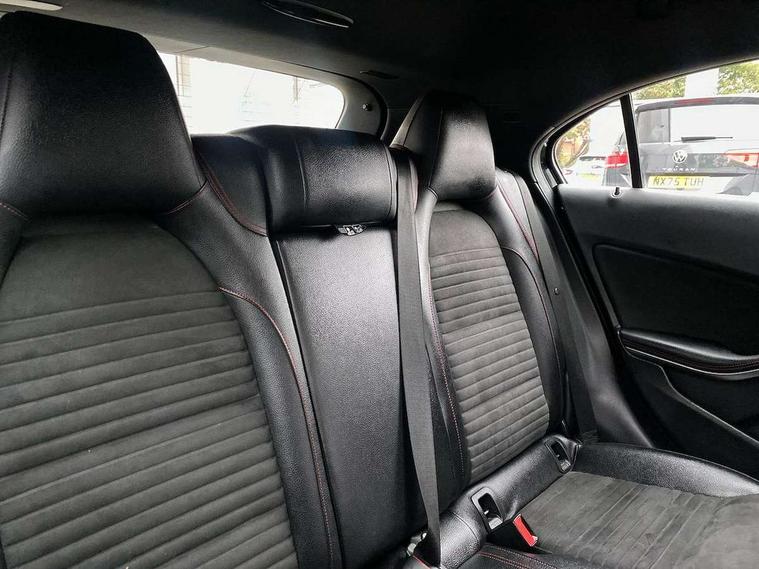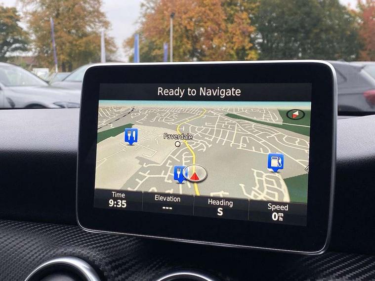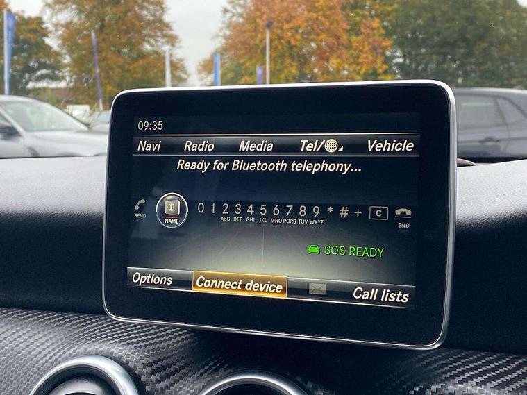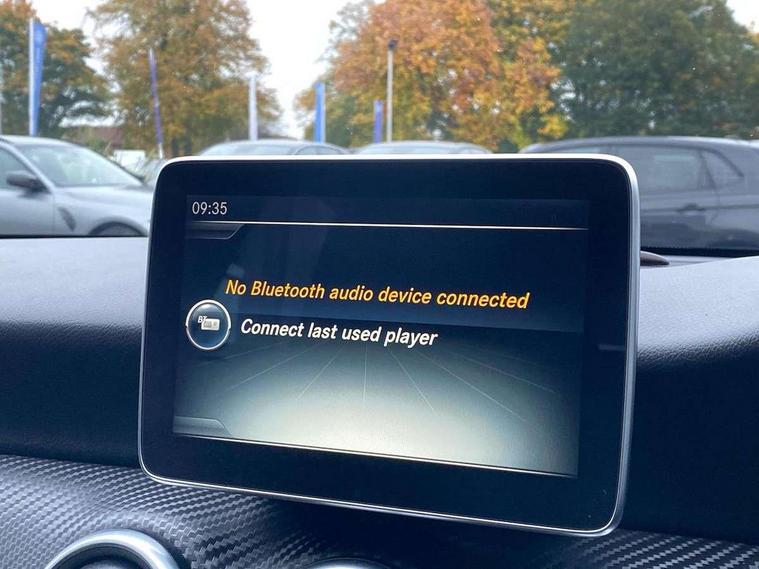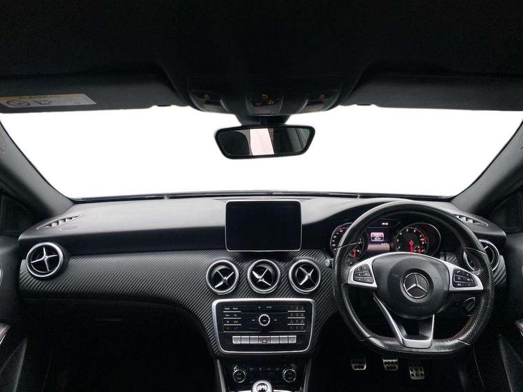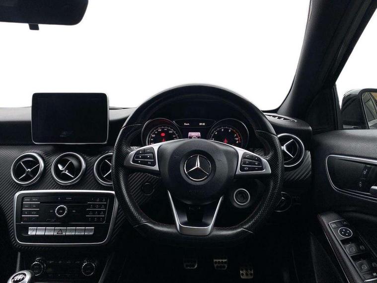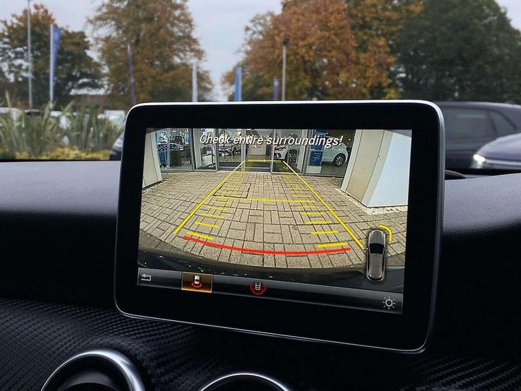 8" colour display screen, Active park assist with parktronic system, Attention assist, Bluetooth interface for hands free telephone, Bulb failure indicator, Collision prevention assist plus, DYNAMIC SELECT with a choice of driving modes (ECO, Comfort, Sport, Sport+ and Individual), External temperature gauge, Low fluid warning light, Reversing camera, Service indicator (ASSYST PLUS), Speed sensitive variable PAS, Trip computer, Voice control system, Lowered suspension, USB port, Adaptive brake lights, AMG body styling, Body colour bumpers, Body colour door handles, Body colour side skirt, Daytime running lights, Electric adjustable heated door mirrors, Electric front windows, Electric rear windows, Headlamp assist, Heated rear window with timer, Radiator grille with 2 louvres in Silver with chrome trim, Rain sensor windscreen wipers, Rear wiper, Twin Trapezoidal tailpipes, 1/3 to 2/3 split folding rear seats, 12V socket, 3 Spoke sports multifunction flat bottomed leather steering wheel, Ambient lighting, AMG floor mats with red stitching, Auto Mercedes-Benz child seat recognition sensor, Black headlining, Brushed stainless steel sports pedals, Dual zone automatic climate control, Footwell lights, Front and rear reading lights, Front centre armrest with storage compartment, Front head restraints, Front sport seats, Heated front seats, Height adjustable front seats, Height/reach adjustable steering column, Illuminated door sills, Illuminated glovebox, Illuminated storage compartment, Isofix rear child seat preparation, Leather gearshift, Load securing rings in luggage compartment, Luggage compartment cover, Luggage net under rear parcel shelf, Rear head restraints, Storage compartment under load area floor, Sunvisors with illuminated vanity mirrors, Twin front cupholders, Seat comfort pack - A Class, Stowage Pack - A Class, 3 rear 3 point seatbelts, ABS with Brake Assist, Active bonnet, Adaptive brake system, Brake calipers with Mercedes-Benz lettering + perforated brake discs, Child proof door locks, Crash responsive emergency lighting, Drivers knee airbag, Dual stage driver/passenger airbags, Electronic parking brake, ESP with ASR, Front and rear seatbelt reminder, Front head airbags, Front passenger seat occupancy sensor, Front side airbags, Hill start assist, Tyre pressure monitoring system, Warning triangle and first aid kit, Window airbags, Alarm system/interior protection/immobiliser, Keyless ignition, Remote central locking, Carbon effect trim, Chrome air vent surrounds, Tirefit sealant with electric air pump,