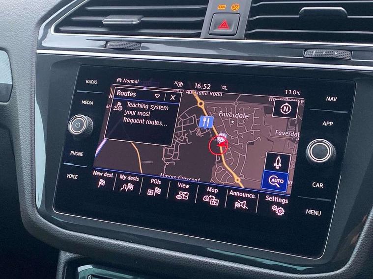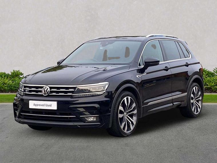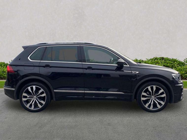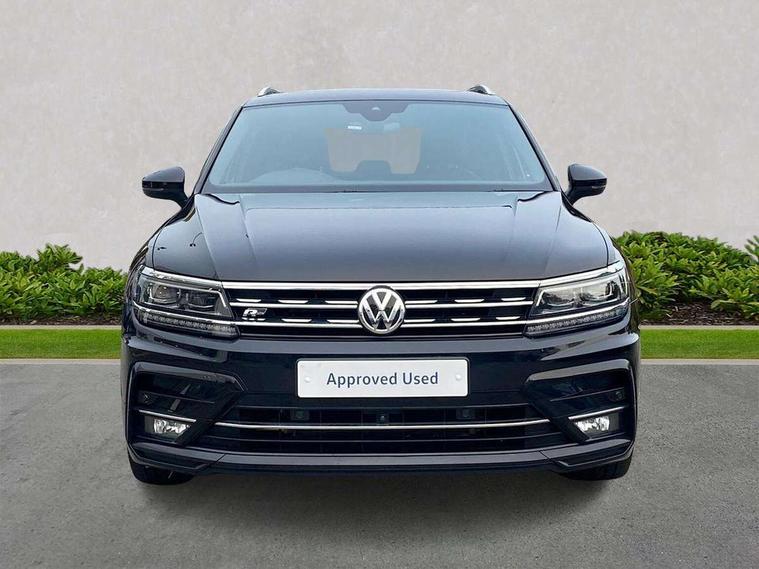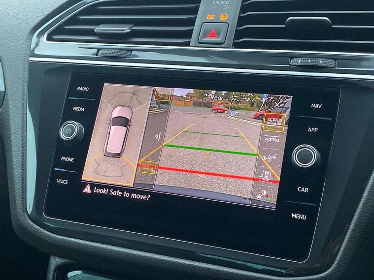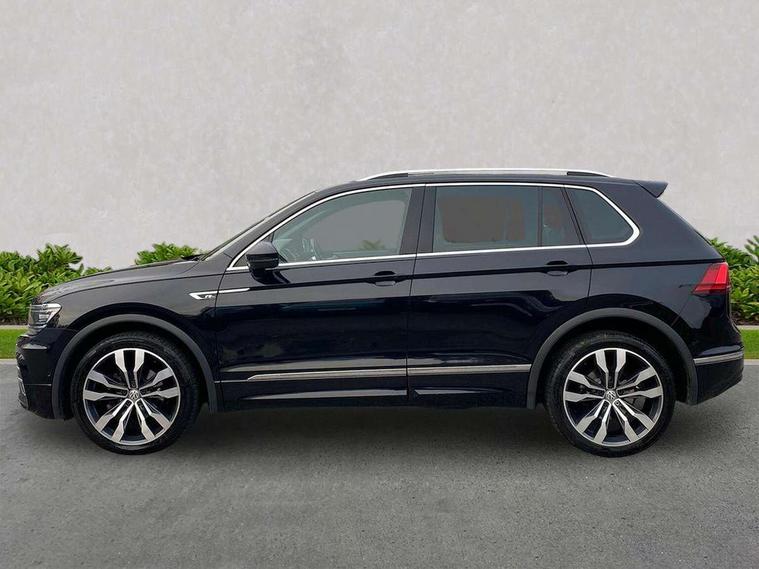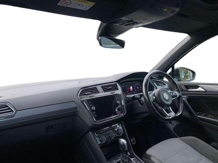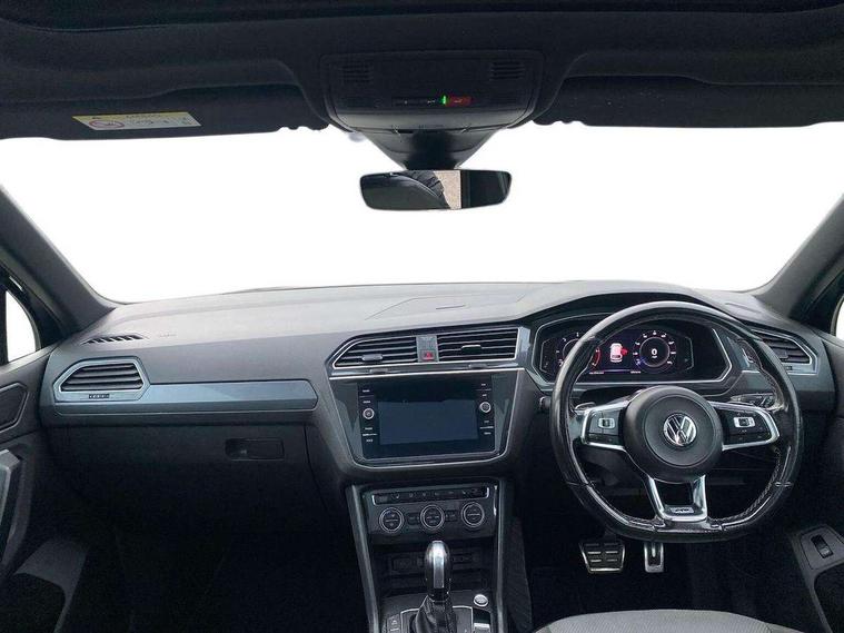 2D/3D map view, Active information display, Adaptive cruise control, App-Connect, Area view with park assist steering and front and rear parking sensors, Bluetooth phone integration system, Car information display, Distance control assist, Driver alert system with fatigue detection, Driver profile selection, Front assist, radar sensor controlled distance monitor, city emergency braking + predictive pedestrian protection, Fully electric tailgate + keyless entry and start, Instrument cluster, Lane assist, Lights on warning, Multifunction computer with visual gear change recommendation for fuel consumption, Outside temperature display, Progressive power assisted steering, Service interval indicator, Speed limiter, Start/Stop function, Warning sound and light for doors and tailgate open, Battery regeneration during braking, Diesel particulate filter, Misfuel prevention device for diesel engine, XDS electronic differential lock for improved traction and handling, 2 x USB connection + USB charging socket, 4 X 20 watt output, DAB Digital radio, SD card slot, Simultaneous pairing of 2 compatible mobile devices, SMS functionality - read, compose and send SMS messages using touch-screen display, Title and cover art display, 3D effect cherry red LED rear tail lights, Aluminium decorative inserts in dash and door panels, Auto dimming interior mirror, Automatic activation of hazard warning lights, Body colour door handles, Body colour door mirrors, Body colour rear spoiler, Body colour side skirt, Body coloured bumpers, Chrome side window surrounds, Chrome trimmed radiator grille, Coming/leaving home lighting function, Dusk sensor + auto driving lights, Electric panoramic sunroof with sunblind, Electrically heated and foldable door mirrors, door mirror puddle lights and reverse activated kerb view adjustment on passenger's door mirror, Front and rear electric windows, Heated rear window, High level 3rd brake light, LED headlights with dynamic light assist daytime running lights and cornering front fog lights, LED rear number plate lights, Piano black front air intake and rear diffuser, R Line body kit, R Line side sills, Rain sensor windscreen wipers, Rear tinted glass from B-pillar backwards approx 65% tinted, Rear windscreen washer and wiper with interval delay, Side skirts and rear bumper with chrome insert, Silver front underbody protection and rear diffuser, Silver roof rails, Trailer Stability Programme, Unique R Line badging, Windscreen wipers/ intermittent wipe + 4 position delay, 12V socket in centre console storage area, 2 cup holders in front, 3 rear headrests, 3 zone climate control, 4 load lashing points, 40:20:40 split folding rear seats, Bag hook in luggage compartment, Black headlining, Foldable front passenger seat backrest, Front + rear carpet mats, Front centre armrest with 12v socket, Front centre armrest with storage + rear 2 air vents, Front seat back storage pockets, Front seat R Line logo with rear seat backrest, Front seatback folding tables, Height/reach adjust steering wheel, Illuminated driver/passenger vanity mirrors, Illuminated scuff plates, Instrument lighting white adjustable panel illumination, Interior light with delay, Isofix Preparation 2 Rear child seats, Leather gear knob, Load through provision with 2 cupholders when folded, Lockable cooled glovebox, Luggage compartment lighting, Map pockets on front seats, Passenger seat height adjuster, Removable luggage cover, Sliding/reclining rear seats, Stainless steel pedals, Storage compartment in driver's door, Storage compartment in passenger's door, Storage compartment in rear doors, Storage compartments in luggage area left and right, Storage tray on dashboard, Sunglasses storage, Three spoke leather trimmed multifunction steering wheel with aluminium inserts and R Line Logo including paddle shift, Unique R Line door sill protectors, Variable boot floor, height adjustable and removable, Ambient lighting pack - Tiguan, R Line styling pack - Tiguan, 3 rear 3 point seatbelts, ABS+EBD+Brake assist, Active bonnet, Active pedestrian safety system, Curtain airbags, Driver/Front Passenger airbags, Driver/Passenger whiplash optimised head restraints, Drivers knee airbag, DTC - Drag torque control, Electronic parking brake with auto hold, ESC with EDL, ASR, EDTC and trailer stabilisation function, First aid kit, Front seat side impact airbags, Front side airbags, Front ventilated disc brakes and rear disc brakes, Head airbag system, Height adjustable front 3 point seatbelts + pretensioners, Hill hold control, Passenger airbag deactivate switch, Passenger knee airbag, Pre crash preventive occupant protection, Rear side airbags, Rigid safety cell with front and rear crumple zones, Two tone horn, Warning sound and light for front seat belts if unfastened, Warning triangle, Alarm with interior protection, Electronic engine immobiliser, Remote central locking with 2 remote folding keys, Chrome door trim inserts, Dark grey decorative inserts in dash and door panel, Piano black decorative inserts in centre console, 20" Suzuka alloy wheels with mobility self sealing tyres + anti theft wheel bolts, Steel space saver spare wheel,