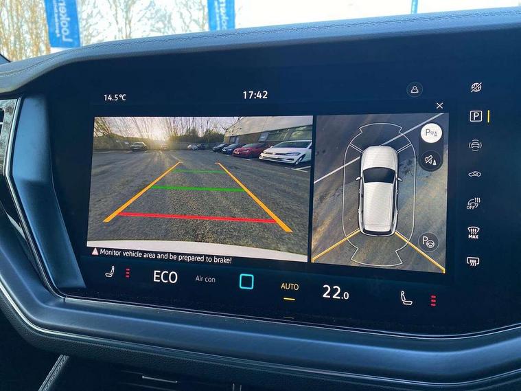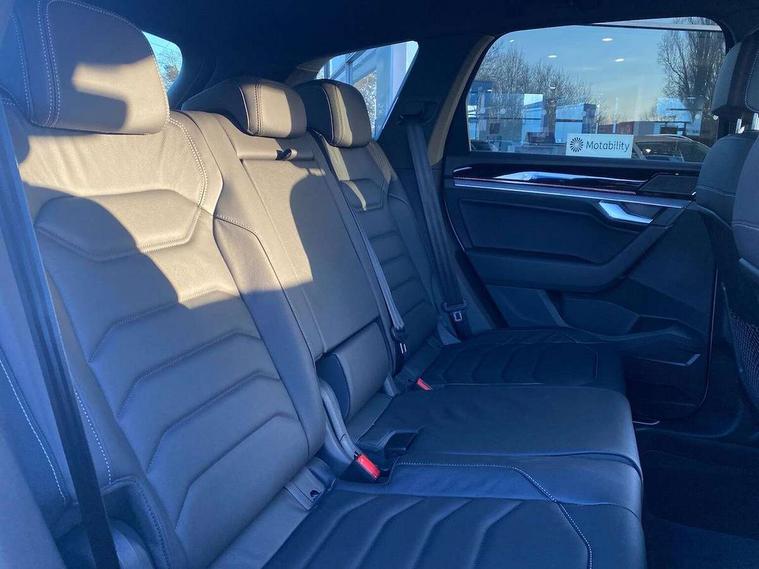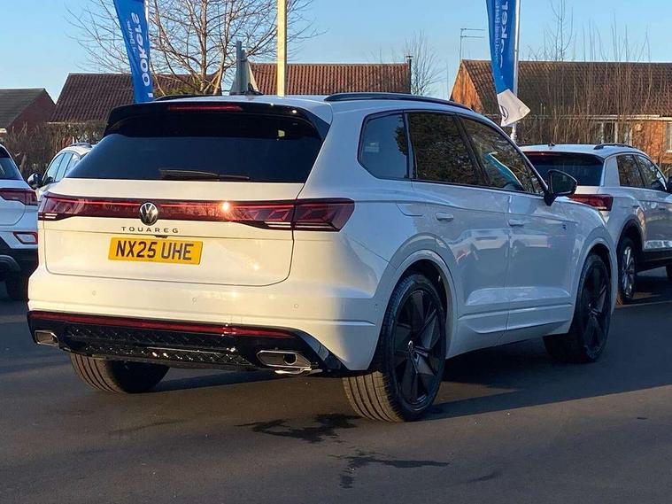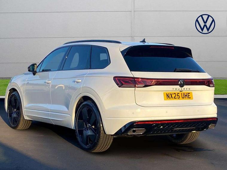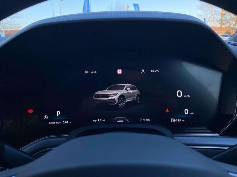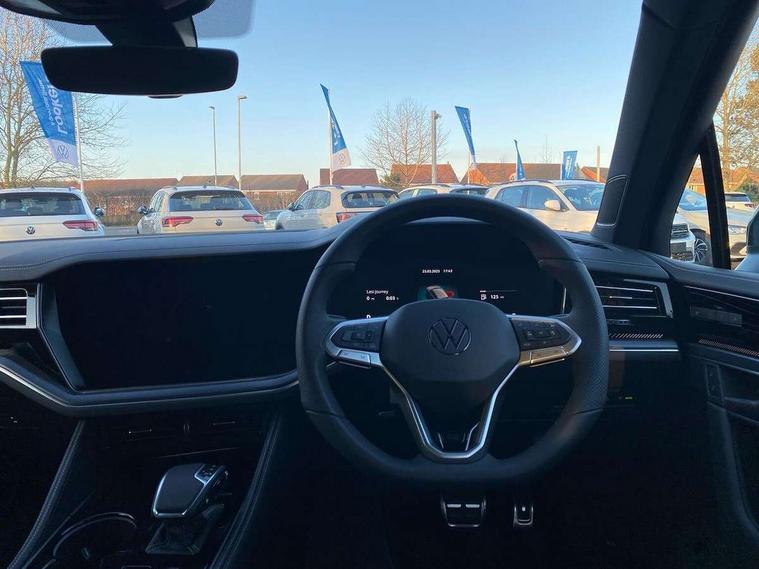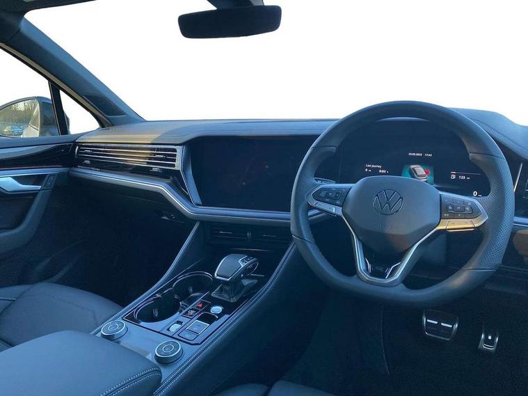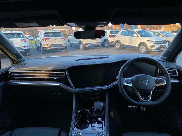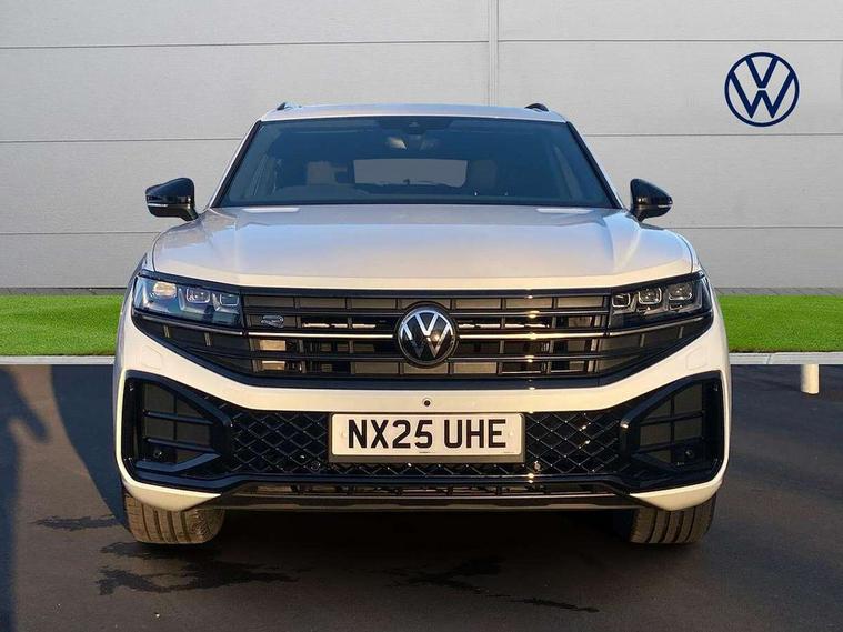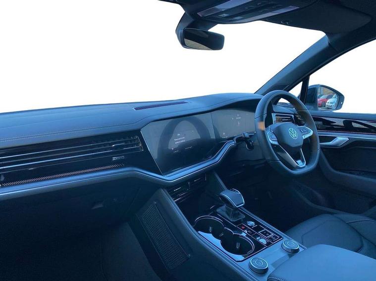 15" Screen Top infotainment system Premium (MIB3), Adaptive cruise control, Advanced driver attention and drowsiness monitor, Driver profile selection, Dynamic road sign display, E-Sim card for online connectivity, eCall emergency system, Innovision cockpit, Intelligent park assist, Mobile phone interface with inductive charging, Multi-colour Active Info display, Park Assist - Sensor controlled steering aid to assist parallel or bay parking, PAS, Warning signal and warning light for front and rear seatbelts not fastened, Wireless app connect, Adaptive chassis control, DAB Digital radio, Diversity antenna for AM/ FM reception, We Connect and We Connect Plus functionality, Automatic coming/leaving home lighting function, Automatic headlights, Black door mirrors, Black style comfort bumpers, Dynamic headlight range control with dynamic cornering light, Electric front tilt/slide panoramic sunroof and fixed rear sunroof, Electrically power adjustable, heated, folding, auto dimming, front passenger exterior door mirror lowering function, External USB type C socket and charging sockets, Gloss black roof rails, HD LED Matrix beam plus digital headlight projection with variable light distribution, Headlight washers, Highway light, LED 3rd brake light, LED daytime running lights, LED rear combination lamp with variable lighting functions and special styling, Poor weather light, Rain sensor, Rear exhaust tailpipe, Rear fog light with back up light on both sides, Rear light bar and illuminated logo, Rear side wing doors, Rear wiper, Stainless steel door sill protection, 12V socket in centre console, 3 rear headrests, 3 seat bench in 2nd row, 4 zone climate control, Airbag label on sun visor and B-pillar, Brushed stainless steel pedals, Double sun visors with illuminated vanity mirrors, Front + rear carpet mats, Front centre armrest, Leather wrapped multifunction sports steering wheel, heated, with touch control and shift paddles, Mechanical rear seat release, Power adjustable lumbar support in front, Power seats in front, right side with memory features and seat cushion depth adjustment, Rear seat backrest and split folding with center armrest, Single front passenger seat, Memory pack plus - Touareg, 3 point seatbelts, outer rear with ECE lable, ABS, Child locks on rear doors, Curtain airbags, Driver and front passenger safety-optimised head restraints, Driver/Front Passenger airbags, Extended pedestrian protection measures, Front assist, Front seat side impact airbags, Generative braking with start and stop system, Height adjustable 3 point front seatbelts with pre tensioners, Passenger airbag deactivate switch, Three 3 point rear seatbelts, Two tone horn, Tyre pressure loss indicator, Warning triangle and first aid kit, Alarm system with interior protection, Easy open and close sensor controlled luggage compartment opening and closing with remote unlocking, Keyless Access Keyless locking and starting system with SAFELOCK, Aluminium decorative inserts, Black decorative trims, Gloss black decorative inserts in centre console, Tool kit,
