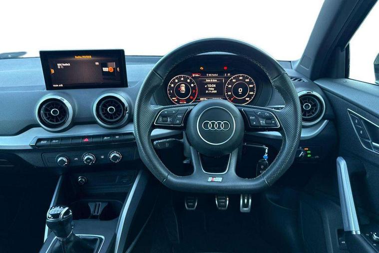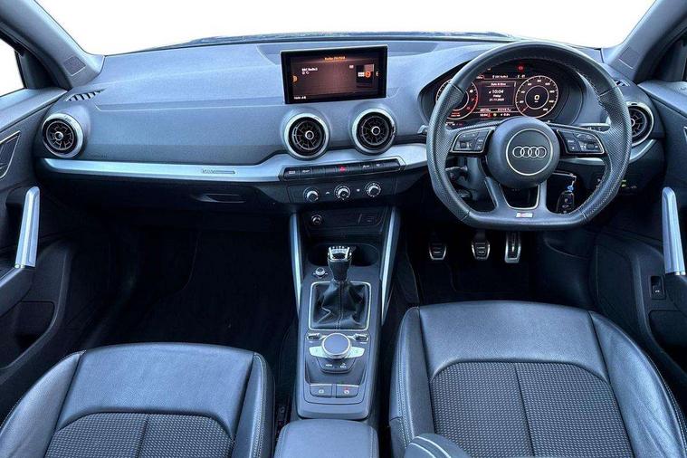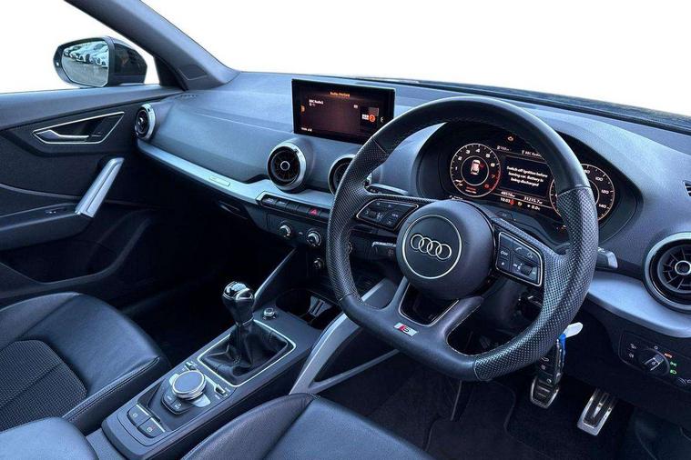 Audi connect navigation and infotainment includes innovative services, Audi connect remote and control connects your vehicle to your smartphone, Audi drive select, Audi drive select with efficiency, Audi smartphone interface, Audi virtual cockpit, Automatic start/stop system with recuperation, Bluetooth interface includes bluetooth audio streaming, Cruise control, MMI navigation plus with MMI touch, Power operated tailgate, Progressive steering, Rear parking sensors, 2 x SDXC card reader, 8 passive loudspeakers, DAB Digital radio, DVD Drive, Auto dimming rear view mirror, Black window trims, Bumper in full body colour paint finish, Electrically adjustable, folding, auto dimming and heated door mirrors with integrated LED side indicators, Front windscreen with grey tinted sunband, LED headlights with LED rear lights, Privacy glass - dark tinted rear and rear side windows from B-pillar backwards, Wheel arch trims in manhattan grey, 3 spoke flat bottomed multi-function leather sport steering wheel, 4-way electric lumbar support for front seats including seat height adjustment for both front seat, 60/40 split folding rear seat bench, Black cloth headlining, Front and rear head restraints, Front centre armrest, Front/rear floor mats, Height/reach adjust steering wheel, Illuminated door sill trims with S logo, ISOFIX child seat mounting for front passenger with airbag deactivation and outer rear seat including top tether attachment point for outer rear seats, Stainless steel pedals, Tool kit, Black styling pack - Q2, 3x3 point rear seatbelts, 6 airbags - Front, curtain and front side airbags, Electromechanical parking brake, Electronic stabilisation control including ABS, ASR and EDL, Hill hold assist, Pre-sense front with pedestrian recognition, Seatbelt monitoring, Tyre pressure warning light, Warning triangle and first aid kit, Anti theft alarm, Anti theft wheel bolts, Electronically operated child locks, Aluminium interior element, Matt brushed aluminium trim inlays,
