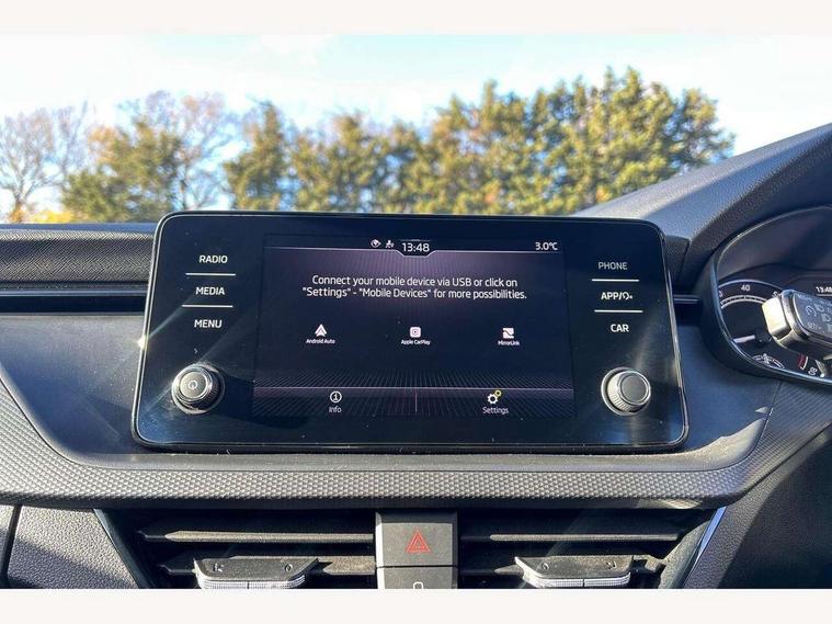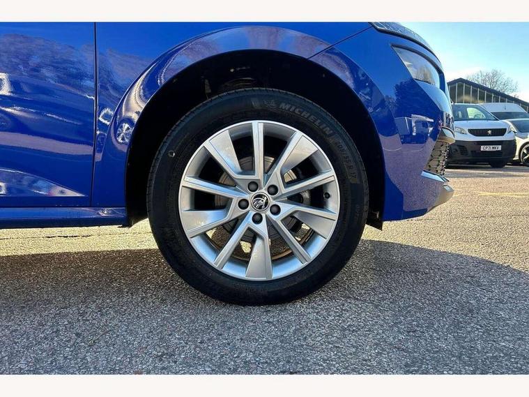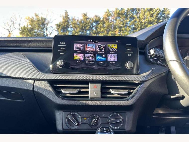 Bluetooth system, E-call, Front assist system, PAS, Service indicator, Speed limiter, Wireless Smartlink for Apple CarPlay (wired for Android Auto), 8 Speakers, Auxiliary input socket, DAB Digital radio, Body colour bumpers, Body colour door mirrors and handles, Chrome grille surround, Dimming rear view mirror with black surround, Electrically adjustable and heated door mirrors, Front and rear electric windows, Headlight range control, Heated rear window, LED rear lights - low functionality, LED third brake light, Light sensors, Rain sensor, Rear fog lights, Rear side wing doors, Rear wiper, 12V Accessory socket in centre console, 3 seat bench in 2nd row, Chrome inner door handles, Cloth upholstery, Front head restraints, Glove compartment with illumination, Ice scraper, Isofix child seat fittings on outer rear seats, ISOFIX on front passenger seat, Manual lumbar support for front seats, Rake/reach adjustable steering wheel, Reading lights, Single front passenger seat, Sun visors with illumination on front passenger, Textile floor mats, Third rear headrest, Top tether for front passenger seat, Umbrella in driver's door, 3x3 point rear seatbelts, Airbags - driver and front passenger, ESP, Front passenger airbag deactivation switch, Front side airbags with curtain airbags, Hill hold control, Manual parking brake, Manual rear child locks, One tone horn, Rear disc brakes, Seatbelt reminder for driver an co-driver, Traction control, Tyre pressure monitor, Anti-theft alarm system with interior monitoring, backup horn, towing protection and remote central locking with SAFE system, Anti-theft wheel bolts, Electronic engine immobilizer,