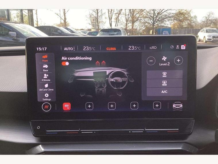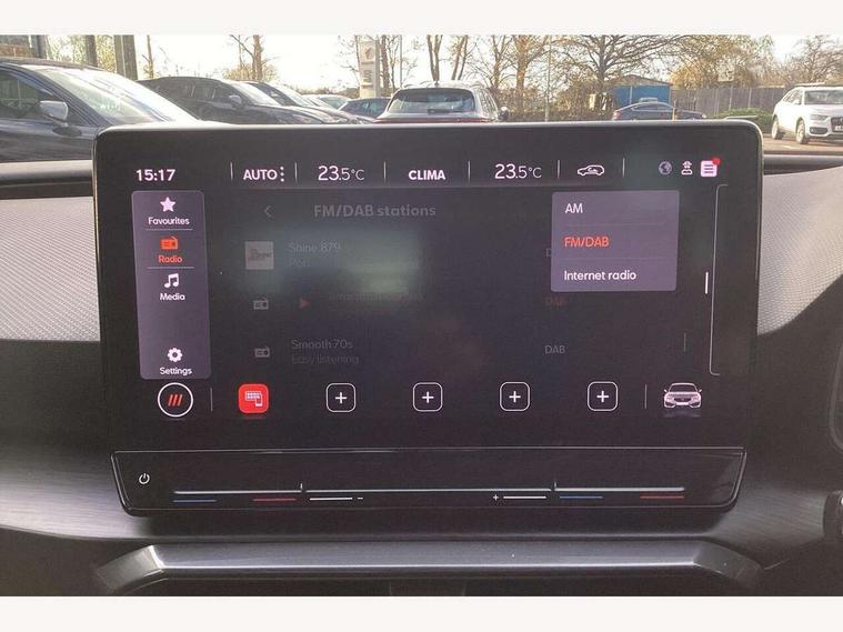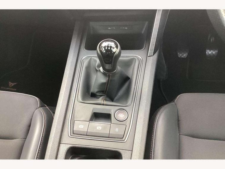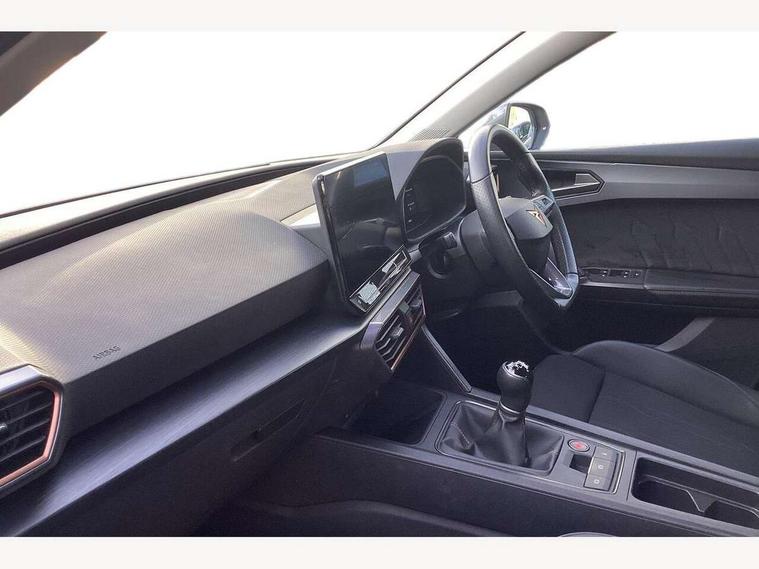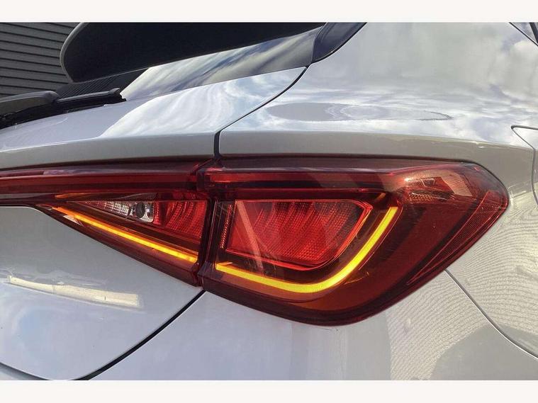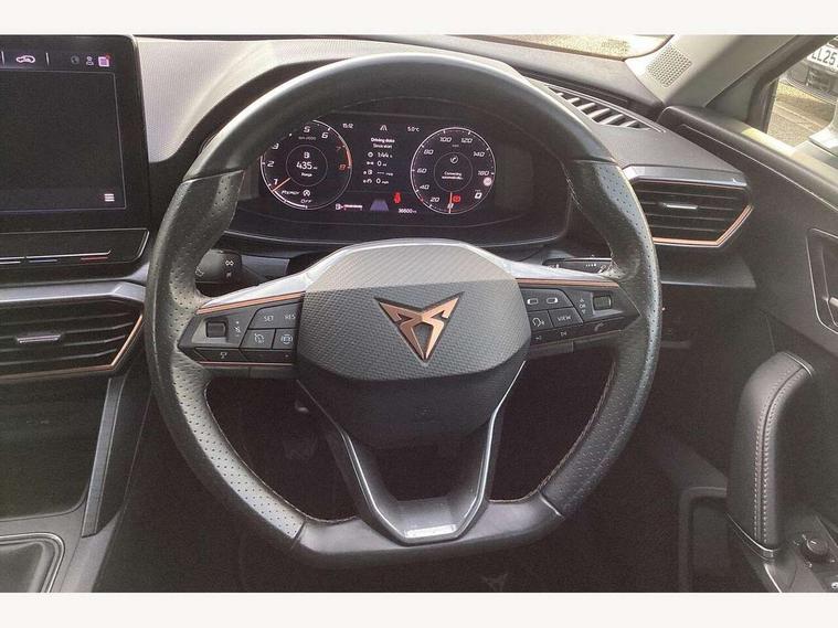 CUPRA drive profile selection with (Comfort/Sport/Individual), throttle response and gearshift mode, Digital cockpit, E-call, Electro mechanical speed sensitive power steering, Four x USB Type C ports (2 in front and 2 in rear), Front assist with forward collision warning braking reaction to vehicles, pedestrians and cyclists, Full link smartphone integration with Mirror Link, wireless Apple CarPlay and wired Google Android Auto, Lane assist, Lockable tailgate, Park assist (inc front/rear parking sensors), Rear view camera, RPM, trip computer, outside temp gauge, instrument light brightness, low fuel warning light, lights on reminder, gearshift indicator, Service interval indicator, Start/stop system with regenerative braking, Wireless phone charger, Sports suspension, Auxiliary input socket, Auto dimming rear view mirror, Body colour door handles, Body coloured bumpers, Cupra sports bumpers, Dark tinted rear windows, Electric front/rear windows, Electrically adjustable, heated and folding door mirrors, LED front fog lamps with cornering function, LED headlights with dynamic turn signals, tail lights, rear fog lights with rear coast to coast lighting, Rain sensing wipers, Rear diffuser with twin exhaust pipe on each side, Rear side wing doors, Rear wash/wipe, Separate daytime running light with automatic headlight control and coming home feature, Third brake light, 12v power supply in centre console, 3 seat bench in 2nd row, 5 headrests, 60/40 split rear bench seat with armrest, Ambient lighting with glovebox, footwell and single monocolour, Cupra Leather flat bottomed, perforated steering wheel, Driver/passenger manual seat height adjustment, Folding boot cover, Front and rear reading lights X 4, Front centre armrest, Front seats manual lumbar adjustment, Grey headlining, Height/reach adjust steering wheel, Illuminated interior front door sills, ISOFIX points in outer rear seats with top tether anchorage points, Jack and tool kit, PVC/Cloth upholstery with copper stitching, Single front passenger seat, Sports seats, Sunvisors with illuminated mirror, Three zone climate control, Media system plus with navigation pack - Leon Cupra, Safety and driving pack (M) - Cupra leon, 3 point seatbelts on all rear seats, ABS, Brake control system - ESC and brake booster, Child proof door locks, Cupra black brake calipers, Driver and front passenger airbags with front passenger airbag de-activation, front side and curtain airbags, Electronic parking brake, Extended safety system - seat belt tensioner, window closure and hazard lights, Hill hold control, Rear disc brakes, Seat belt reminder for front and rear seats, Tiredness recognition system, Tyre pressure monitoring system, Anti theft alarm system with interior monitoring in cab, backup horn and towing protection, KESSY Advanced - Keyless start, keyless entry, Locking wheel bolts, Chrome and copper interior detailing, 18" Machined sport black and silver alloy wheels with 92Y tyres,
