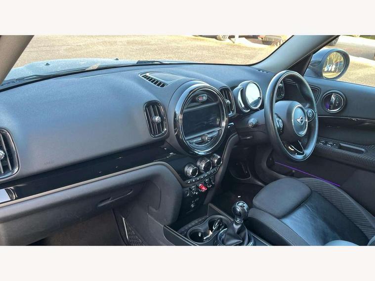 Brake pad wear indicator warning light, DTC - Dynamic traction control, Exterior temperature gauge, Intelligent emergency call, MINI TeleServices, Navigation system, On board computer, Personal Profile, Service interval indicator, Servotronic speed sensitive power steering, Electronic differential lock, Auxiliary input socket, DAB digital radio module, MINI Connected, MP3 compatible radio/single CD player, Radio visual boost, Anti dazzle rear view mirror, Chrome door handles, Chrome exhaust tailpipe, Chrome headlight surround, Chrome plated radiator grille, Chrome window surround, Electric front windows + one touch + anti-pinch, Electrically adjustable door mirrors, Follow me home headlights, Heated door mirrors/heated windscreen washers, Heated rear window with automatic switch off, Metal look door sill finishers, Rain sensor including auto headlights activation, Rear wiper, Roof spoiler, White indicator lights, 12V power point front, 2 cupholders in front centre console, 4 lashing points to secure luggage, 40:20:40 split folding rear seats, Centre console storage box, Chrome interior door handles, Driver/passenger sunvisors, Front and rear headrests, Front and rear Isofix child seat preparation, Front and rear velour floor mats, Front centre armrest with storage compartment, Front interior light, Front passenger grab handle, Front seat backrest storage nets, Heater with recirculation function, Height/reach adjust steering wheel, Luggage compartment lighting, Multifunction steering wheel, Rear grab handles, Sensatec gearshift and handbrake, Storage compartments in doors, Toolkit in luggage compartment, Interior lights pack - Countryman, MINI Excitement Pack - Countryman, 3 point automatic seatbelts, 3 point seatbelts on all rear seats, ABS, Cornering brake control (CBC), Crash Sensor - activates hazard/interior lighting + unlocks doors, Driver and passenger airbags, Driver and passenger side airbags, DSC - Dynamic Stability Control, Electronic brake force distribution, Electronic parking brake, Front curtain airbags, Front passenger airbag deactivation, Fuel cut off safety device, Hill start assist, Pyrotechnically pre-tensioned front seatbelts, Tyre pressure warning, Automatic door locking, Keyless Start, Locking wheel bolts, RF remote control central locking, Second remote key, Thatcham category 1 alarm + immobiliser,