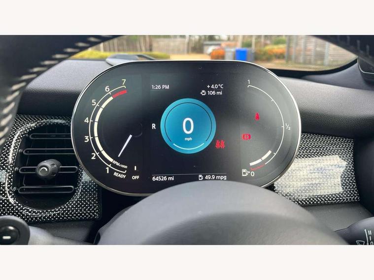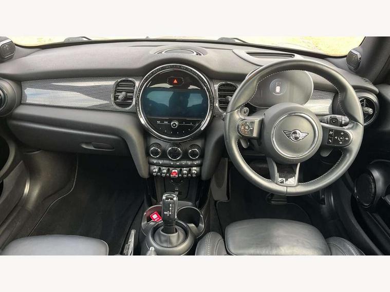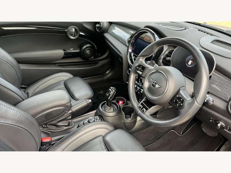 Automatic start/stop function with brake energy recuperation, Compatible mobile phone bluetooth with audio streaming, Cruise control with brake assist, Electro-mechanical speed dependant steering assistance, Flexible car sharing preparation, Instrument cluster, MINI Driving Modes - centre toggle switch to control driving setting (sport, mid and green), Mini E-call, MINI TeleServices, On board computer, Rear park distance control, Service interval indicator, Double Vanos system, Fully variable valve control, High precision injection, Performance Control, Steptronic sport transmission with double clutch and steering wheel paddles, 4 speakers in front door trims and underneath front seats, 8.8" touchscreen with LED ring, FM tuner and DAB digital radio, Automatic headlight activation switch, Bonnet scoop, Chrome line exterior - radiator grille bars, tailgate handle, lower front grille grating and rear central fog-light, Dynamic brake lights, Electric front windows, Heated rear window, Heated windscreen washer jets, LED headlight with closed ring and daytime driving lights, Metal door sill strips with Cooper S, Model logo Cooper S on right of tailgate, Rain sensor window wipers, Rear fog lights, Rear LED lights with union jack design, Rear window wiper, Side scuttle panel with integrated indicator, Sun/heat protection glass, White indicator lenses, 12V Accessory socket in centre console, 4 lashing eyes in luggage compartment, 60/40 split folding rear seat, Carbon black colour line - Knee roll and door armrest, Chrome interior highlights, Chrome line interior - air vents, gear lever base, door handles and speakers in doors, Cupholders, Front and rear head restraints, Front and rear isofix with front passenger airbag deactivation, Glove compartment, Height and length steering column adjustment, Interior lighting with 12 different colours across the dashboard, underneath door bezel with illuminated laser-engraved design on central display, Leatherette gearshift lever and handbrake gaiters, LED reading lights, vanity mirror lights, front foot well light and spotlight on front seats, Manual air conditioning, Mechanical seat adjustment - forward/back & backrest for front seats and driver seat height adjust, MINI yours badge on exterior pillar, Multifunction steering wheel, Passenger seat height adjuster, Satellite grey headlining including grab handles and clothes hooks, Storage compartments in doors, Storage pocket on back of front seats, Sunvisors with vanity mirrors, Velour floor mats, Walknappa leather steering wheel with grey seam and MINI Yours badge on Piano Black lower steering wheel spoke, 3 point seatbelts on all four seats, 6 Airbags - front, side, head and seat belt tensioners, Anti-lock braking system (ABS), DSC - Dynamic Stability Control, Front and rear disc brakes, Two tone horn, Tyre pressure monitoring system, Alarm system with tilt sensor, monitoring doors, bonnet interior and tailgate, Electronic vehicle immobiliser, Start/stop toggle with keyless go, Tool kit,