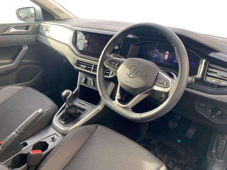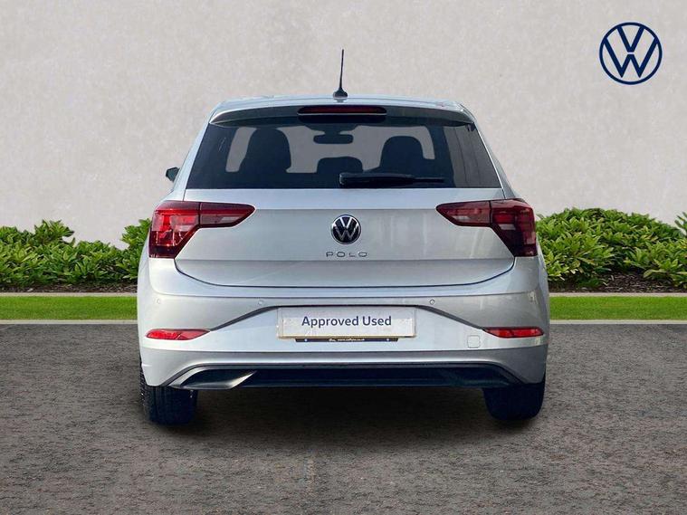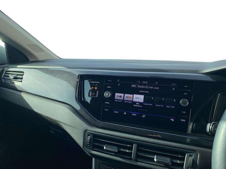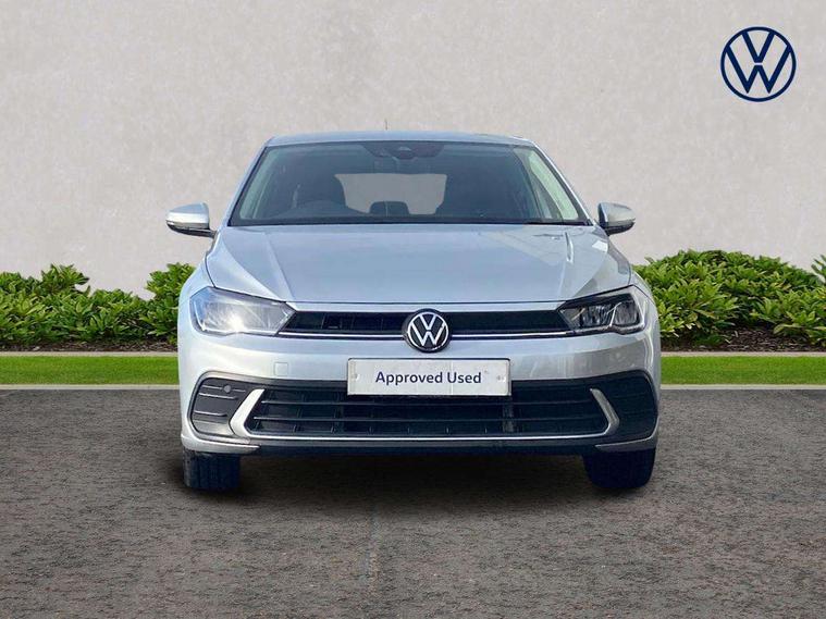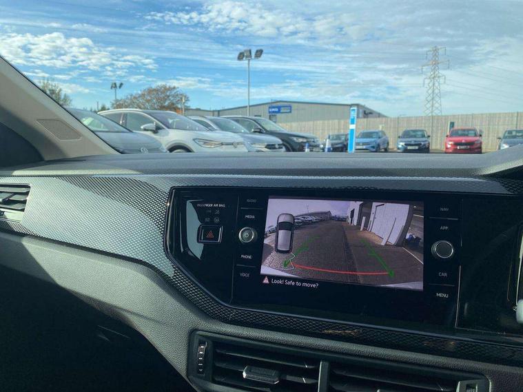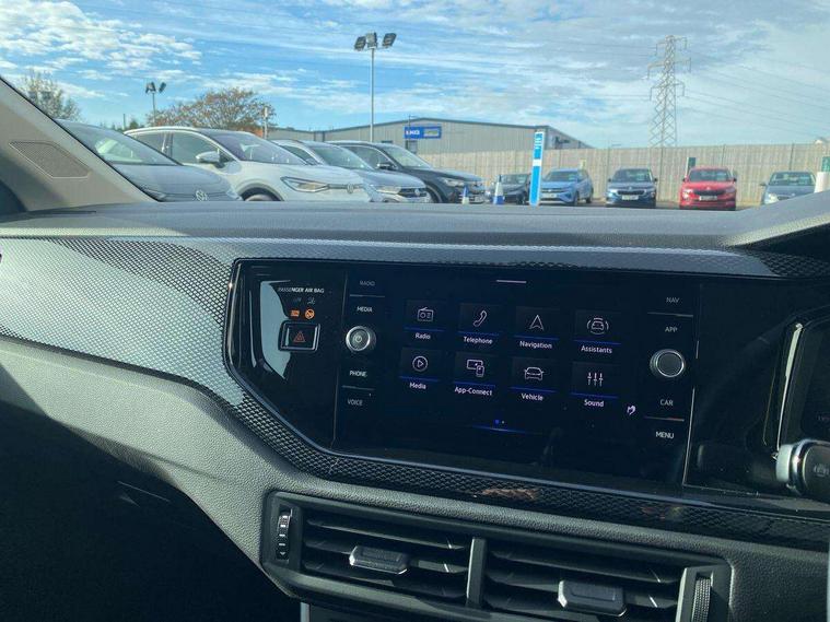 Adaptive cruise control without follow-to-stop and speed limiter, Advanced driver attention and drowsiness monitor, Bluetooth mobile phone interface, Dynamic road sign display, Emergency call service, Multifunction front facing camera for distance control, Park distance control, Power assisted speed sensitive steering, Preparation for navigation system with media and internet package, Preparation for We connect and We connect plus, Rear view camera, Speedo and rev counter, electronic odometer, trip, service interval display and exterior temperature gauge, Standard rear axle, Travel Assist - Lane keeping system and traffic jam assist, Travel assist including emergency assist, Trip computer, Warning signal and warning light for front and rear seatbelts not fastened, Washer fluid level indicator, Wireless app connect, Front wheel drive, Rear shock absorpion, Start-stop system with battery regeneration (recuperation - energy recovery during braking), DAB Digital radio, Diversity antenna for FM reception, Front and rear 6 speakers, Automatic dimming interior rear view mirror, Automatic headlight control with LED separate daytime running lights with coming/leaving home function, Body colour bumpers with chrome inserts, Body colour door handles, Body colour door mirrors, Electric front windows, Engine badge deletion, Headlight range adjustment, Heat insulating and laminated safety glass windshield, LED Headlights, LED rear combination lamps, Power folding adjustable/heated exterior mirrors and front passenger exterior mirror lowering function, Rain sensor, Rear electric windows, Rear fog light, Rear side wing doors, Rear tinted glass from B-pillar backwards approx 65% tinted, Rear windscreen washer and wiper with interval delay, Third brake light, 12V power socket in centre console, 2 front and 2 rear reading lights with switch off delay and dimmer, 2 USB-C ports in the front, 2 USB-C charging sockets on the center console in the rear, 3 rear head restraints, 60/40 split folding rear seat and rear seat bench not split, Ceramique roof lining, Chrome plated radiator grille inserts, air vent surrounds and light switch surrounds, Door and side trim panel, Driver and front passenger seat height adjustment, Driver/passenger sunvisors with illuminated vanity mirrors, Front centre armrest, Front seat backrest storage pockets, Front standard seats, Handbrake lever handle in leather, Hartley/Thomas cloth upholstery, Headliner in recycled material, Isofix child seat preparation easy-fit (for two outer rear seats, and front passenger seat) compatible with I-size, Leather trimmed gear knob, Luggage compartment cover, Luggage compartment lighting, Removable luggage compartment floor, Single front passenger seat, Standard climatic zones, Standard pedal cluster, Three spoke leather wrapped multifunction steering wheel, Light and vision pack - Polo, 3 point height adj front seatbelts + pretensioners, 3 point seat belt for centre rear seat, 3 point seatbelts, outer rear with ECE lable, ABS, Driver and front passenger airbag with front passenger airbag deactivation, Drivers and front passengers safety optimised head restraints, ESC (Electronic stability control) + EDL (Electronic Differntial lock) and ASR (Traction control), Extended and predictive pedestrian/ cyclist protection, Front assist with autonomous emergency braking (for Adaptive Cruise Control ACC up to 130 mph), Front curtain and side airbags with center airbag, Front disc brakes, Hill hold control, Manual child lock in rear doors, Rear drum brakes, Single tone horn, Tyre pressure loss indicator, Alarm with interior protection, Anti-theft alarm system with interior monitoring, backup horn, and towing protection, Anti-theft wheel bolts, Electronic engine immobiliser, Lava stone black gloss/matt decorative inserts in dash and front door panels, 16" Torsby alloy wheels, Low rolling resistance tyres,