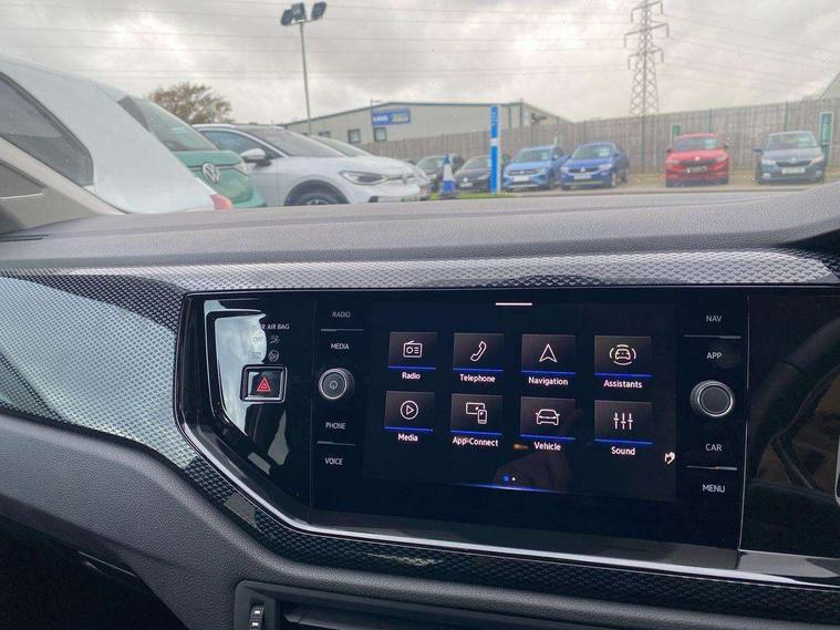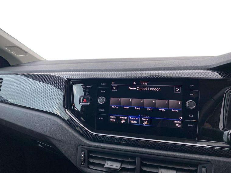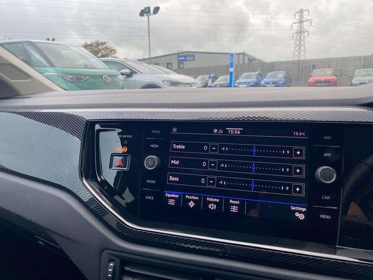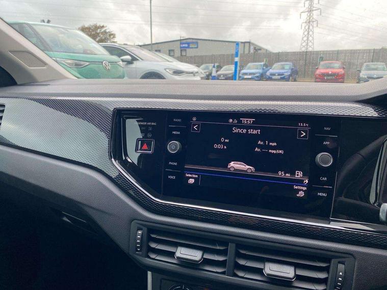 Advanced driver attention and drowsiness monitor, Bluetooth mobile phone interface, Dynamic road sign display, Emergency call service, Multifunction front facing camera for distance control, Park distance control, Power assisted speed sensitive steering, Predictive adaptive cruise control without follow-to-stop and speed limiter, Preparation for navigation system with media and internet package, Preparation for We connect and We connect plus, Rear view camera, Speedo and rev counter, electronic odometer, trip, service interval display and exterior temperature gauge, Standard rear axle, Travel Assist - Lane keeping system and traffic jam assist, Travel assist including emergency assist, Trip computer, Warning signal and warning light for front and rear seatbelts not fastened, Washer fluid level indicator, Wireless app connect, Front wheel drive, Rear shock absorpion, Start-stop system with battery regeneration (recuperation - energy recovery during braking), DAB Digital radio, Diversity antenna for FM reception, Front and rear 6 speakers, Automatic dimming interior rear view mirror, Automatic headlight control with LED separate daytime running lights with coming/leaving home function, Body colour bumpers with chrome inserts, Body colour door handles, Body colour door mirrors, Electric front windows, Engine badge deletion, Headlight range adjustment, Heat insulating and laminated safety glass windshield, LED Headlights, LED rear combination lamps, Power folding adjustable/heated exterior mirrors and front passenger exterior mirror lowering function, Rain sensor, Rear electric windows, Rear fog light, Rear side wing doors, Rear tinted glass from B-pillar backwards approx 65% tinted, Rear windscreen washer and wiper with interval delay, Third brake light, 12V power socket in centre console, 2 front and 2 rear reading lights with switch off delay and dimmer, 2 USB-C ports in the front, 2 USB-C charging sockets on the center console in the rear, 3 rear head restraints, 60/40 split folding rear seat and rear seat bench not split, Ceramique roof lining, Chrome plated radiator grille inserts, air vent surrounds and light switch surrounds, Door and side trim panel, Driver and front passenger seat height adjustment, Driver/passenger sunvisors with illuminated vanity mirrors, Front centre armrest, Front seat backrest storage pockets, Front standard seats, Handbrake lever handle in leather, Hartley/Thomas cloth upholstery, Headliner in recycled material, Isofix child seat preparation easy-fit (for two outer rear seats, and front passenger seat) compatible with I-size, Leather trimmed gear knob, Luggage compartment cover, Luggage compartment lighting, Removable luggage compartment floor, Single front passenger seat, Standard climatic zones, Standard pedal cluster, Three spoke leather wrapped multifunction steering wheel with shifting paddles, Light and vision pack - Polo, 3 point height adj front seatbelts + pretensioners, 3 point seat belt for centre rear seat, 3 point seatbelts, outer rear with ECE lable, ABS, Driver and front passenger airbag with front passenger airbag deactivation, Drivers and front passengers safety optimised head restraints, ESC (Electronic stability control) + EDL (Electronic Differntial lock) and ASR (Traction control), Extended and predictive pedestrian/ cyclist protection, Front assist with autonomous emergency braking (for Adaptive Cruise Control ACC up to 130 mph), Front curtain and side airbags with center airbag, Front disc brakes, Hill hold control, Manual child lock in rear doors, Rear drum brakes, Single tone horn, Tyre pressure loss indicator, Alarm with interior protection, Anti-theft alarm system with interior monitoring, backup horn, and towing protection, Anti-theft wheel bolts, Electronic engine immobiliser, Lava stone black gloss/matt decorative inserts in dash and front door panels, 16" Torsby alloy wheels, Low rolling resistance tyres,