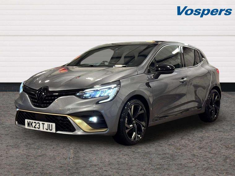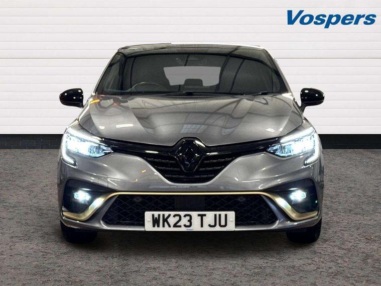 10" driver information display cluster, Apple car play/Android Auto, Cruise control + speed limiter, E-call, Easy link navigation with 9.3" touchscreen+4x20W amplifier+FM DAB double tuner, sound auditorium, 2xUSB/1xjack/bluetooth, smartphone integration plus, Eco mode driving function, Emergency call system, Front parking sensors, Gear change indicator, Lane departure warning system, Lane keep assist, Over speed prevention warning, Rear parking sensors, Rear view camera, Traffic sign recognition, Trip computer, Variable assistance electric PAS, E-TECH battery, Auto dimming rear view mirror, Auto high beam assist, Auto light control and rain sensing wiper, Automatic headlights, Black Renault logo front and rear, Black wing mirrors, Body colour door handles, Bumpers - gold styling elements, Chrome front grille, Drivers one touch window with anti-pinch feature, E-TECH badging, gold sports front bumper, sports lower grill, side and rear E-TECH engineered markings and gold detailing, Electric front windows, Electric rear windows, Exterior rear hidden door handles, Extra tinted glass on rear windows + tailgate, Front and rear LED roof light x 2, Full C-shape LED front and rear signature lighting, Full LED front and rear headlamps integrating daytime running lights at the front and rear, Gun Metal insert on lower side doors with Clio embossing, Heated rear windscreen, LED front fog lights, LED reverse light, LED third brake light, Manual folding wing mirror mechanism, Manually adjustable door mirrors, Rear fog lights, Rear side wing doors, Rear spoiler - gold styling elements, Rear wiper, Shark fin antenna, Variable speed on front windscreen wipers, 12V Accessory socket, 3 rear height adjustable headrests, 3 seat bench in 2nd row, 6.2L front glovebox, 60/40 split and fixed base rear seat bench, Air recirculation control, Auto climate control, Black headlining, Black hooks on boot floor x 4, Centre console with storage and armrest, Dark roof lining and aluminimum pedal set, E-TECH Engineered interior trim including airvent gold stripe, renault diamond gold surround and gearshifter with gold stitching, Fabric upholstery, Front cupholders, Front decor strip in red, Front door storage bin, Height adjustable front headrests, Height/reach adjust steering wheel, Isofix system on outer rear seats, Luggage nets in boot, Mechanical height adjustable front seats, Multi function steering wheel, Multisense including ambient lighting and selectable drive modes, Pollen filter, Single front passenger seat, Sun visor without light, Synthetic leather steering wheel, System for Restraint and Protection SRP-front seats, 3 point seatbelts on all rear seats, AEBS - active emergency braking system, BAS (Brake Assist System), Curtain airbags, Distance warning alert, Driver and passenger front and side airbag deactivation, Driver/Front Passenger airbags, Electronic parking brake with auto hold, ESC - Electronic Stability Control + traction control, Front side airbags(head+thorax), Height adjustable driver's seatbelt, Seatbelt warning, Tyre pressure warning, Deadlocking system, Hands free key card with push button, start and stop function, Locking fuel filler cap, RAID (Renault Anti-Intruder Device) with automatic door locking, Rear side wing door and window child locking function (front driver door control panel), Remote central locking with thatcham approved immobiliser, Upper dashboard soft covered with positive thermoforming type 2, 17" E-TECH Engineered Diamond Cut Alloy with Gold Inserts,
