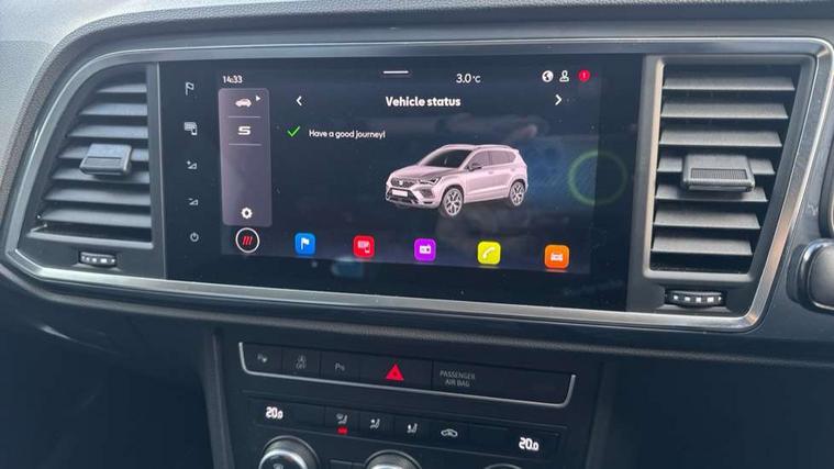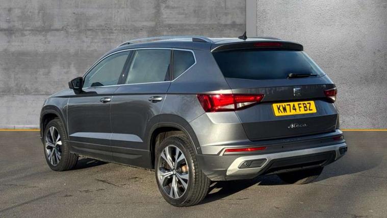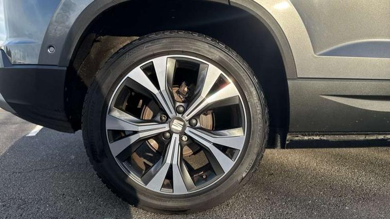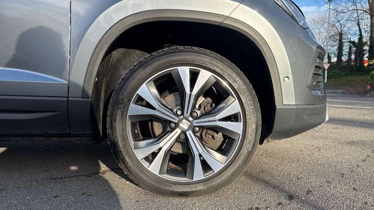 8" Digital cockpit, Colour multi-function on board computer display, Cruise control system with speed limiter, E-call, Outside temperature gauge, PAS, SEAT drive profile with driving experience button - Normal, Sport, Eco and Individual mode, gearshift, steering and throttle response, Self parking functionality (includes front and rear parking sensors), Start/stop system, Tailgate, Trip computer, wired and wireless full link smartphone integration, Wireless phone charger, Steering wheel mounted audio/phone controls, Black wheel arch surrounds, Body colour bumpers, Chrome front grille frame, Chrome roof rails, Chrome side window trim, Daytime running lights, Door mirrors with welcome light silhouette, Dynamic headlight range control with self adjusting whilst driving, Electric adjustable/heated/folding door mirrors, Front and rear electric windows, Full LED headlamps with lens and LED front fog lamps with cornering function, LED 3rd brake light, LED rear tail lights, Rear exhaust tailpipe, Rear fog lights, Rear side wing doors, Rear wash/wipe, Variable front intermittent wipers, 12V socket in front, 3 seat bench in 2nd row, 60/40 split folding rear seat, Cloth upholstery with front comfort seats, Drawer under right front seat, Dual zone climate control, Front and rear head restraints, Front centre armrest, Front seat back storage pockets, Height adjustable driver and passenger seat with lumbar adjustment, ISOFIX points in outer rear seats with top tether anchorage points, Leather sports steering wheel and gear knob, Rear armrest and easy back seat release mechanism from boot, Single front passenger seat, Steering wheel mounted gearshift paddles, Convenience pack - Ateca, Interior lighting pack - Ateca, Navigation system pack with DAB - Ateca, Safety and driving pack with attention and drowsiness assist - Ateca, 3x3 point rear seatbelts, ABS, Traction control system (TCS), Electronic stability control (ESC) and Electronic differential lock system (XDS), Airbags - Driver and front passenger airbag with deactivation, front side, two curtain and driver's knee airbags, Electric parking brake with auto hold function, Front and rear seatbelt reminder, Front assist with autonomous emergency braking, Hill hold control, Manual rear child locks, Single tone horn, Tiredness recognition system, Tyre pressure monitoring system, Alarm, Keyless entry, Locking wheel bolts, Remote central locking, Chrome interior detailing, 18" Performance machined alloy wheels 36/2 in nuclear grey,
