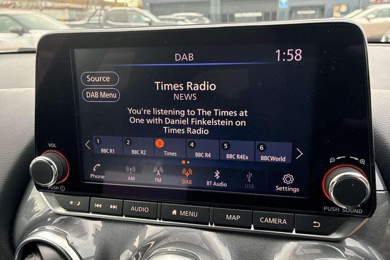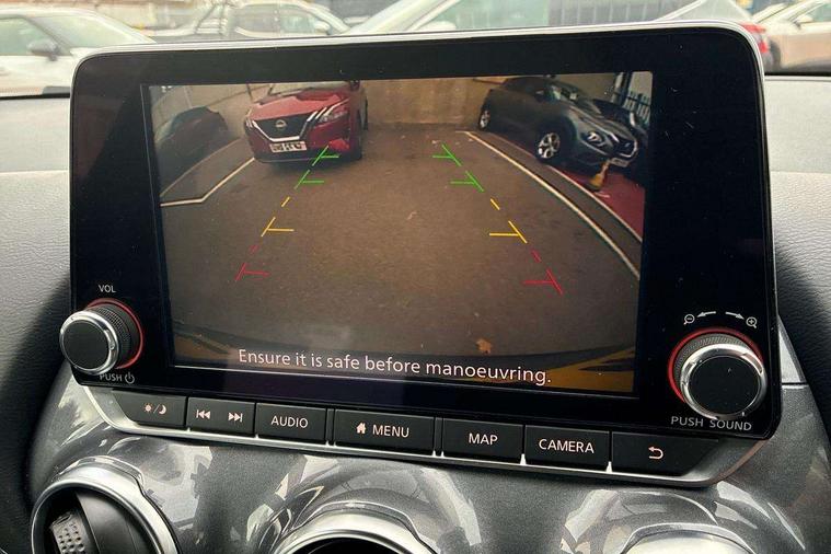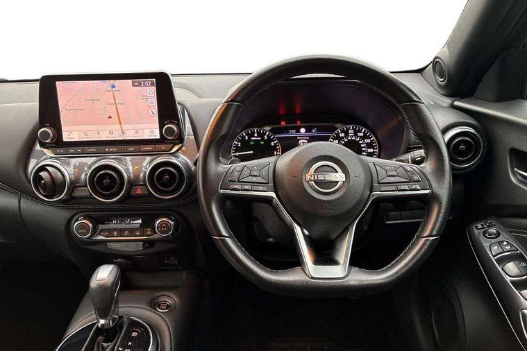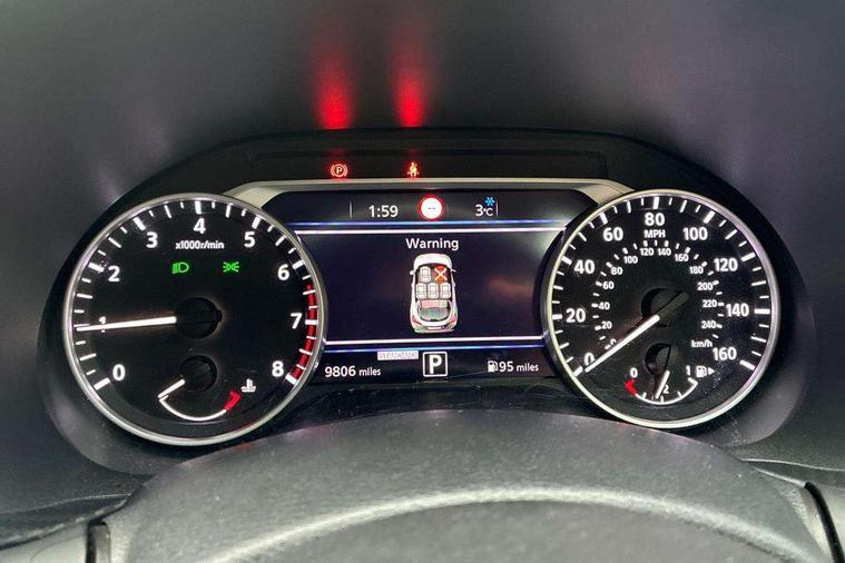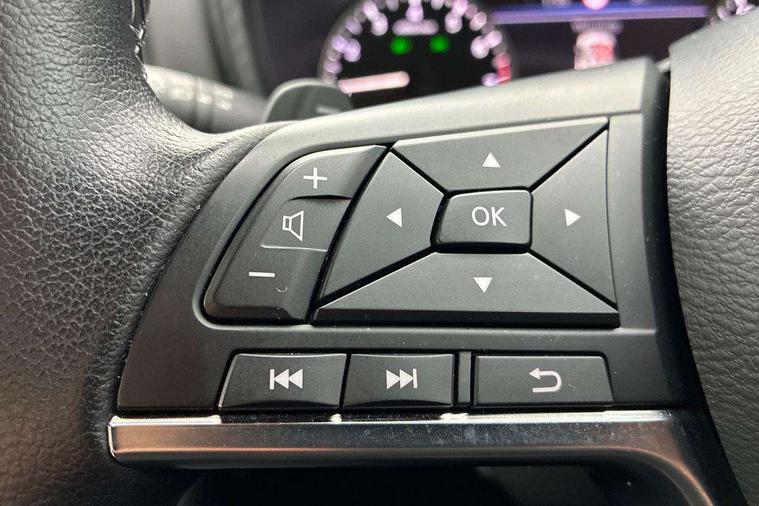 7" full colour TFT screen combimeter, Apple CarPlay and Google Android auto, Drive modes select (Eco, normal and sport), Emergency and breakdown call, Front parking sensor, Idle start/stop system, Intelligent lane intervention, Lane departure warning system, Nissan connect 8" touch screen entertainment system, Nissan connect nav with TomTom traffic, Nissan connect services and Wifi connection, Outside temperature sensor, Power Steering, Rear parking sensor, Traffic sign recognition, Trip computer, Voice recognition, Gasoline particulate filter, 6 speakers, Bluetooth system, USB, Aux-in and 12V socket, DAB Digital radio, Rear console USB port, Auto dimming interior rear view mirror, Auto headlights, Automatic hazard signal with emergency stop signal, Body colour bumpers, Body colour door handles, Electrically adjustable door mirrors with integrated indicators, Follow me home headlights, Front and rear electric window with one touch driver window, Heated and auto folding door mirrors, High beam assist, LED daytime running lights, LED headlamps, LED rear fog lamp, LED rear lamps, Rain sensor windscreen wipers, Rear privacy glass, Rear side wing doors, Rear wiper, Three blink turn signal, 3 height adjustable rear headrests, 3 seat bench in 2nd row, 60/40 split folding rear seat, Automatic climate control, Card holder on driver sunvisor, Cloth upholstery with black and metallic grey syntech leather inserts, Driver and passenger sliding and reclining seats, Driver side rear coat hanger, Driver/passenger sunvisors and vanity mirrors, Front and rear cabin lights, Front armrest, Front door pockets with bottle holders, Front head restraints, Front/rear passenger grab handles, Grey synthetic leather kneepad, Height adjustable driver's seat, Internal chrome door handles, Leather gearshift knob, Leather steering wheel, Luggage board, Luggage space lighting, Monoform sporty seats, Multifunction steering wheel, Rear door bottle holders, Single front passenger seat, Steering wheel mounted gearshift paddles, Telescopic steering wheel adjustment, Two cupholders in front centre console, Two rear isofix child seat anchorage points with top tether, Welcome light and console tray ambient lighting, ABS with EBD and brake assist, Active ride control, Active Trace Control, Driver and passenger airbags, Driver and passenger side airbags, Electric handbrake with auto hold function, Electronic Stability Programme (ESP), Front and rear curtain airbags, Height adjustable seatbelts, Hill start assist, Intelligent emergency braking with pedestrian and cyclist recognition, Rear door child safety locks, Seatbelt reminder for driver/front passenger and rear seats, Single tone horn, Three 3 point rear seatbelts, Traction control, Tyre pressure monitoring system, VDC Dynamic Vehicle Control, Ventilated rear brake discs, Alarm, Immobiliser, Intelligent key and start push button with walk away lock and approach unlock functions, Remote central locking,