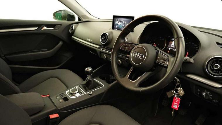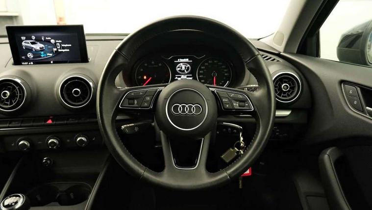 Audi connect, Audi smartphone interface, Automatic start/stop system, Colour driver's information system display, Electro - mechanical power assisted steering, Mobile telephone preparation - bluetooth interface, SD card based satellite navigation system, Service interval indicator, Speed limit display, Voice control system, Voice recognition for navigation system, Dynamic suspension, 2 USB interfaces and Aux-In jack, Audi music interface, CD player, DAB Digital radio, MMI radio plus with 7" colour MMI screen and MMI controller, Auto dimming rear view mirror with light and rain sensors, Body colour bumpers, Body colour door mirrors, Body colour roof spoiler with aerodynamic inserts in high gloss black, Electric front windows, Electric rear windows, Electrically adjustable and heated door mirrors with integrated LED side indicators, Heated windscreen washer jets, Matt black radiator grille, Rear wiper, Xenon headlights with LED Daytime running light, 3 adjustable rear headrests, 3 spoke leather multifunction sports steering wheel, 4 lashing points to secure luggage, Adjustable front centre armrest, Front and rear interior lights with delay, Front/rear floor mats, Glovebox light, Height and reach adjustable steering wheel, Isofix child seat preparation for front passenger/outer rear seats inc passenger airbag deactivation, Rock grey headlining, Storage compartments in doors side trims, centre console and under front drivers seat, Non smoking pack - A3, 3 point seatbelts on all seats, ABS/EBD, Active bonnet, Active front headrests, Airbags - front driver/passenger, front & rear side, curtain, drivers knee, ASR, EDL, Electromechanical parking brake, ESC - Electronic Stability Control + traction control, Front passenger airbag deactivation, Hill hold assist, Manual rear child locks, Multi-Collision braking, Seatbelt warning, Tyre pressure warning, Warning triangle and first aid kit, Anti theft alarm, Anti-theft wheel bolts, Remote control central locking, Thatcham category 1 alarm + immobiliser, Aluminium air vent surrounds, Micrometallic silver inlay, Tool kit, Tyre repair kit,