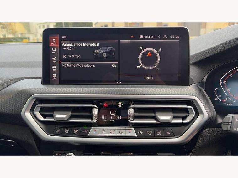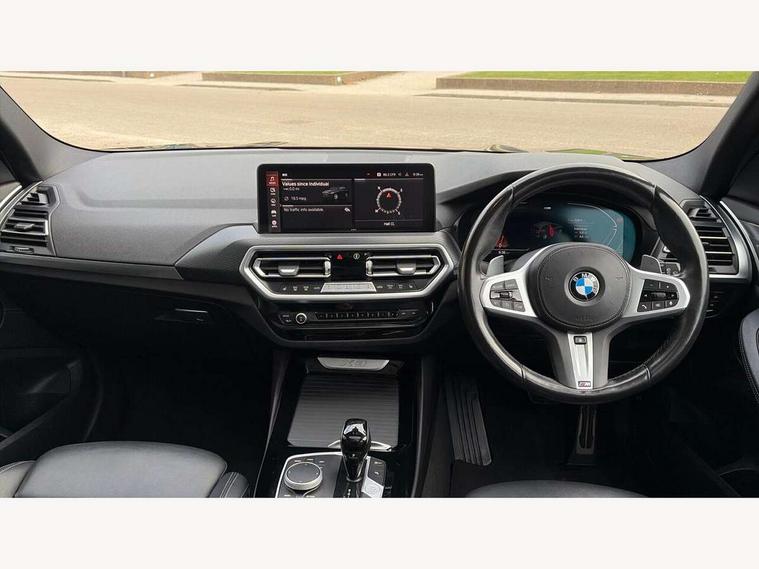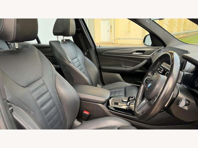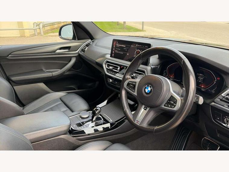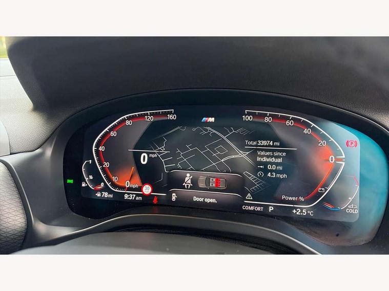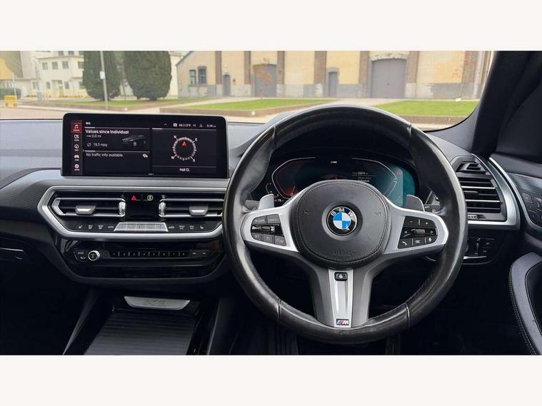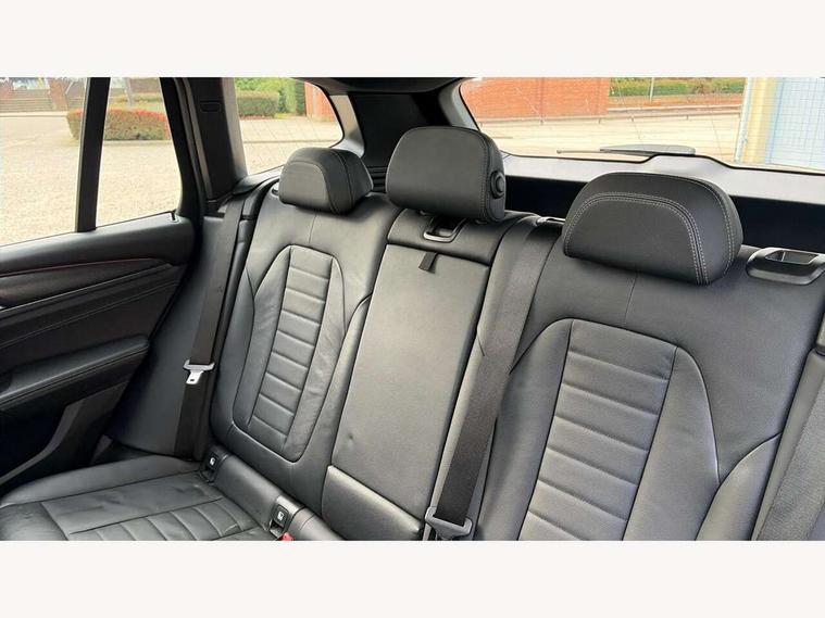 Active Guard, Attentiveness assist, BMW Live Cockpit Professional nav system including 12.3" instrument display + 12.3 high resolution control display, BMW Online services, BMW Teleservices, Brake pad wear indicator in front and rear, Check Control warning system for monitoring of lights and door/luggage compartment open warning, Condition based service - BMW service history, electronic service booklet, integrated owner's handbook, Connected drive services, Cruise control with brake function + speed limiter, Electric boot lid, Front/rear Parking distance control, iDrive Controller with 8 favourite buttons, Instrument cluster with speedometer with mph readout, tachometer, fuel gauge and oil temperature gauge, Lights on warning by audio warning signal when ignition is switched off, Oil sensor for level and grade, warning by check control system, On board computer - average speed+fuel consumption, service interval, clock/date, odometer/trip meter, outside temperature display and ice warning, Optimum shift indicator, Personal Profile - automatic lock when driving away selectable, Stop/start system, Variable sports power steering, Automatic transmission with gearshift paddles, Drive performance control with ECO PRO comfort + sport mode, Incorrect fuelling protection, M sport suspension, Multi-link rear suspension, Performance Control, BMW professional radio/CD/MP3, DAB tuner, Acoustic glazing, Automatic windscreen wipers and automatic headlight, Black finish on B pillars, Body colour door handles, Body colour electric adjust heated aspherical door mirrors, Body colour roof mouldings, Body coloured bumpers, Direction indicator, side repeaters, integrated in exterior mirrors, Dynamic brake lights, Exhaust tailpipes - dual, round, split left and right with chrome finisher, Fingertip control / anti-trap function on electric window, Folding wing mirrors with auto dimming, Follow me home headlights, Front and rear bumper system with replaceable deformation elements, Front and rear electric windows, Gloss chrome tailpipes finishers, Green tinted heat insulating glass, Heated windscreen washer jets, High beam assistant, High gloss black shadow line roof rails, High gloss shadowline exterior trim in decorative moulding side frame/recess cover/guide rail/B, C pillars/mirror frame and triangle with mirror base, High level 3rd brake light incorporating LED Technology, Interior rear view electrochromatic mirror with automatic anti dazzle function, LED tail lights, Lightweight engineering, M aerodynamic bodystyling, Model designation, Rear side wing doors, Rear wing door, Rear wiper, Shark fin antenna, Side exterior M designation badges, Visible VIN plate, Welcome lighting, Windscreen wipers with adjustable interval, 12V power socket in front centre console, 3 rear headrests, 3 zone automatic air conditioning, 4 lashing points to secure luggage, 40:20:40 split folding rear seat with loading system, 5 seats, Ambient lighting, Anthracite headlining, Automatic interior light when door is opened/ignition switched off or via remote key, Foldable storage floor with compartment, Four grab handles integrated in roof lining, Front and rear bottle holders integrated into door trim storage compartments, Front and rear side armrests integrated into door trim, Front centre armrest with storage compartment, Front footwell lights, Front head restraints, Front sports seats, Front/rear courtesy lights with soft on/off dimming, Front/rear reading lights, Heated front seats, Isofix rear child seat preparation, Leather gear knob, Luggage area underfloor compartment, Luggage compartment lighting, M sport leather steering wheel, Multifunction steering wheel, Parcel shelf removeable and storable under boot floor, Reach and rake adjustable steering column, Rear centre armrest with 2 cupholders, Removable / retractable luggage cover, Seat backrest width adjustment, Slope adjustable rear seats, Storage compartment in rear centre console and front/rear door trims, Sun visors with vanity mirrors and ticket pocket, Toolkit located in luggage compartment, Two front cupholders with removable oddments tray/lid, Vernasca leather upholstery, Connected pro pack - X3, Driving assistant pack - X3, ADB - Automatic Differential Brake, Anti-lock braking system (ABS) with brake assist, Automatic Stability Control (ASC), Battery safety cut-off, BMW emergency call, Brake drying, Brake energy regeneration, Braking pre-tensioning, Child locks on rear doors, Cornering brake control (CBC), Crash Sensor - activation of central locking release, hazard warning light and interior lighting, Deactivation of fuel pump in the event of a crash, Driver and front passenger front and side airbags with passenger deactivation and ITS front and rear head airbags, DSC+, Dynamic brake control, Dynamic Traction Control - DTC, Electromechanical parking brake, Hill descent control, Hill start assist, Seatbelt security check for front seats, Side impact protection, Three point seatbelts to all seats with front and outer rear pyrotechnic belt tensioners and seat belt force limiters, Two tone horn, Tyre pressure sensor, Ventilated front and rear disc brakes, Warning triangle and first aid kit, Central locking switch for all doors, fuel filler cap and luggage compartment, Electronic engine immobiliser, Locking wheel nuts, Remote control including two integrated key - one button for open/close all lockable content, windows and separate button for open luggage compartment, Remote control Thatcham category 1 alarm, Start/stop button with Comfort Go keyless engine start and auto Start/stop deactivation button, Low rolling resistance tyres,