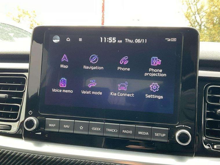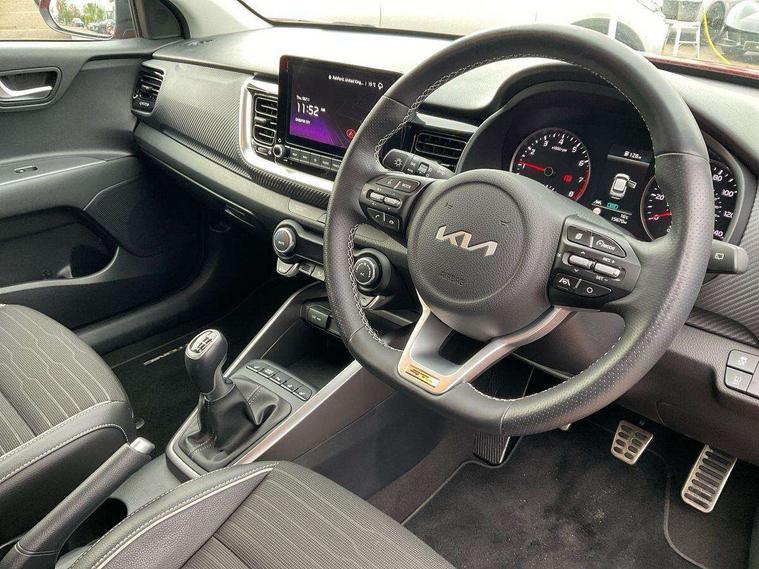 4.2" supervision colour cluster display, 8" touchscreen navigation, Apple car play/Android Auto with voice control, Blind spot collision warning, Cruise control + speed limiter, Drive mode selector, Electric power steering, Emergency call service, Emergency stop signalling system, External temperature display, Forward Collision-Avoidance Assist (FCA) - City/Pedestrian/Cyclist, Front parking sensors, Intelligent speed limit warning, Lane keeping assist system (LKAS), Driver attention warning (DAW) and High beam assist (HBA), Rear parking sensor, Reversing camera system, Trip computer, Intelligent Stop and Go, Audio system with 6 speakers, Bluetooth with music streaming, Front USB port, Steering wheel mounted controls, All round electric windows with drivers auto up/down function, Auto dimming rear view mirror, Automatic defog system, Automatic headlights control, Black side sill, door garnish and wheel arch trims, Black/body colour bumpers, Body coloured exterior door handles, Chrome side window trim, Electrically adjustable/heated/folding door mirrors with LED indicators, Front and rear silver skid plates, Gloss black door mirrors with matt black lower housing, GT-Line body kit, Headlight levelling device, Heated rear window, High gloss black and satin radiator grille, LED Bi-function projection headlights with static bending, LED daytime running lights, LED front fog lights, LED position light, LED rear combination lights, Privacy glass - Rear windows and tailgate, Rain sensing front wipers, Rear fog lights, Rear side wing doors, Rear wash/wipe, Roof coloured rear spoiler with high mounted braking light, Roof rails, Shark fin antenna, Solar windshield glass, Speed variable front aeroblade wipers, Tinted glass, Welcome and follow-me home light functionality, Windscreen Washer Level Warning, 12V power point front, 3 seat bench in 2nd row, 60/40 split folding rear seat, Air filter, All-round height adjustable headrests, Aluminium pedals, Automatic air conditioning, Centre armrest storage box, Centre console with cupholders, D-Cut perforated leather trimmed steering wheel, Dash illumination dimmer switch, Driver's seat height adjuster, Front and centre cabin lights, Front and rear door map pockets with bottle holder, Gear shift indicator, Glovebox illumination, GT-Line cloth/faux leather upholstery, Heated front seats, Heated steering wheel, ISOFIX Child seat top tethers and anchor fixings outer rear seats, Leather trimmed gearshift, Luggage area light, Luggage area parcel shelf, Luggage net, Luggage net with hooks, Overhead console lamp, Overhead console with sunglasses cases, Passenger front seatback pockets, Passenger seat height adjuster, Rear USB charging port, Satin chrome interior door handles, Single front passenger seat, Sunvisors with vanity mirror illumination (Driver and front passenger), Tilt/telescopic adjustable steering wheel, ABS with Electronic Brakeforce Distribution (EBD) and Brake Assist System (BAS), All round 3-point seatbelts, Electronic stability control (ESC) and vehicle stability management (VSM), Front passenger airbag cut-off switch, Front seatbelt pretensioners + load limiters, Height adjustable front seatbelts, Hill start assist control (HAC), Impact sensing auto door unlocking, Manual child lock in rear doors, Rear seat Occupancy alert, Seatbelt reminder warning, Twin curtain airbags, Twin front airbags, Twin front side airbags, Tyre pressure monitoring system, Alarm system, Door deadlocks, Engine immobiliser, Locking wheel nuts, Smart key with engine start/stop button, Speed sensitive auto door locking, Visible vehicle identification number, High gloss black centre fascia, 17" GT-Line alloy wheels, Tyre mobility kit,