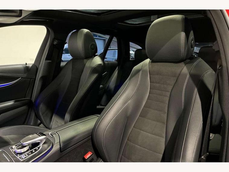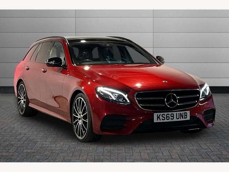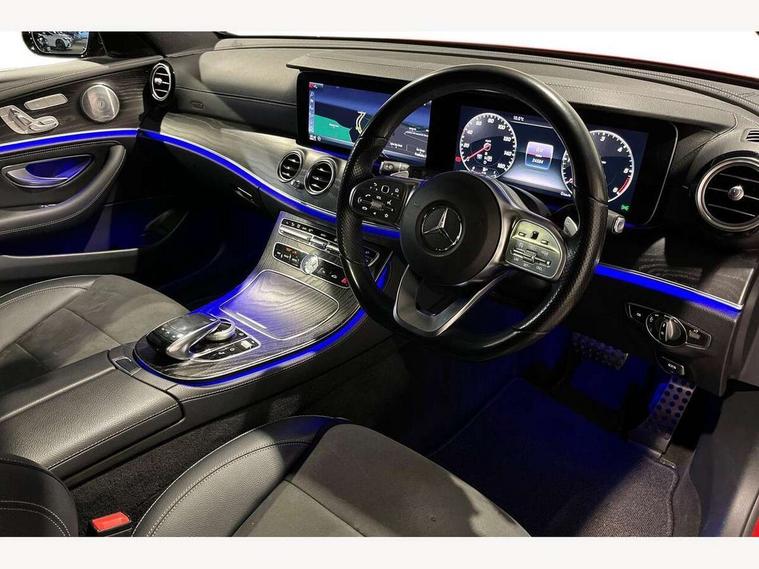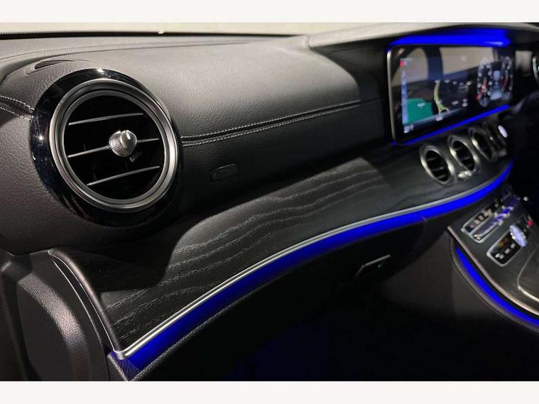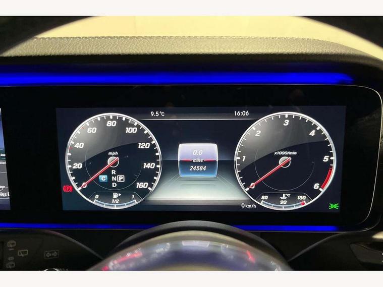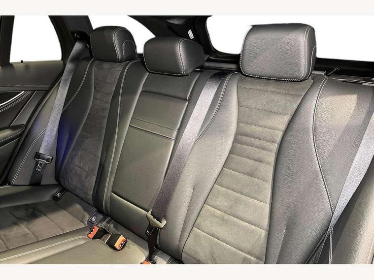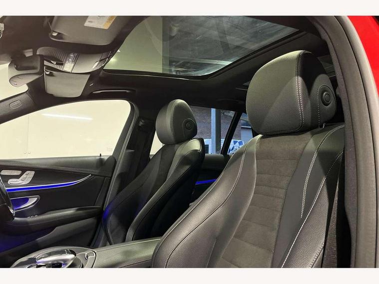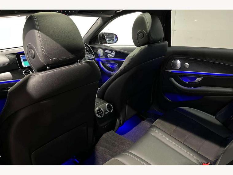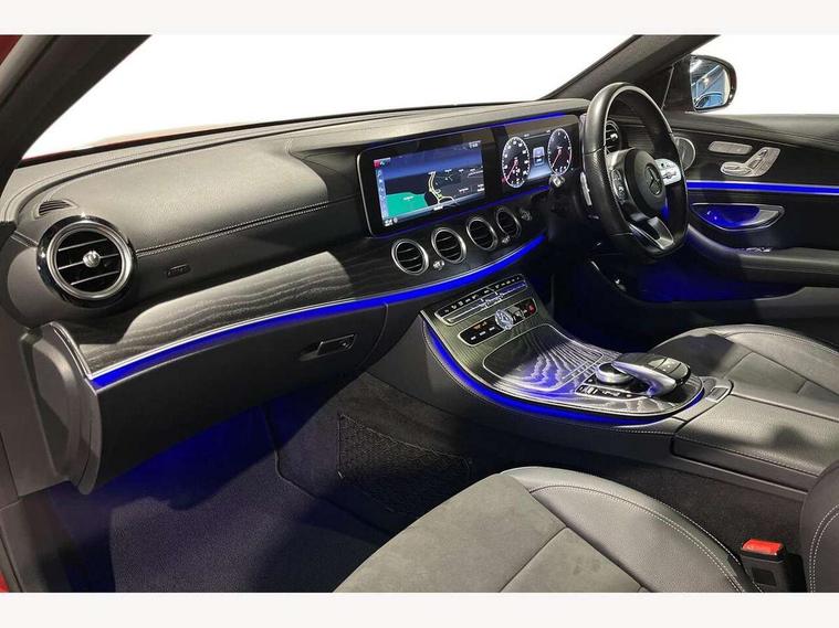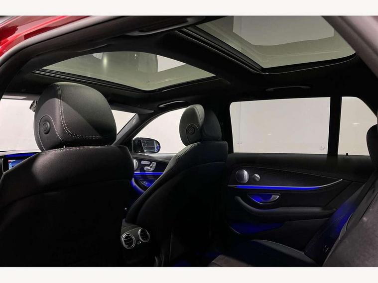 Active parking assist and 360 camera, Analogue clock, Attention assist, Blind spot assist, Boot release from drivers seat, Brake wear warning light, COMAND online HDD navigation with media interface with 12.3 inch colour display, WLAN/Wi-Fi hotspot, Car-to-X Communication, COMAND online system with Media Interface and HDD navigation with 12.3" colour display and cockpit display, DYNAMIC SELECT with a choice of driving modes (ECO, Comfort, Sport, Sport+ and Individual), Easy-pack tailgate - Powered opening/closing automatically, Mercedes connect me, Multi function trip computer, Outside temperature display, Park assist pilot with front and rear park assist, Remote boot release, Service indicator (ASSYST), Smartphone integration via Android Auto/Apple CarPlay, Media Interface, USB and Bluetooth interface, Speed sensitive power steering, Status display for rear seat belts in instrument cluster, Stop/start system, Touchpad with control wheel, Traffic sign assist, Wireless charging, 25 litre AdBlue tank, 66 litre fuel tank, Agility control sports suspension with selective damping system and lowered by 15mm, Diesel particulate filter, Incorrect fuelling protection, Rear air suspension with level control, 2 USB ports in centre console, 2 USB ports in the rear, Audio 20 with USB, control wheel and Media Interface with Bluetooth interface and hands-free function, Burmester surround sound system with 13 speakers, DAB Digital radio, Steering wheel mounted audio controls, Adaptive brake lights, Aerial integrated in rear window, AMG bodystyling front and rear aprons and side skirts in polished aluminium, Body colour bumpers, Body colour door handles, Chrome roof rails, Chrome trim on the front bumper and high gloss black trim on the rear bumper, Electric panoramic glass sunroof, Electric windows with one touch opening/closing and obstruction sensors, Electrically adjustable and heated door mirrors, LED High Performance headlamps including integral LED daytime running lamps, LED rear lights, MULTIBEAM Intelligent Light System with Adaptive Highbeam Assist, Polished aluminium upper window surround, Privacy glass (rear side windows and rear screen), Radiator grille with integral star and 2 louvres in matt iridium silver with chrome trim, Rain sensor windscreen wipers, Rear wiper, Visible twin exhaust tailpipe in bumper, 3 spoke multifunction flat bottom AMG steering wheel with chrome inserts and touch control buttons, trimmed in black nappa leather, 40:20:40 split folding rear bench seat, Ambient lighting, AMG floormats, AMG sports pedals with brushed stainless steel surfaces and black rubber studs, Artico leather upper dash trim and beltlines with contrast stitching, Auto dual-zone climate control system, Auto Mercedes-Benz child seat recognition sensor, Black roof lining, Chrome door pins, Courtesy lights in rear grab handles with reading light functionality, Electric height/reach adjustable steering column, Folding shopping box, Front and rear door pockets, Front centre armrest with storage compartment, Front door sills with illuminated Mercedes lettering, Glasses compartment in overhead control panel, Head restraints for driver and front passenger (four-way adjustability) and in rear (two-way), Heated front seats, Interior rear light/integral reading lights, Isofix rear child seat fastenings, Lockable/illuminated air conditioned glovebox, Sports pedals in brushed stainless steel with black rubber studs, Steering column electrically adjustable for height and reach, Steering wheel multifunction with gearshift paddles, Storage compartment with 12V socket in centre console, Sunvisors with illuminated vanity mirrors, Keyless Go comfort pack - E Class, Memory pack - E Class, Mirror pack - E Class, Night pack - E Class AMG Line, Stowage pack - E Class Estate, 3x3 point rear seatbelts, Active bonnet, Active brake assist, Adaptive brake system with HOLD function and brake drying in the wet, Anti-lock braking system (ABS), Black seat belts, Childproof rear door locks, Driver and passenger side/thorax airbags, Driver/front passenger airbag, Drivers knee airbag, Electronic parking brake, Electronic Stability Programme, Hill hold assist, Hill start assist, Perforated front brake discs with "Mercedes-Benz" lettering, Pre-Safe anticipatory safety system, Seat occupancy sensor, Seatbelt warning, Tyre pressure monitoring system, Warning triangle and first aid kit, Window airbags, Alarm system/interior protection/immobiliser, Central locking with interior switch, automatic locking and crash sensor with emergency opening function, Chrome surround in electric key, Black open pore ash wood dashboard and door trim + Centre console in black open pored ash wood, Black open pore ash wood trim and centre console in black open pore ash wood, Contrast stitching, 20" AMG multi spoke light alloy wheels painted in high gloss black sheen finish - RVR, Run flat tyres,