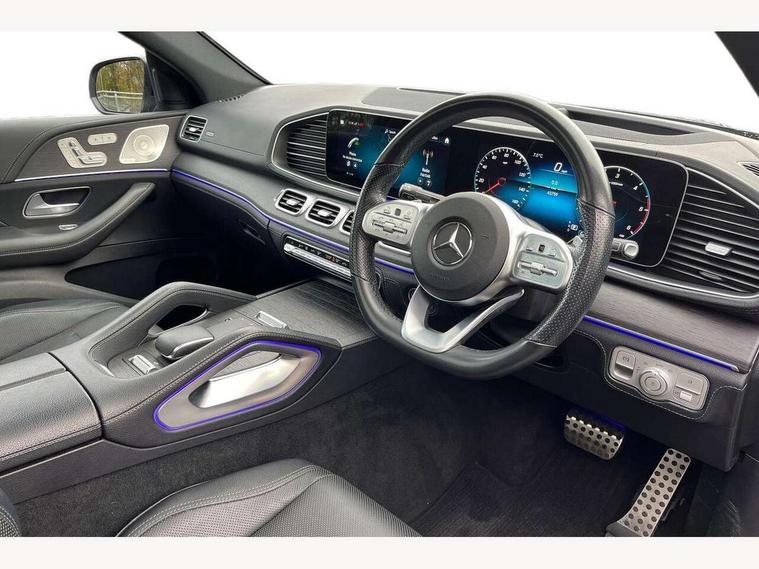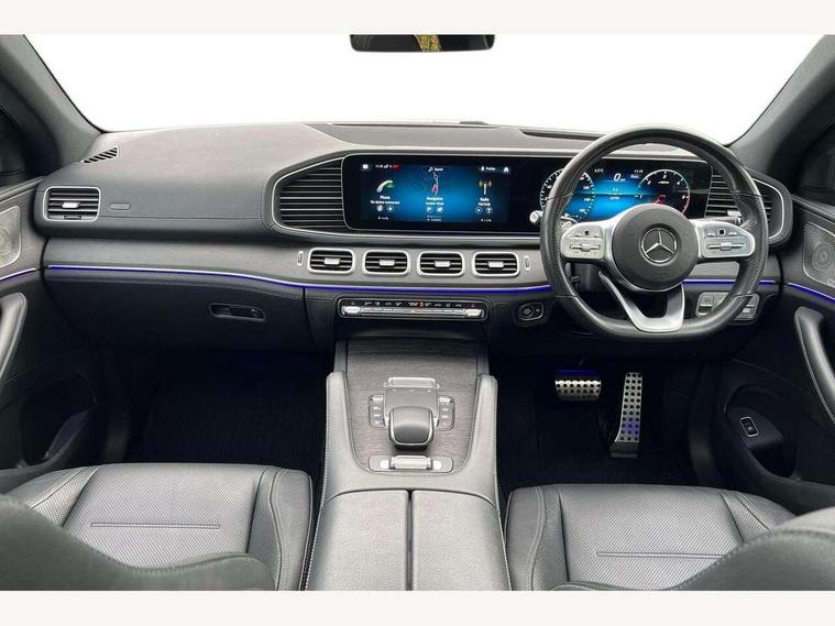 Attention assist, Cockpit display 12.3" widescreen digital instrument cluster, Crosswind Assist, Cruise control, Direct steer speed sensitive steering, DYNAMIC SELECT with a choice of driving modes (ECO, Comfort, Sport and Individual), Easy-pack tailgate - Powered opening/closing automatically, ECO start/stop function, Head up Display, Lane keeping assistant (LKA), MBUX augmented reality for navigation, Mercedes me connect including emergency call system, accident recovery, breakdown and maintenance management, Outside temperature display, rear seatbelt status indicator, Parking pilot with 360 degree camera, Reversing camera, Service indicator (ASSYST), Smartphone integration with Apple CarPlay and Android auto, Sports direct steer system with speed sensitive power assistance, Traffic Sign Assist, Traffic sign recognition including wrong way warning function and display of posted speed limits in the instrument cluster, Wireless charging system for mobile devices, 4MATIC permanent four wheel drive, 85 litre fuel tank, 9G TRONIC automatic transmission with steering column gear selector, DIRECT SELECT steering wheel gearshift paddles, Airmatic air suspension with adaptive damping system, Charging cable for household sock (mode 2) - 8m, 8A, Charging cable for wallbox and public charging stations (mode 3) - 8m, 16A, Diesel particulate filter (DPF), Bluetooth interface for hands free and audio streaming, Burmester surround sound system, DAB Digital radio, Hard disk navigation with MBUX multimedia system, Adaptive brake lights, Adaptive high beam assist plus, Aluminium look, illuminated running boards with rubber studs, AMG bodystyling front and rear bumpers, Body colour door mirrors, Body coloured bumpers, Electric panoramic sunroof with sunblind, Electric windows with one touch opening/closing and obstruction sensors, Exhaust system - twin pipe with two integrated chrome tailpipe trims, Front and rear underbody protection with chrome look finish, LED tail lamp, Magic vision control with adaptive windscreen wiper system, Multi beam LED headlights, Privacy glass - heat insulating dark tinted glass, Radiator grille with integrated star and single louvre in matt iridium silver with chrome trim, Rain sensing windscreen wipers, Rear wash/wipe, Top surround of side windows in polished aluminium, 2 cup holders in front and rear, 2 rear head restraints, 3 spoke AMG multifunction steering wheel with touch control buttons, trimmed in black nappa leather with flattened bottom section, 4 way adjustable front head restraints and 2 way rear head restraints, 40:20:40 split folding rear seats, AMG floor mats with AMG lettering, Artico man-made leather upper dash trim, Automatic child seat recognition sensor, Climatised front seats, Courtesy lights in rear grab handles with reading light functionality, Driver and front passenger cup holders temperature controller, Electric adjust front headrests, Electrically adjustable front seats, Electrically height and reach adjustable steering column with memory, Folding rear armrest, Front centre armrest with stowage compartment and illuminated grab handles, Glasses compartment in overhead control panel, Glove compartment - lockable, air conditioned and illuminated, Heated front seats, Illuminated stainless steel door sill panels with Mercedes-Benz lettering, Interior lighting - 64 colour Ambient lighting, Luggage compartment cover, Nappa leather upholstery, Sports pedals with stainless steel surfaces and rubber studs, Sunvisors with illuminated vanity mirrors, Thermotronic automatic 4 zone climate control, Touchpad, Two (type C) USB ports in centre console, Acoustic comfort pack - GLE Coupe, Driving assistance pack - GLE Coupe, Energizing comfort package - GLE Coupe, Interior chrome package - GLE, KEYLESS-GO Comfort package - GLE Coupe, Memory package - GLE Coupe, Mirror package - GLE Coupe, Parking package - GLE Coupe, 3x3 point rear seatbelts, Active bonnet, Active braking assist, Airbags - windowbags, Anti-lock braking system (ABS), Child proof door locks, Downhill speed regulation (DSR) with switch and variable speed control, Driver/front passenger airbag, Drivers knee airbag, Electronic four wheel traction control, Electronic parking brake, Electronic stability programme with acceleration skid control, First aid kit, warning triangle and high visibility jacket, Front side airbags, Hill hold function, Hill start assist, ISOFIX child seat attachment points two outer rear seats, Perforated front brake discs and brake calipers with Mercedes-Benz lettering, Pre-Safe anticipatory safety system, Tyre pressure monitoring system, Alarm system/interior protection/immobiliser, Chrome surround in electric key, Remote central locking, Urban guard vehicle protection, Dashboard and door, anthracite open pore oak wood trim, 22" AMG 5 twin spoke tremolite grey with high sheen finish light alloy wheels, Summer tyres with noise reducing absorber, TIREFIT with tyre inflation compressor,