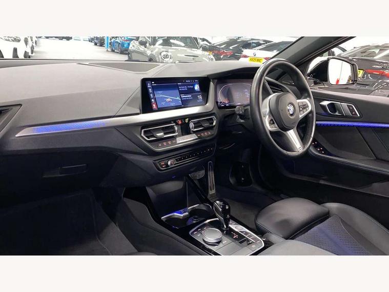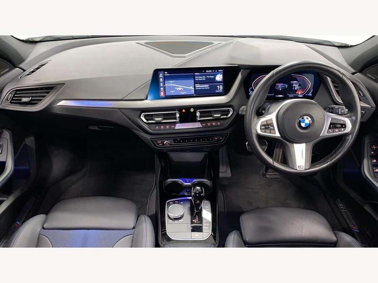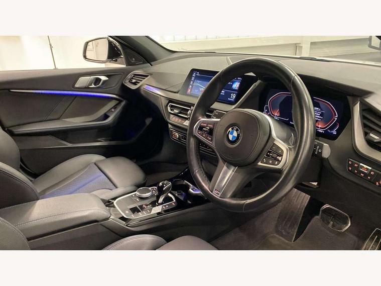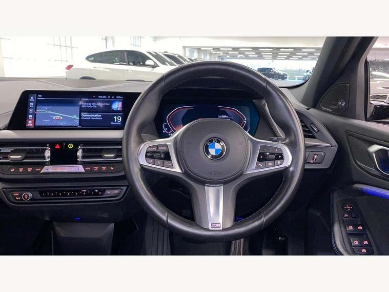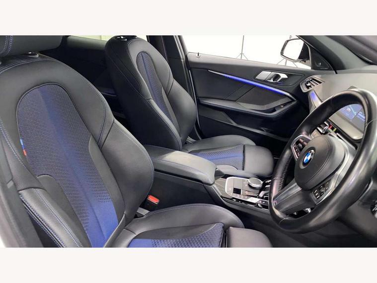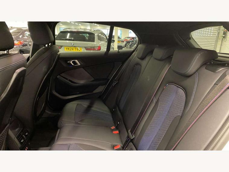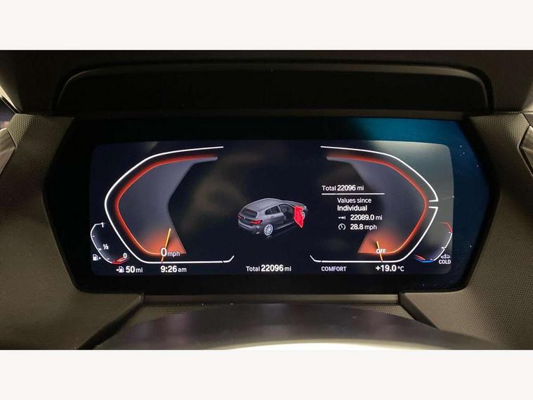 Active guard plus, Attentiveness assist, BMW ConnectedDrive online services, BMW Teleservices, Check Control warning system for monitoring of lights and door/luggage compartment open warning, Cruise control with brake assist, Eco pro mode, Front axle single joint with specific axle kinematics to minimise drive influences on steering + provide increased rigidity agile driving behaviour, Integrated owners handbook, Lane departure warning system, Oil sensor for level and grade, On board computer, Optimum shift indicator, Personal Profile, Pull away assistant, Rigidly mounted rear subframe - Multi link construction with separate spring / damper configuration and excellent driving characteristics, Speed limit Info including no-overtaking indicator, Speed limiter, Aluminium lightweight construction, Anti roll bar front and rear, Balancer shaft, Double VANOS twin scroll turbocharging system, Drive Performance Control, Electronic differential lock, High precision injection, M sport suspension, Petrol Particulate Filter, Twin tube gas filled shock absorbers with degressive characteristic curve, VALVETRONIC engine management, DAB Digital radio, Auto dimming rear view mirror, Automatic headlight beam throw control, Automatic windscreen wipers and automatic headlight, Body colour door handles, Body colour mirror caps, Body colour roof trims, Chrome 'M' logo side designation, Chrome exhaust twin tailpipes round 90mm in left, Chrome kidney grille frame with Satin Aluminium struts, Direction indicator side lights in exterior mirrors, Fading support, Folding side mirrors with auto dimming/folding wing mirrors with auto dimming, Follow me home headlights, Front and rear bumper system with replaceable deformation elements, Front and rear electric windows with open and close fingertip control, anti trap facility and comfort closing, Front door sill finishers in black plastic with M designation in metallic look, Green tinted heat protection glazing, Heated, electrically adjustable exterior mirror aspheric on driver side, convex on passenger side, High gloss shadowline window frame, Recess cover mirror frames and B/C pillar embelisher trim, High level third brake light, Integrated front windscreen with washer jets, LED daytime running lights, LED eyebrow turn indicators, LED front fog lights, LED Headlights, Lightweight engineering, Matt black air guide grilles, Matt black wheel arch trim, Model designation on electric bootlid, Nearside reverse light in rear light cluster, Preparation for high beam assistant, Rear fog lights, Rear side wing doors, Rear window wiper, Shark fin antenna, Trailer stabilisation logic, Visible VIN plate, Welcome lighting, 12V power socket in front centre console with blanking plug, 3 rear seat head restraints, 3 seat bench in 2nd row, 3 spoke sports leather steering wheel with black leather and stitching, pearl chrome decorative finish, specific M Badge, Anthracite headlining, Black boot net with lashing eyes, Cargo function on 2nd seat row, Child seat ISOFIX attachment for two outer rear seats and front passenger seat with anchorage points, Conditioned based service, Driver and front passenger seat heating, Folding rear clothes hook, Four grab handles integrated in roof lining, Front and rear door pockets with bottle holders, Front and rear side armrest integrated into door trim, Front armrest, Front sports seats, Glove compartment, Height adjustable front head restraints, Luggage compartment for bag hooks on left and right, foldable luggage compartment liner and four lashing eyelets, Manual adjust steering wheel, Multi-function controls for steering wheel, Single front passenger seat, Storage compartment in centre console, Sun visors with vanity mirrors and insert tab, Two front centre console cupholders, Two zone automatic air conditioning, Velour floor mats, Additional interior lighting pack - 1 Series, BMW live cockpit professional pack- 1 Series, Connected pack professional - 1 Series, Interior lights pack - 1 Series, M Sport exterior styling aerodynamics pack - 1 Series, 2 tone horn, 3 point seatbelts on all seats, front pyrotechnic belt tensioners, stopper and belt force limiters, rear coded belt buckles, Airbags - Front driver/passenger, front and rear curtain head protection, front side, manual deactivation of front passenger airbag, Anti lock braking system (ABS) with brake assist, BMW emergency call, Brake drying, Braking readiness, Child proof locking system in rear door, City braking function, Comfort modes, Cornering brake control, Crash sensor activating central locking release, hazard warning lights, fuel cut off, interior lighting + activation of safety battery terminal clamp, Driver and front passenger seat belt security check, Dynamic stability control + (DSC+), Dynamic Traction Control - DTC, Electrically operated hand brake including automatic hold function, Front and rear disc brakes, Seatbelt warning, Side impact protection, Tyre pressure monitoring system, Warning triangle and first aid kit, Central locking switch for all doors, fuel filler cap and luggage compartment, Deadlocking function system to all doors, Drive away locking system on all doors and luggage compartment with de-activated in iDrive settings, Locking wheel bolts, Remote control with integrated key with High-gloss Black inlay and M designation and 1 button for open/ close lock, window, open luggage compartment, Start/stop button illuminated in centre console with keyless engine start and auto start stop deactivation button, Thatcham Cat.1 alarm and immobiliser, Wheel slip limitation close to the actuator (ARB), Contrast stitching on instrument panel, Electrically powered 12V compressor, Reduced rolling resistance tyres,