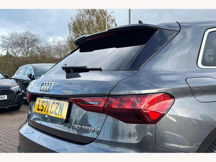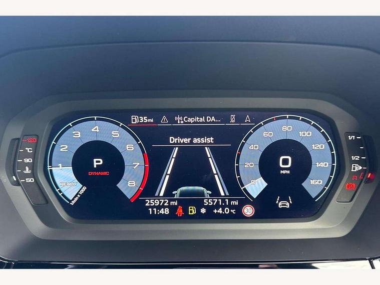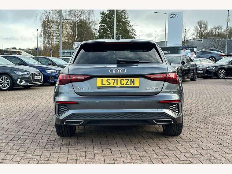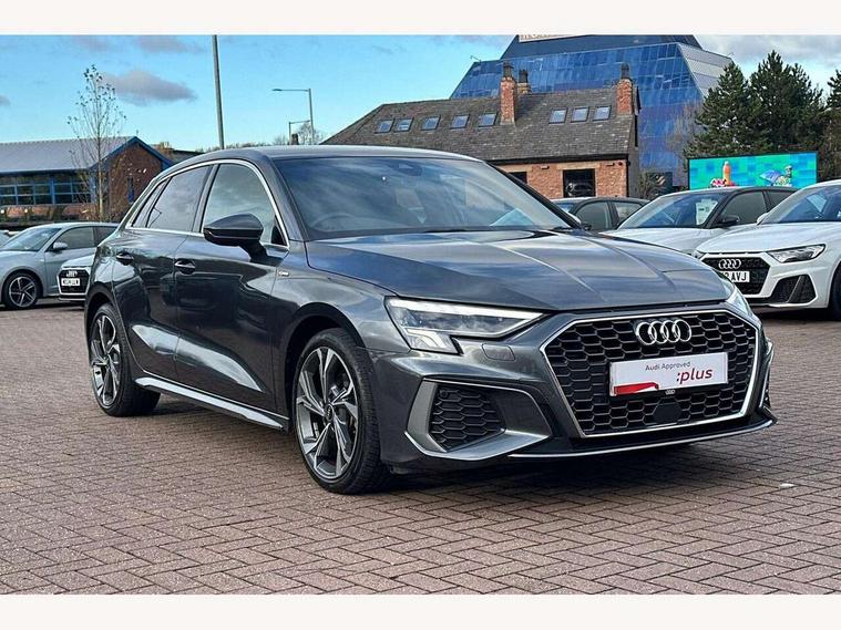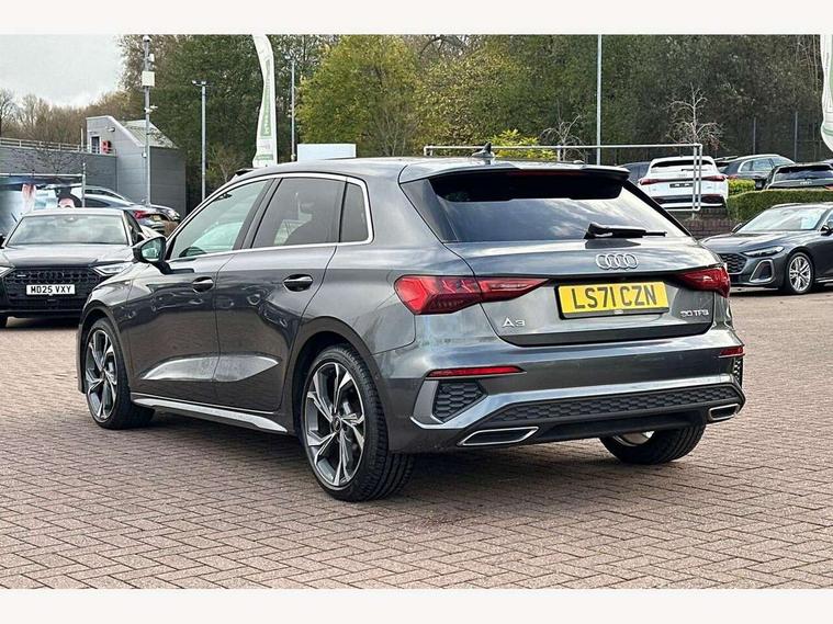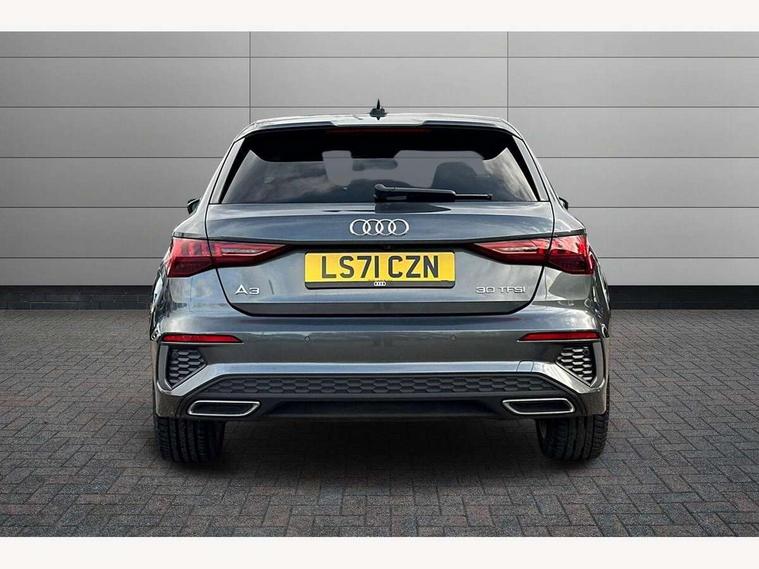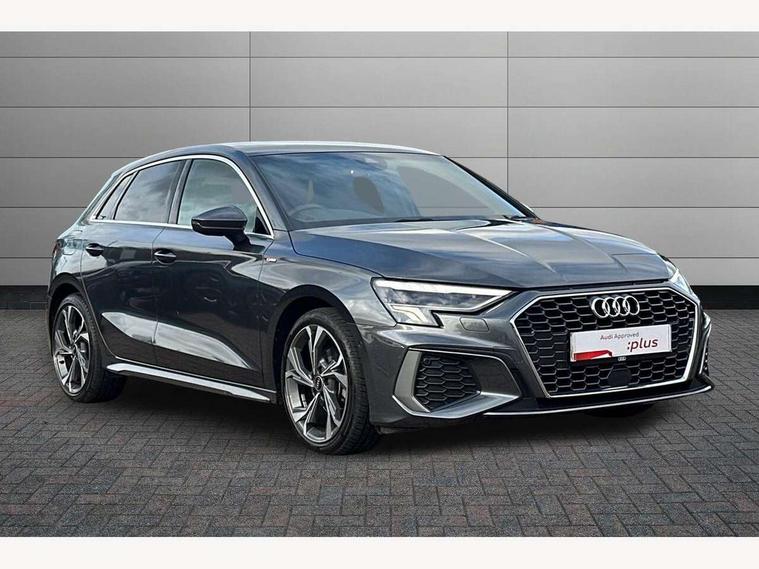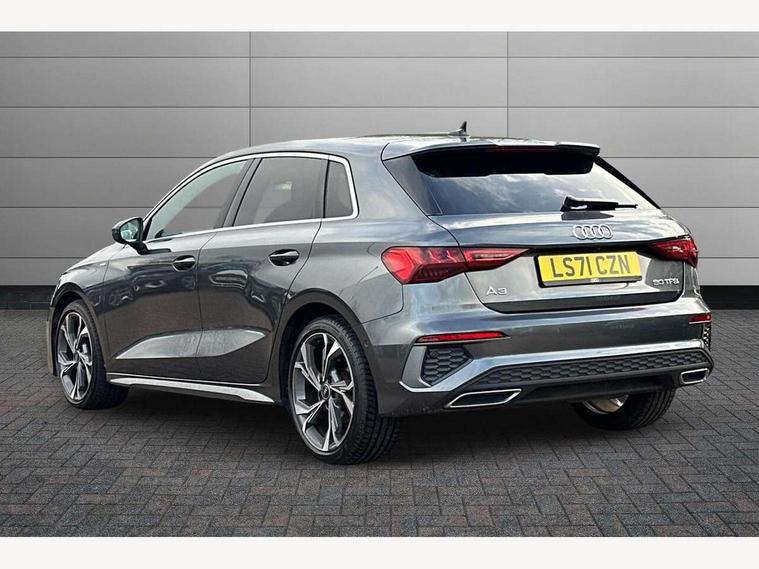 Audi connect emergency call and service, Audi drive select (Auto, Comfort, Dynamic and Individual), Audi smartphone interface, Audi Virtual Cockpit - 10.25" digital and colour instrument cluster, Automatic start/stop system with recuperation, Bluetooth interface, Collision avoidance assistant, Electromechanical power speed sensitive steering, Lane departure warning system, MMI Navigation Plus with high resolution 10.1" colour touch screen display, Service indicator, Trip computer, Voice control system with natural language interaction, 2xUSB-C connection with data and charging functions, 6 passive loudspeakers, DAB Digital radio, 3rd brake light, Acoustic glass windscreen, Aluminium window trim, Auto dimming frameless rear view mirror, Electrically adjustable/heated/folding/auto dimming door mirrors with integrated LED indications + kerb view function for passenger side, Front electric windows, Illuminated aluminium inserts front door sills with S logo, LED daytime running lights, LED headlights with LED rear lights and dynamic rear indicators, Light and rain sensors, Privacy glass - dark tinted rear window, rear door and side windows, Rear electric windows, Rear side air outlets in grained matt black, Rear wiper, S line bumpers, S roof spoiler, 12V socket and storage compartment in front centre console, 40/20/40 split folding rear seat bench with cupholder, Black cloth headlining, Dual zone electronic climate control, Front and rear centre armrest in leather, Front and rear headrests, Front/rear floor mats, Height and reach adjustable steering wheel, Interior lighting - glove compartment light and right hand side, Luggage compartment floor covering, Manual boot compartment lid, Manually adjustable front seats, Seat side bolsters, Stainless steel pedals and front footrest, Twin leather upholstery with front sports seats S embossed logo, Aluminium interior elements pack - A3 Sportback, S line styling pack - A3 Sportback, 3x3 point rear seat belts, Driver and front passenger airbag with passenger airbag deactivation, Electronic Stabilisation Control (ESC) including ABS, ASR and EDL, First aid kit with warning triangle and 2 safety vests, Front side airbags with head airbags and interaction airbag, Hill hold assist, Pre-sense front with pedestrian and cyclist detection, Seatbelt monitoring, Tyre pressure loss indicator, Anti theft alarm, Anti-theft wheel bolts, Electronically operated child lock, Immobiliser, Remote control central locking, Accent surfaces in the dashboard and centre console in platinum grey silk effect paint finish, Dark spectrum aluminium inlays,