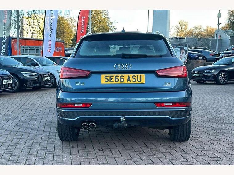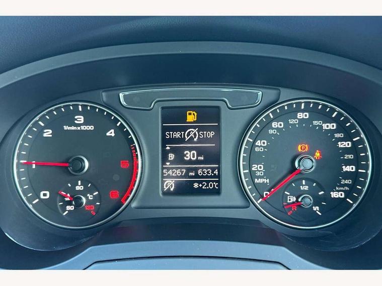 6.5" colour display screen, Audi drive select, Cruise control, Low washer fluid indicator, MMI - Multi Media Interface control system, On board computer, PAS, Remote electric boot opening/closing, Service interval indicator, Voice control system, Diesel particulate filter, Audi music interface, DAB digital radio module, Acoustic windscreen, Aluminium window surround, Auto dimming rear view mirror, Body colour door mirrors, Body coloured bumpers, Chrome exhaust tailpipe, Chrome fog light surround, Chrome grille, Coming home function, Door mirror integrated indicators, Front and rear electric windows, Heated windscreen washer jets, LED daytime running lights, LED headlights with headlight washers, LED rear lights, Light and rain sensor for auto activation of lights and windscreen wipers, Loading sill protector in stainless steel, Rear wiper, S Line body styling, Sunband for windscreen, Towbar preparation, 12V socket in rear centre console, Aluminium door sill trims, Black cloth headlining, Dual zone climate control, Electric front lumbar adjustment, Front and rear headrests, Front and rear velour floor mats, Front centre armrest with storage compartment and angle adjustment, Front sports seats, Height/reach adjust steering wheel, ISOFIX on front passenger and rear outer seats, Jack and tool kit, Perforated leather gearknob, Retractable luggage cover, Split fold rear seat, Under floor storage in luggage area, 3x3 point rear seatbelts, ABS+Electronic Brake force Distribution, Curtain airbags, Driver and passenger airbags, Driver and passenger side airbags, EDL + ASR, Electrically operated child locks on rear doors, Electromechanical parking brake, ESP, First aid kit, Front passenger airbag deactivation, Seatbelt warning light, Tyre pressure monitoring system, Warning triangle, Locking wheel bolts, Remote central locking, Thatcham category 1 alarm + immobiliser, Matt brushed aluminium fascia and door trim inlays,