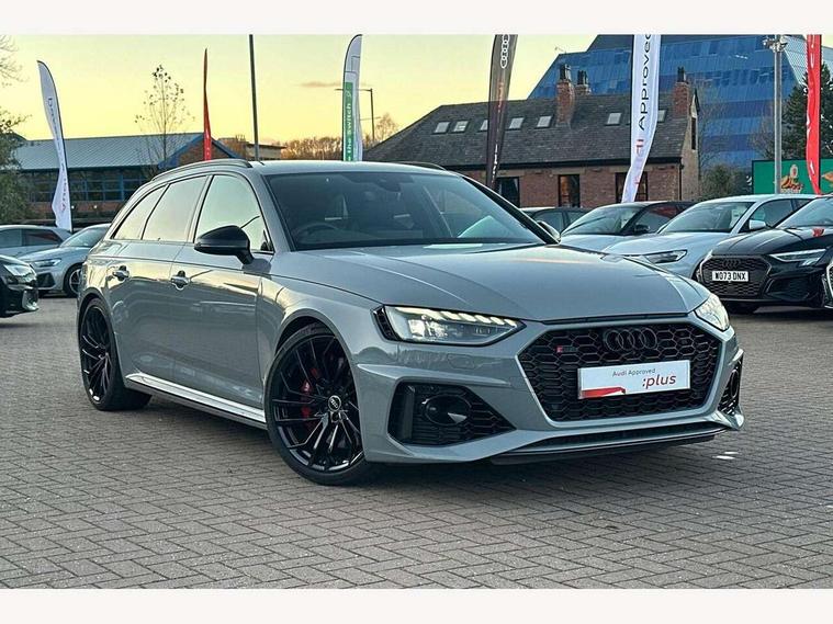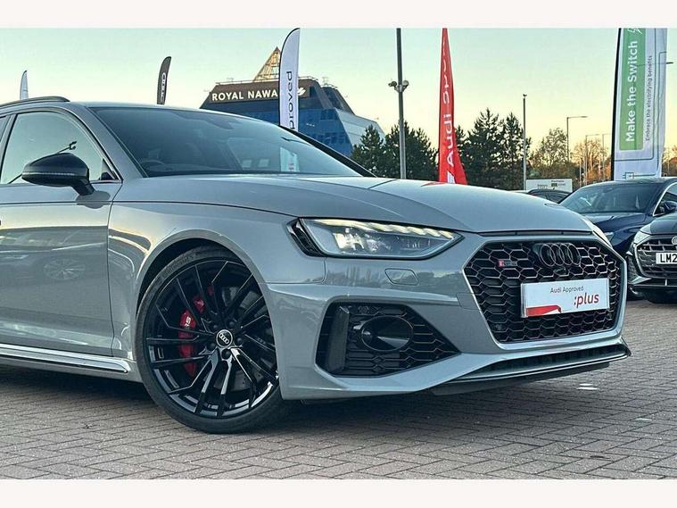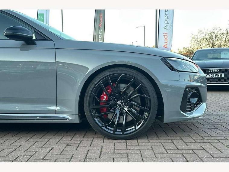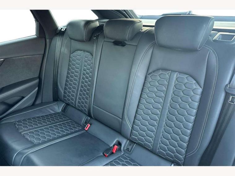 7" Colour driver information system, Amazon alexa Integration, Audi connect safety and service (e-call), Audi drive select, Audi side assist, Audi smartphone interface, Audi virtual cockpit with RS specific display, Automatic start-stop system with coasting functionality and efficiency programme, Bluetooth interface, Electromechanical power steering, Email, calendar and text messages displayed via MMI, MMI Navigation plus with MMI touch includes 10.1" high resolution colour MMI display, 3D map, Power opening/closing tailgate, Service interval indicator, Voice control system, 58 Litre fuel tank, Quattro sports differential, 2 USB charging ports, Audi sound system, DAB digital radio module, 3rd brake light, Acoustic windscreen, Audi Beam uses LEDs to project the RS logo onto ground as you exit your RS4, Audi matrix LED headlights with LED rear lights + dynamic front and rear indicators, Audi rings and lettering glossy black, Auto dimming rear view mirror, Automatic headlights + automatic windscreen wipers, Black roof rails, Blue tinted glass, Body colour door handles, Electric front windows, Electric rear windows, Electrically folding auto dimming/adjustable/heated door mirrors with memory function, LED side indicators and kerb view function for passenger side, Flared front and rear wheel arches, Front bumper with enlarged air inlets, Headlight range control, High beam assistant, High gloss black door mirror housing, High gloss black triangular aperture at rear door, Honeycomb design grille with quattro logo, Lateral air inlets next to front headlights, LED daytime running lights, LED indicators in door mirrors, Privacy glass with rear acoustic glazing, Rain and light sensors, Rear side wing doors, Rear wiper, Roof spoiler, RS 4 badges on grille and rear, RS4 dual branch chrome tailpipes with left and right oval pipes, 3 seat bench in 2nd row, 3 spoke multifunction plus leather steering wheel with heating and RS badging, 40/20/40 split folding rear seats with rear centre armrest, Black cloth headlining, Deluxe 3 zone electronic climate control, Electric load area cover, Electrically adjustable front seats, Fine nappa leather with contrast honey comb stitching + super sports seats with pneumatic massage function, Front centre armrest, Front headrests, Front/rear floor mats, Heated front seats, Height and reach adjustable steering wheel with full size airbag, Illuminated door sill trims with RS4 logo, ISOFIX child seat mounting and top tether, Leather door armrests and knee pad, Luggage compartment carpet, Perforated leather gear lever knob with contrast stitching, Rear headrests, Retractable load area cover, Single front passenger seat, Stainless steel pedals, Sunvisors with vanity mirrors, Carbon black styling pack - RS4, LED Interior light pack - RS4, Non Smokers pack, 3 point seatbelts on all rear seats, Adaptive driver and front passenger airbags, Electromechanical parking brake, Electronic stabilisation control including ABS, ASR and EDL, Enhanced braking system, Front head airbags, Front seatbelt pretensioners + load limiters, Front side airbags, Hill hold assist, Manual child lock in rear doors, Multi-Collision braking, Pop-up bonnet for pedestrian protection, Pre sense city, Rear side airbags, Seatbelt monitoring, Traction control, Tyre pressure warning, Variable restraint system, Warning triangle and first aid kit, Anti theft alarm, Anti-theft wheel bolts, Immobiliser, Keyless Go, Remote central locking, Remote control key with RS emblem, Carbon twill inlays, 20" 5 segment spoke evo design glossy black sport alloy wheels, Tool kit, Tyre repair kit,