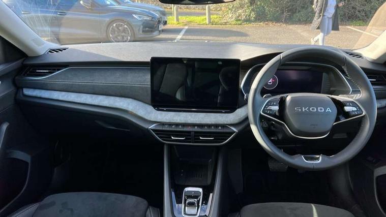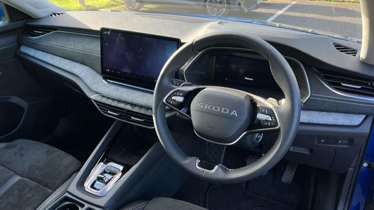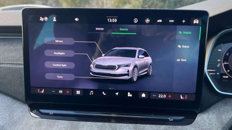 1x USB Typc C port in rear view mirror, 4x USB Type C ports - 2x in front centre console and 2x in rear (45W), Drive mode selection, Driver fatigue sensor, eCall emergency system, Electro-mechanical power steering, Front assist system, Traffic jam assist, Traffic sign recognition, Turn Assist, Virtual Cockpit - 10.25" digital display, Voice control system, Wireless charging (15W) with cooling function, Wireless SmartLink for Apple CarPlay and Android Auto, 13" touchscreen display with navigation, DAB Digital radio, Aero front windscreen wipers with intermittent function, Auto dimming rear view mirror, Body colour bumpers, Body colour door mirrors and handles, Chrome grille surround, Chrome roof rails, Chrome strip in lower front bumper, Chrome window surrounds, Electric front and rear windows, Heated rear windscreen, High level third brake light, Ice scraper in fuel cap, LED daytime running lights, LED Headlights, Logo projection in front doors, Rain and light sensors, Rear fog light on one side, Rear privacy glass, Rear side wing doors, Rear spoiler, Rear window wiper, 12 volt socket in boot, 3 rear headrests, 3 seat bench in 2nd row, 4 foldable roof handles, Front head restraints, Heated front seats, Illuminated glovebox, Interior door handles in dark chrome, Jumbo Box storage, Luggage compartment lighting x2 lights, Mechanical rear seat release from boot, Single front passenger seat, Steering wheel in black leather with black stitching, Storage compartments in left and right of boot, Sun visors with mirrors, Sunglasses storage, Ticket holder, Umbrella in door panel, Unsplit rear bench seat, split folding backrest with centre armrest with cupholder, Comfort package - Octavia Estate, Simply clever package premium - Octavia, 3x3 point rear seat belts, Alarm with interior monitoring, tilt sensor and back up horn, Curtain airbags and front side airbags, Driver and front passenger airbags, Drivers knee airbag, Electronic parking brake, ESC including ABS, EBV, MSR, ASR, EDS, HBA, DSR, Front central airbag, Hill hold assist, ISOFIX on front passenger seat and outer rear seats, Passenger airbag deactivate switch, Three point seat belts in front and rear, Two tone horn, Tyre pressure monitor, Visual and acoustic seat belt reminder, Warning reflectors in front door, Anti-theft wheel bolts, Keyless start/stop, Remote central locking, Chrome air vent surrounds,