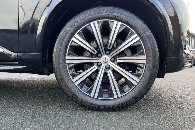 12.3" Active TFT crystal driver's instrument display, 9" centre console portrait touch screen, Adjustable steering wheel force, Bluetooth hands free telephone connection, Drive mode settings, Driver alert control with lane keeping aid, Driver assistance (pilot assist and adaptive cruise control), Driver awareness - Blind spot information system with steer assist, cross traffic alert with autobrake and rear collision warning and mitigation, Emergency call service, Front and rear park assist, Handsfree power tailgate opening and closing, Oncoming Lane Mitigation, Remote engine start, Sensus navigation with European mapping and traffic information, Service interval indicator, Speed limiter, Speed sensitive steering, Trip computer, Voice activated control for key functions, Volvo on call, 8 speed automatic transmission with start/stop + manual change functions, All wheel drive system, Touring chassis, DAB Radio (Digital Audio Broadcasting), Steering wheel remote infotainment controls, Adaptive brake lights with high level LED brake lights, Auto dimming interior + exterior mirrors, Automatic headlight levelling system, Automatic LED Headlights + Active high beam incorporating daytime running lights, Body colour bumpers, Chrome Front and Rear Bumper plus Lower Side Mouldings, Chrome window surround, Colour coordinated auto folding and heated power door mirrors, Dual integrated exhaust pipes, Front and rear power windows, Heated washer nozzles, Home safe and approach lighting, Integrated roof rails in silver, Matt silver front grille with chrome detailing, Puddle lights, Rain sensor with automatic windscreen wiper activation, Rear side wing doors, Rear wash/wipe with intermittent wipe setting, Roof antenna, Roof spoiler, Visible VIN plate, 12V socket front tunnel console, rear passenger compartment and cargo area, 2 seat bench in 3rd row, 3 seat bench in 2nd row, A-pillar parking ticket holder, Ambient door and instrument panel lighting, B Pillar ventilation, Bright metal luggage threshold, Cargo divider with grocery bag holder, Centre console cupholders and storage, Driver's side lower dashboard storage compartment, Front and rear door pocket and front cupholder illumination, Front footwell and side step illumination, Front headrests, Front seat cushion extensions, Heated front seats, Height/reach adjustable steering column, Illuminated front and rear tread plates, Illuminated luggage compartment, Illuminated tailgate, Illuminated vanity mirrors + ticket holder, Illumination lockable glovebox compartment, Integrated sun curtains in rear doors, Load protection net, Luxury floor mats, Multicolour theatre lighting, Orrefors Crystal gear lever knob, Outboard armrest with cupholder and storage for third row passengers, Power driver seat with multi directional lumbar support and memory for seat and exterior mirrors, Power folding 2nd row headrests, Power passenger seat with multi directional lumbar support and memory, Rear footwell and side step illumination, Rear headrests, Semi automatic load cover, Single front passenger seat, Underfloor cargo storage, 7 three point seatbelts, City safety includes pedestrian, cyclist and large animal detection and front collision warning with full auto brake, Drivers knee airbag, Dual stage driver/passenger airbags, First aid kit, Front seats SIPS airbags, Hill descent control, Hill start assist, IC (Inflatable Curtains) - Full Length, Passenger airbag cut-off switch, Power parking brake with auto hold function, Road sign information display, Run off Road Mitigation, Run off Road Protection, Seatbelt reminder and pretensioners for all seats, SIPS (Side Impact Protection System), Slippery road and hazard light alert, Stability and Traction Control with Spin control, Engine Drag Control and Corner Traction Control, Tyre pressure monitoring system, Vehicle deceleration control with Anti-lock Brake System, Electronic Brake Distribution and Emergency Brake Assist, Warning triangle, WHIPS whiplash protection system - front, Anti-theft alarm including immobiliser/volume sensor + level sensor, Care key with user defined top speed, Key integrated remote control central locking + fuel flap with deadlocking system and auto open/close power windows, Keyless drive (includes keyless entry and keyless start) with remote tag, Locking wheel nuts, Private locking for glovebox and tailgate, Tailored instrument panel and door tops, Tempa spare wheel and jack,