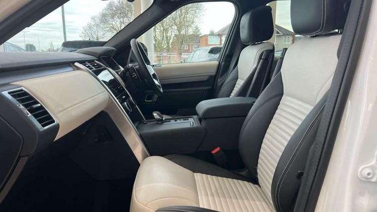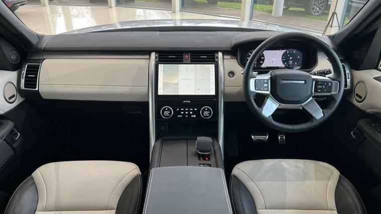11.4" touchscreen, 3D surround camera, Adaptive cruise control, Android Auto, Apple car play, Blind spot assist, Driver condition monitor, Electric power assisted steering (EPAS), Emergency services call system, Front and rear parking aid, Interactive driver display, Lane keep assist, Power inner tailgate, Power tailgate/boot lid, Push button start, Rear collision monitor, Rear traffic monitor, Remote, Remote boot release, Service interval indicator, Speed proportional steering, Sportshift selector, Stop/start system, Traffic sign recognition with adaptive speed limiter, Trip computer, Wade Sensing, Adaptive dynamics, Dynamic stability control, Electronic air suspension, Front axle open differential, Digital Audio Broadcast radio-DAB, Dynamic volume control, Pivi pro connected, USB/aux input socket, Acoustic laminated windscreen, Animated directional indicators, Auto dimming interior rear view mirror, Auto high beam assist, Automatic headlight levelling, Automatic headlights, Body colour bumpers, Body colour door handles, Centre high mounted stop light, D300 badge, Electric heated/power fold memory door mirrors with approach lights and auto dimming driver side, Electric windows with one touch open/close and anti-trap, Heated rear window, Heated windscreen, LED darkend tail lights, LED headlights with signature DRL, Narvik black Discovery script, Privacy glass, Puddle lights, Rain sensing windscreen wipers, Rear fog lights, Rear side wing doors, Rear wash/wipe, Trailer stability assist, Variable intermittent wiper, 12V power sockets, 12V USB charging socket in loadspace, 18 way heated electric memory driver seats with captains armrest + manual height adjust headrest + 4way power lumbar support, 2 seat bench in 3rd row, 3 seat bench in 2nd row, Central hinged twin lidded storage, Ebony morzine headlining, Electric adjustable steering column, First and second row door bins, Footwell lights, Front and rear 12V with front USB, Front passenger seat isofix location point, In-facia storage, Isofix child seat preparation for front passenger seat, Loadspace cover, Loadspace Hook, Loadspace light, Lockable glovebox, Lower centre console storage, Luggage tie downs in loadspace, Multi function steering wheel, Overhead lighting console, Premium carpet mats, Premium non-leather steering wheel, Rear ISOFIX, Shopping bag hook, Single front passenger seat, Storage glovebox, Sunvisors with illuminated vanity mirrors, Third row storage, Treadplates with metal inserts, Twin front cupholders with cover, USB with 12V socket in centre console, Black exterior pack - Discovery Dynamic SE/HSE, Online pack with data plan - Discovery, 3x3 point rear seatbelts, Anti-lock braking system (ABS), Brake pre-fill technology, Cornering brake control, Curtain airbags, Customer configurable autolock, Driver and passenger airbags, EBD - Electronic brakeforce distribution, Electronic traction control, Emergency brake assist, Emergency braking, ESP, Front side airbags, Gradient acceleration control, Hill descent control, Hill launch assist, Power operated child locks, Rear airbags, Roll stability control, Seat belt reminder, Torque vectoring brake, Tyre pressure monitoring system, Immobiliser, Intrusion sensor, Keyless entry, Locking wheel nuts, Remote central locking, All terrain tyres,
