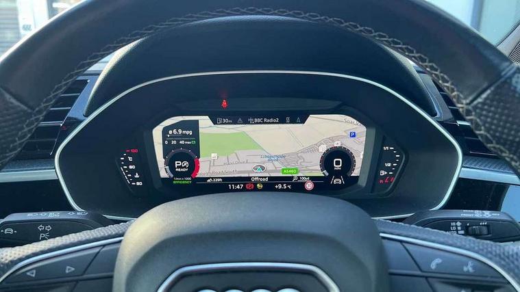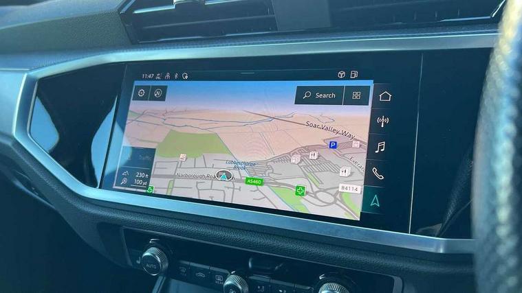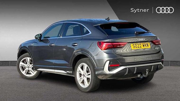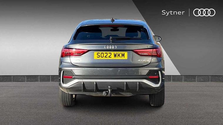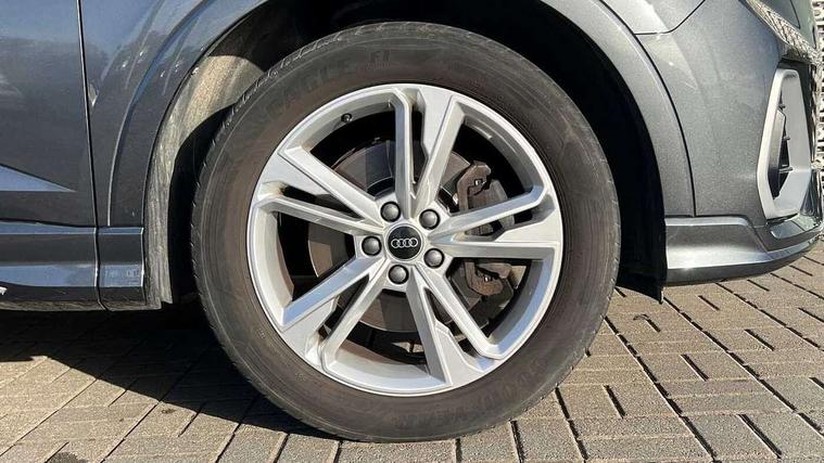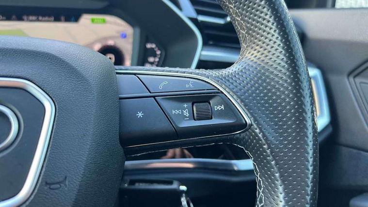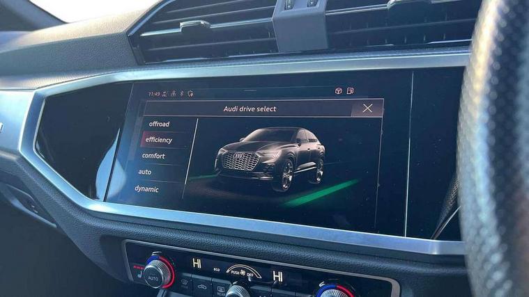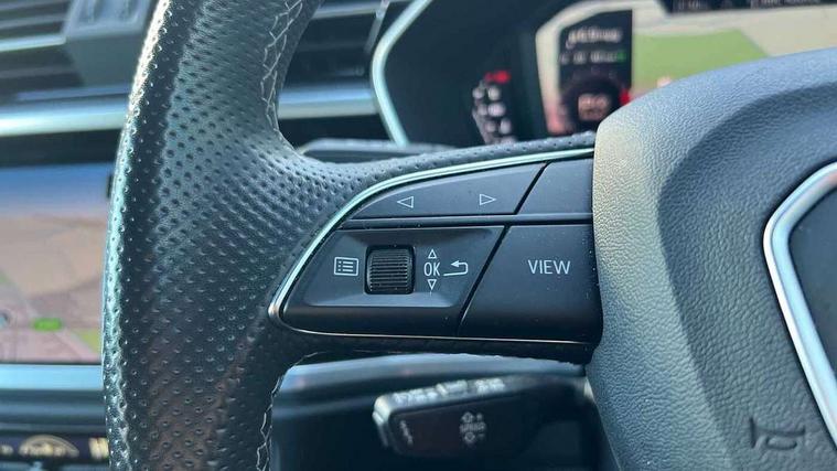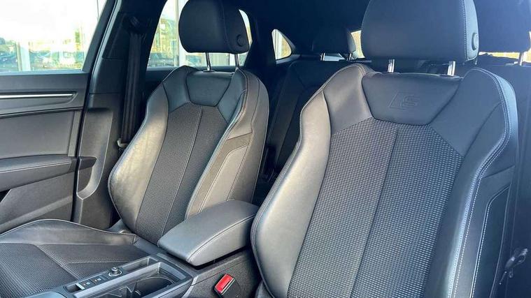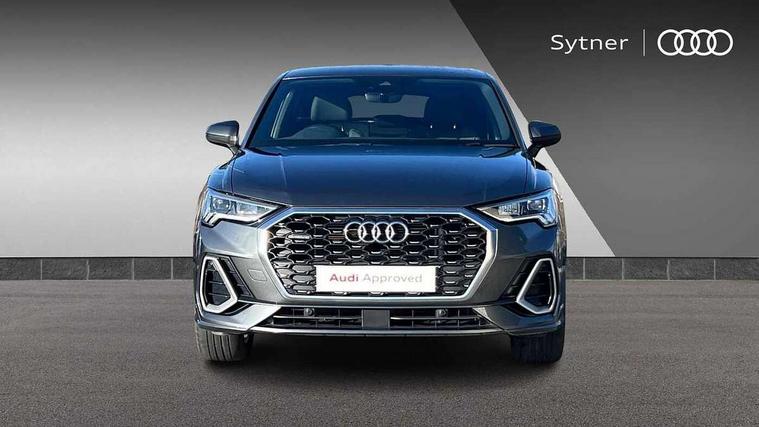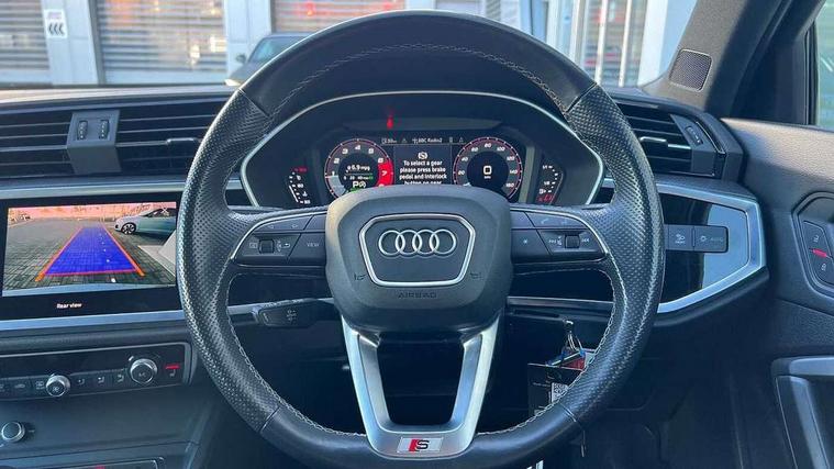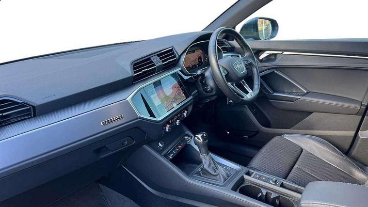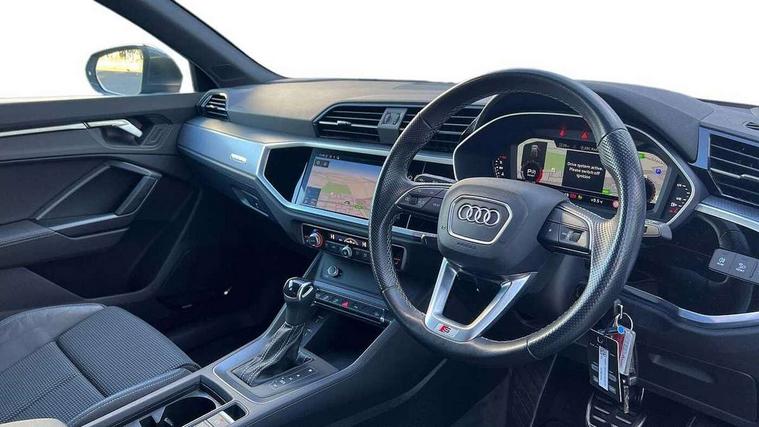 Audi drive select, Audi lane departure warning, Audi smartphone interface includes wireless Apple carplay/Android Auto, Audi Virtual Cockpit - 10.25" display, Bluetooth interface, Camera based traffic sign recognition, Legal emergency call, MMI Navigation Plus with high resolution 10.1 inch touchscreen colour display, Power operated tailgate, Progressive steering, Service interval indicator, Start stop system with recuperation, Voice control system with natural language interaction, Sports suspension, 2 USB-C ports with charge and data functions, 6 passive loudspeakers, DAB digital radio module, Acoustic windscreen, Aluminium window trim, Auto dimming frameless rear view mirror, Diffuser grille in grained matt black, Diffuser trim in selenite silver, Electrically folding, adjustable and heated door mirrors with integrated LED side indicators and kerb view function for passenger side, Front and rear electric windows, Front fog lights, Front side air inlets in selenite silver, Front underbody protection in manhattan grey paint finish, Grille surround in aluminium silver matt, High gloss black finish B and C pillars, LED headlights with LED daytime running lights, LED rear lights, LED third brake light, Privacy glass dark tinted rear and rear-side windows (from B-pillar backwards), Radiator grille in titanium black with inlay in matt aluminium silver, Rain and light sensors, Rear side wing doors, Rear underbody protection in matt black, Rear wiper, S line badges on front wings, Side skirt insert in matt Platinium grey, Variable front intermittent wipers, 12V socket in rear centre console, 3 seat bench in 2nd row, 40:20:40 folding with manual adjustment for 60:40 forwards/backwards position and backrest angle, Adjustable rear seat bench/backrest with centre armrest and cupholder, Black cloth headlining, Dual zone electronic climate control, Front and rear black floor mats with contrast stitching, Front and rear headrests, Front and rear roof module including reading lights, Front centre armrest, Glove compartment lighting, Height and reach adjustable steering wheel, Illuminated door sill trims with S logo, ISOFIX child seat mounting for front passenger with airbag deactivation and outer rear seat including top tether attachment point for outer rear seats, Luggage compartment light right in white, Luggage compartment sill protection in stainless steel, Manual front seats with height adjustment, Perforated leather gearknob, Single front passenger seat, Stainless steel pedals, Non smoking pack - Q3, 3x3 point rear seatbelts, 6 airbags - Driver, front passenger, curtain and side windows, Audi pre-sense front with pedestrain and cyclist recognition, Electromechanical parking brake, Electronic stabilisation control including ABS, ASR and EDL, Front seatbelt reminder, Hill descent control, Hill hold assist, Manual child lock in rear doors, Pre sense basic, Seatbelt monitoring, Tyre pressure warning, Warning triangle and first aid kit, Anti theft alarm, Anti theft wheel bolts, Immobiliser, Remote central locking, Black dashboard, Dark matt brushed aluminium inlay, Detail dashboard around MMI touch colour display in glass look, black with surround in aluminium look, Leatherette door armrest,