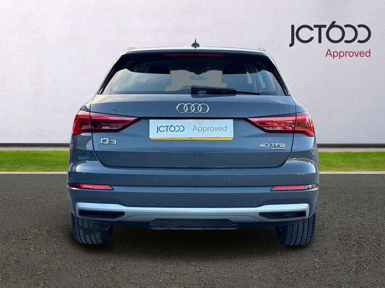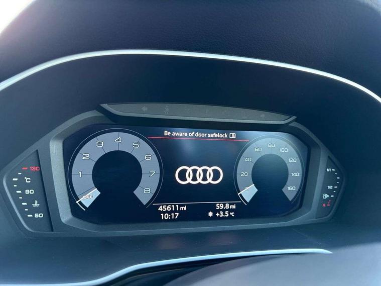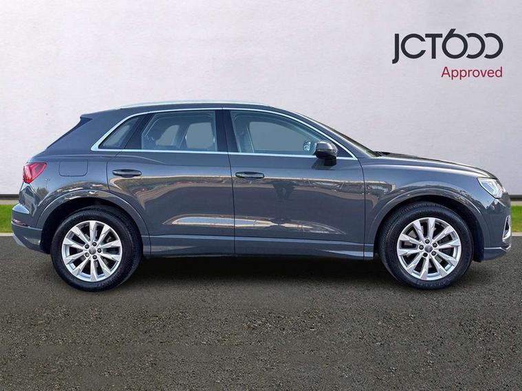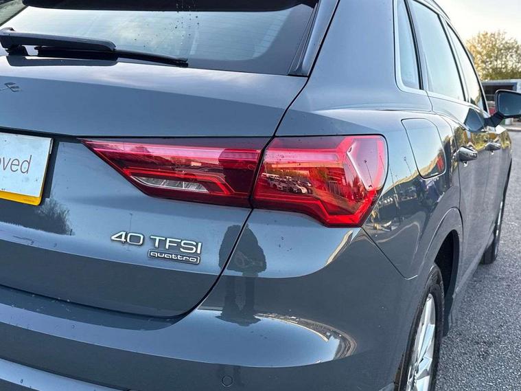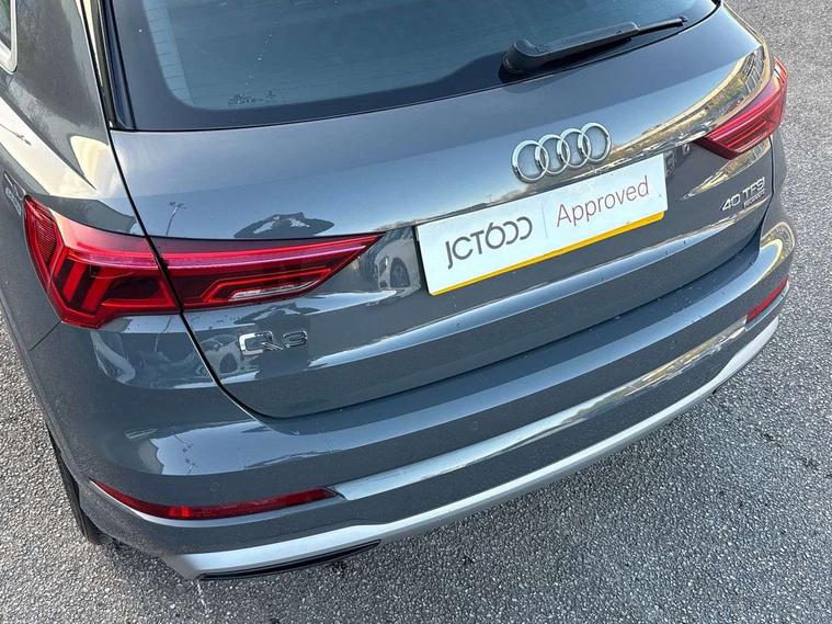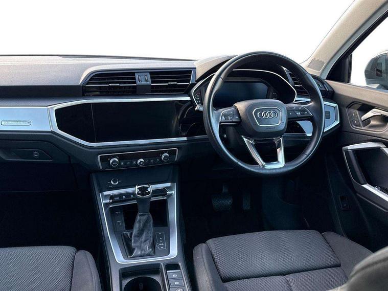 Audi connect, Audi drive select, Audi lane departure warning, Audi side assist, Audi smartphone interface, Audi Virtual Cockpit - 10.25" display, Bluetooth interface, MMI navigation plus with MMI touch, Power opening/closing tailgate, Progressive steering, Service interval indicator, Stop/start system, Voice control system, DAB digital radio module, Acoustic windscreen, Aluminium roof rails, Aluminium window trim, Auto dimming rear view mirror, Body colour door mirrors, Electrically adjustable and heated door mirrors with integrated LED side indicators, Front and rear electric windows, Front fog lights, Front side air inlets in matt selenite silver, Front spoiler in matt selenite silver, Grille vertical bars in aluminium silver/Matt, High gloss black finish B and C pillars, Rain and light sensors, Rear diffuser strip in selenite silver, Titanium black radiator grille, 12V socket in rear centre console, 40:20:40 split folding rear bench seat, Aluminium door sill trims, Dual zone climate control, Front and rear headrests, Front and rear velour floor mats, Front centre armrest with storage compartment and angle adjustment, ISOFIX child seat mounting and Top Tether with front passenger airbag deactivation, Lunar silver cloth headlining, Manual front seats with height adjustment, Stainless steel luggage compartment sill finisher, Non smoking pack - Q3, 3x3 point rear seatbelts, 6 airbags - Driver, front passenger, curtain and side windows, Audi pre-sense front with pedestrain and cyclist recognition, Electronic stabilisation control including ABS, ASR and EDL, Hill hold assist, Pre sense basic, Seatbelt monitoring, Tyre pressure warning, Warning triangle and first aid kit, Anti theft alarm, Anti theft wheel bolts, Remote central locking, MMI touch colour display in gloss black with aluminium surround,