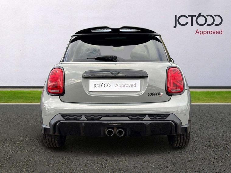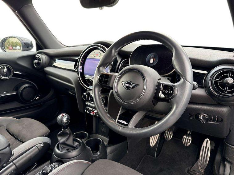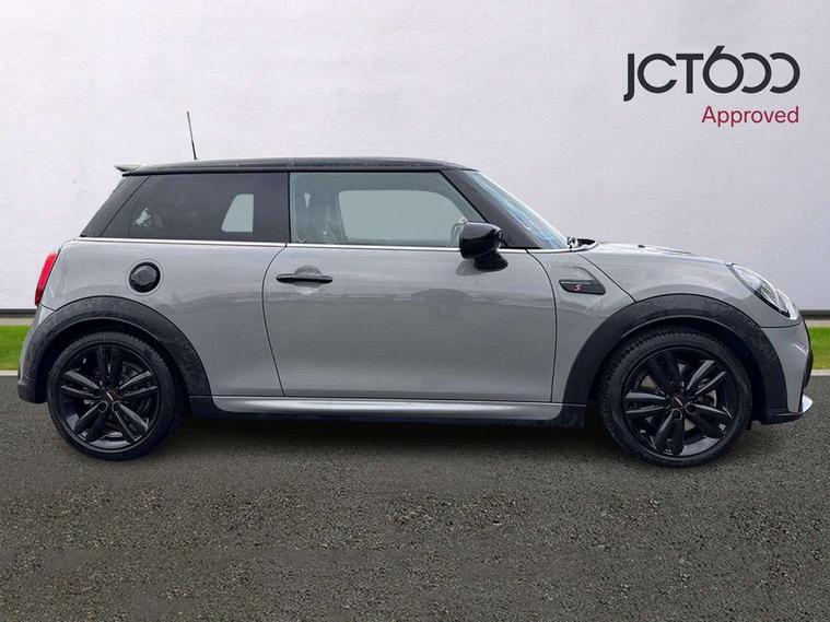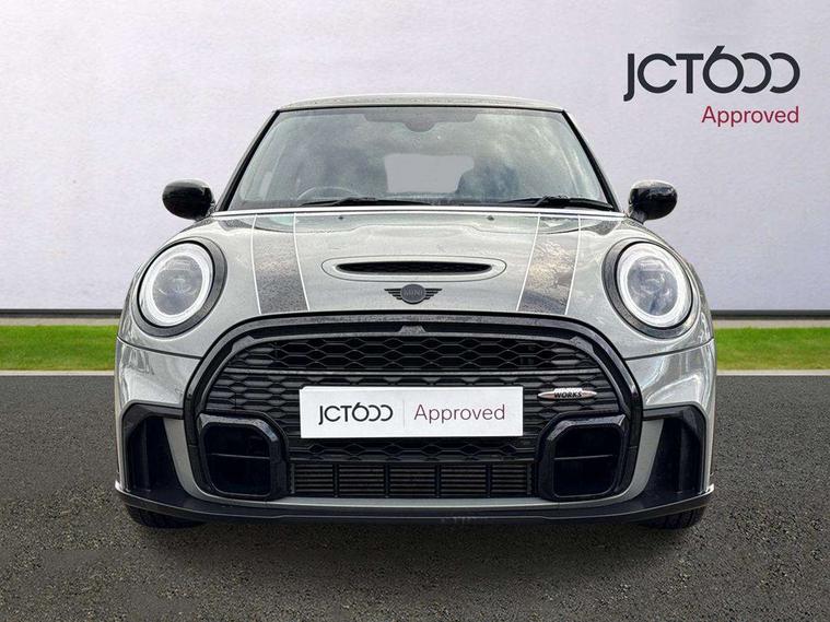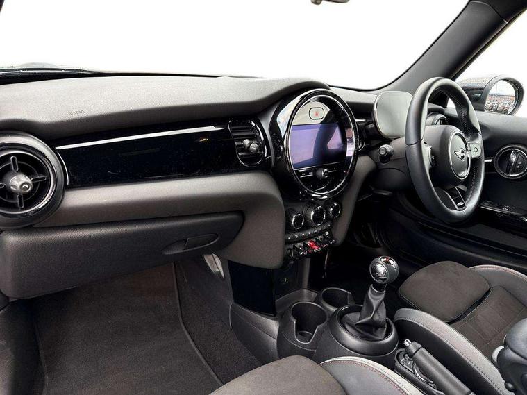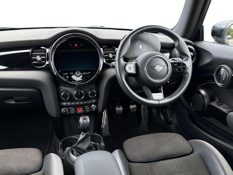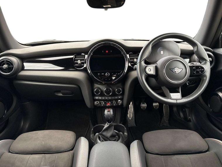 Automatic start/stop function with brake energy recuperation, Compatible mobile phone bluetooth with audio streaming, Cruise control with brake assist, Electro-mechanical speed dependant steering assistance, Flexible car sharing preparation, Instrument cluster, MINI Driving Modes - centre toggle switch to control driving setting (sport, mid and green), Mini E-call, MINI TeleServices, On board computer, Rear park distance control, Service interval indicator, 6 Speed manual transmission including gear change indicator display, Adaptive suspension, Double Vanos system, Fully variable valve control, High precision injection, Performance Control, 4 speakers in front door trims and underneath front seats, 8.8" touchscreen with LED ring, FM tuner and DAB digital radio, Automatic headlight activation switch, Bonnet scoop, Dynamic brake lights, Electric front windows, Heated rear window, Heated windscreen washer jets, JCW Aerodynamic kit - Front and rear bumpers with sporty JCW styling and part-painted side sills with MINI John Cooper Works door sill finishers, John Cooper Works rear spoiler, LED headlight with closed ring and daytime driving lights, Metal door sill strips with Cooper S, Model logo Cooper S on right of tailgate, Radiator grille chrome border with honeycomb structure including S Badge, Rain sensor window wipers, Rear fog lights, Rear LED lights with union jack design, Rear window wiper, Side scuttle panel with integrated indicator, Sun/heat protection glass, Two central exhaust tailpipes with chrome finisher, White indicator lenses, 12V Accessory socket in centre console, 4 lashing eyes in luggage compartment, 60/40 split folding rear seat, Anthracite headliner including grab handles and clothes hooks, Carbon black colour line - Knee roll and door armrest, Chrome interior highlights, Cupholders, Front and rear isofix with front passenger airbag deactivation, Glove compartment, Height and length steering column adjustment, Interior lighting with 12 different colours across the dashboard, underneath door bezel with illuminated laser-engraved design on central display, JCW Sport seats with integrated headrests, adjustable thigh support and John Cooper Works logo, Leatherette gearshift lever and handbrake gaiters, LED reading lights, vanity mirror lights, front foot well light and spotlight on front seats, Manual air conditioning, Mechanical seat adjustment - forward/back & backrest for front seats and driver seat height adjust, Multifunction steering wheel, Passenger seat height adjuster, Storage compartments in doors, Storage pocket on back of front seats, Sunvisors with vanity mirrors, Velour floor mats, Walknappa leather steering wheel with grey seam and John Cooper Works badge on Piano Black lower steering wheel spoke, Piano black exterior pack - Mini Hatchback Cooper S, 3 point seatbelts on all four seats, 6 Airbags - front, side, head and seat belt tensioners, Anti-lock braking system (ABS), DSC - Dynamic Stability Control, Front and rear disc brakes, Two tone horn, Tyre pressure monitoring system, Alarm system with tilt sensor, monitoring doors, bonnet interior and tailgate, Electronic vehicle immobiliser, Start/stop toggle with keyless go, Piano black interior trim, Tool kit,