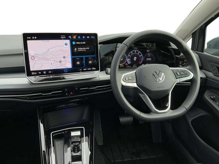 Activated carbon canister, Adaptive cruise control (ACC), Advanced driver attention and drowsiness monitor, Dynamic road sign display, E-Sim card for online connectivity, eCall emergency call system, Multi-color Digital cockpit pro, selection of different info profile possible, Multifunction front facing camera for distance control, Navigation system, Oncoming vehicle braking when turning including swerve support, Side assist blind spot lane change system, rear traffic alert and exit warning system, Speed limiter, Speedo, rev counter, electronic odometer, trip, service interval display, exterior temperature and fuel gauge, Traffic jam assist, Voice enhancer and voice control, Warning signal and warning light for front and rear seatbelts not fastened, We connect plus preparation, We connect preparation, Wireless app connect, Hybrid propulsion system, Petrol Particulate Filter, Start-stop system with battery regeneration (recuperation - energy recovery during braking), XDS electronic differential lock for improved traction and handling, 2 USB C ports in front, 2 USB charging sockets on the centre console in the rear charging capacity upto 45W, Digital radio reception (DAB), Diversity antenna for FM reception, Gaming platform via car app, Infotainment system with 12.9" display, Mobile phone interface with inductive charging feature, 3rd brake light, Automatic headlamp activation with Coming home and Leaving home feature, Body colour bumpers, Body colour door handles, Body colour door mirrors, Chrome trimmed front air intake surrounds, Chrome trims on the side window bottom, Exterior mirrors convex on the left and aspherical on the right, Front and rear electric windows, Heat insulating windshield made of laminated glass, LED separate daytime running light, Rear exhaust tailpipe, Rear fog light on one side and reversing lights on both sides, Rear side wing doors, Rear windscreen washer and wiper with interval delay, Remote electrically foldable door mirrors, puddle lights and reverse activated passenger's door mirror, Welcome light with surround lighting, 12V socket in front centre console, 12V socket in luggage compartment, 3 rear head restraints, 3 seat bench in 2nd row, Air care climatronic 3 Zone automatic climate control with rear air conditioning control panel, Ambient lighting with 30 colour including LED light unit in front footwell with selectable light colour, Art velours cloth upholstery, Chrome plated radiator grille inserts, air vent surrounds and light switch surrounds, Door insert, side trim panel and arm support in leatherette, Front + rear black carpet mats, Front centre armrest, Front head restraints, Front seat lumbar support adjuster, ISOFIX anchors for child seats on outer rear bench seats and on front passanger seat compatible for i-Size, Luggage compartment lighting, Manual height adjustable front passenger seat, Manually height adjustable driver seat, Plastic gear knob, Rear cupholder and loadthough, Single front passenger seat, Soul black instrument panel, Split folding backrest with centre armrest and unsplit rear seat bench, Sports comfort seats in front, Standard pedal cluster, Storm grey roof lining, Sun visors with illuminated vanity mirrors, Driver assistance pack - Golf Estate/Hatchback Auto, 3 point height adj front seatbelts + pretensioners, 3 rear three point seatbelts, ABS, Autonomous emergency braking front assist with pedestrian and cyclist monitoring, Child locks on rear doors, Driver and front passenger airbag with front passenger airbag deactivation, Electronic parking brake with auto hold, ESC (Electronic Stability Control), Extended pedestrian protection measures, Hill start assist, Rear disc brakes, Two tone horn, Tyre pressure loss indicator, Volkswagen roadside assistance, Anti theft wheel bolts, Preparation for alcohol interlock, New brushed dark metal decorative inserts for dashboard and front door panels,