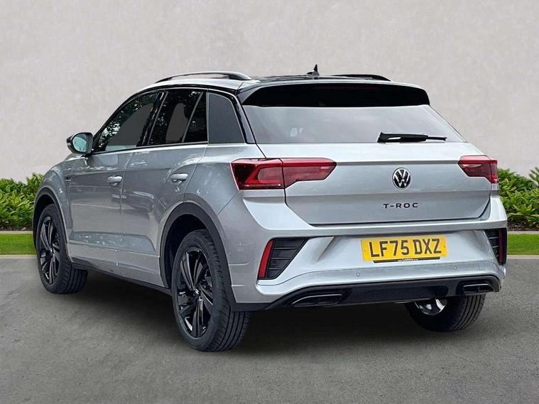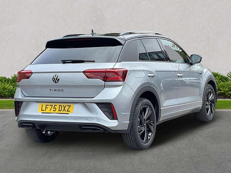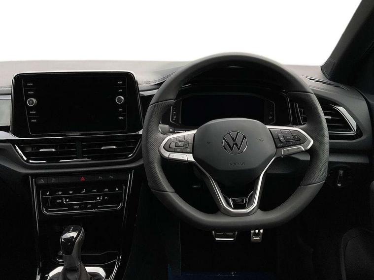 10.25" Digital cockpit pro, Advanced driver attention and drowsiness monitor, Emergency call service, Lane keeping system Lane Assist, Mobile phone interface, Modified key software - reduce switch off time for key status change to Long no motion, Online services, Park assist including front and rear parking sensors, Power assisted speed sensitive steering, Service interval indicator, Tailgate/trunk lid release from outside, Think blue trainer driver tips and journey analysis, Warning sound and light for front seatbelts unfastened, Wireless app connect, Battery regeneration during braking, Rear shock absorption chassis with increased ride height, Start/stop function with battery regeneration, DAB Digital radio, Diversity antenna for FM reception, Front and rear 6 speakers, Music playback - MP3, WMA and AAC files, Premium USB cable in choice of either Apple or Android smartphone compatibility, SD card slot, Simultaneous pairing of 2 compatible mobile devices, Title and cover art display, We Connect and We Connect Plus functionality, Auto dimming interior rear view mirror, Automatic hazard lights activation under emergency braking, Automatic headlight control with LED separate daytime running lights with coming/leaving home function, Dynamic cornering light, Electrically adjustable and heated door mirrors, Extended roof spoiler, Exterior mirrors aspherical on driver side, convex on front passenger side, External USB type C socket and charging sockets, Front windscreen wiper with intermittent wipe and 4 position delay, Heated rear window, Illuminated front grille, IQ LED matrix headlights, LED 3rd brake light, LED rear number plate lights, LED rear tail lights with dynamic turn signal, Light mode for poor weather, rain, fog or snow, Power windows with comfort operation and circuit breaker, R-Line design body coloured bumpers, Rain sensor, Rear exhaust tailpipe, Rear fog light on one side and reversing lights on both sides, Rear side wing doors, Rear wash/wipe with intermittent wipe setting, Remote electrically foldable door mirrors, puddle lights and reverse activated passenger's door mirror, 12V power socket in centre console, 3 rear head restraints, 3 seat bench in 2nd row, 4 load lashing points in luggage compartment, Air care climatronic air conditoning system with active combination filter and 2-zone temperature control, Artvelours cloth upholstery, Black roof lining, Chrome plated radiator grille inserts, air vent surrounds and light switch surrounds, Door and side trim panel with leatherette insert, Drawer under drivers seat, Driver seat height adjust, Driver's seat lumbar support, Front + rear carpet mats, Front centre armrest, Front comfort sports seats, Front cupholders x 2, Front footwell illumination, Front reading light, Front scuff plates with R Line logo, Front seat back storage pockets, Glove compartment door with light, Instrument lighting, white adjustable panel illumination, Interior ambient lighting and surround lighting, Interior light delay, Isofix child seat preparation, Leather gearshift handle, Leather wrapped multifunction steering wheel with paddle shift, Load-through provision with cup holder when folded down ('Unsplit rear seat bench, split folding backrest, with centre armrest), Luggage compartment lighting, Non-folding front passenger seat backrest, Passenger seat height adjuster, Passenger seat lumbar support, Single front passenger seat, Stainless steel pedals, Storage compartment in left and right luggage area, Storage compartment in rear doors, Storage compartments in driver and front passenger doors, Sunvisors with illuminated vanity mirrors, Variable boot floor, height adjustable and removable, Winter pack without heated windscreen washer jets - T-Roc, 3 point height adj front seatbelts + pretensioners, 3 point seatbelts in outer rear with ECE label, ABS, Child locks on rear doors, City emergency braking and pedestrian monitoring, Driver and front passenger airbag with front passenger airbag deactivation, Driver and front passenger safety-optimised head restraints, Drivers seatbelt reminder, Electronic parking brake, Electronic Stability Control (ESC) inc EDL (Electronic Differential Lock) and ASR (Traction Control), Front and rear passengers curtain airbag system including front side airbags, Front disc brakes, Hill start assist, Predictive pedestrian protection, Rear disc brakes, Two tone horn, Tyre pressure loss indicator, Volkswagen roadside assistance, Tool kit, Trims for alloy wheels, Tyre mobility kit including compressor and sealing foam,