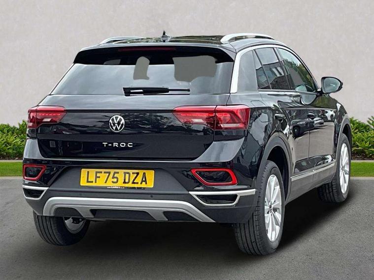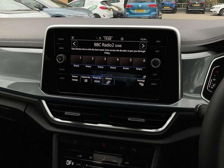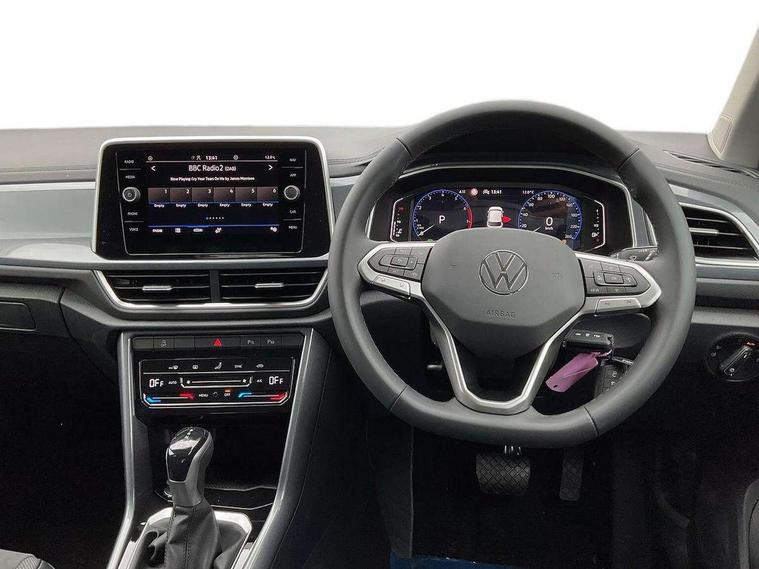 10.25" Digital cockpit pro, Advanced driver attention and drowsiness monitor, Emergency call service, Lane keeping system Lane Assist, Mobile phone interface, Modified key software - reduce switch off time for key status change to Long no motion, Online services, Park assist including front and rear parking sensors, Power assisted speed sensitive steering, Service interval indicator, Tailgate/trunk lid release from outside, Think blue trainer driver tips and journey analysis, Warning sound and light for front seatbelts unfastened, Wireless app connect, Battery regeneration during braking, Start/stop function with battery regeneration, DAB Digital radio, Diversity antenna for FM reception, Front and rear 6 speakers, Music playback - MP3, WMA and AAC files, Premium USB cable in choice of either Apple or Android smartphone compatibility, SD card slot, Simultaneous pairing of 2 compatible mobile devices, Title and cover art display, We Connect and We Connect Plus functionality, Auto dimming interior rear view mirror, Automatic hazard lights activation under emergency braking, Automatic headlight control with LED separate daytime running lights with coming/leaving home function, Body colour sports bumpers with silver metallic underbody fascia, Body coloured exterior mirror housings and door handles, Dynamic headlight range control with self adjusting whilst driving, Electrically adjustable and heated door mirrors, Extended roof spoiler, Exterior mirrors aspherical on driver side, convex on front passenger side, External USB type C socket and charging sockets, Front windscreen wiper with intermittent wipe and 4 position delay, Heated rear window, LED 3rd brake light, LED rear combination lamps, LED rear number plate lights, Light mode for poor weather, rain, fog or snow, Power windows with comfort operation and circuit breaker, Privacy glass for rear side windows and rear window, Rain sensor, Rear exhaust tailpipe, Rear fog light on one side and reversing lights on both sides, Rear side wing doors, Rear wash/wipe with intermittent wipe setting, Remote electrically foldable door mirrors, puddle lights and reverse activated passenger's door mirror, 12V power socket in centre console, 3 rear head restraints, 3 seat bench in 2nd row, 4 load lashing points in luggage compartment, Air care climatronic air conditoning system with active combination filter and 2-zone temperature control, Chrome plated radiator grille inserts, air vent surrounds and light switch surrounds, Door and side trim panel with leatherette insert, Drawer under drivers seat, Front + rear carpet mats, Front centre armrest, Front comfort sports seats, Front cupholders x 2, Front footwell illumination, Front seat back storage pockets, Glove compartment door with light, Instrument lighting, white adjustable panel illumination, Interior ambient lighting and surround lighting, Interior light delay, Isofix child seat preparation, Leather gearshift handle, LED interior light with switch off delay/dimmer and 2 front/rear LED reading lights, Load-through provision with cup holder when folded down ('Unsplit rear seat bench, split folding backrest, with centre armrest), Luggage compartment lighting, Non-folding front passenger seat backrest, Single front passenger seat, Storage compartment in left and right luggage area, Storage compartment in rear doors, Storage compartments in driver and front passenger doors, Sunvisors with illuminated vanity mirrors, Variable boot floor, height adjustable and removable, Driver assistance pack without proactive passenger protection - T-Roc, 3 point height adj front seatbelts + pretensioners, 3 point seatbelts in outer rear with ECE label, ABS, Child locks on rear doors, City emergency braking and pedestrian monitoring, Driver and front passenger airbag with front passenger airbag deactivation, Driver and front passenger safety-optimised head restraints, Drivers seatbelt reminder, Electronic parking brake, Electronic Stability Control (ESC) inc EDL (Electronic Differential Lock) and ASR (Traction Control), Front and rear passengers curtain airbag system including front side airbags, Predictive pedestrian protection, Rear disc brakes, Two tone horn, Tyre pressure loss indicator, Volkswagen roadside assistance, Deep iron grey decorative inserts in dashboard, centre console and front door trim panels, Trims for alloy wheels,