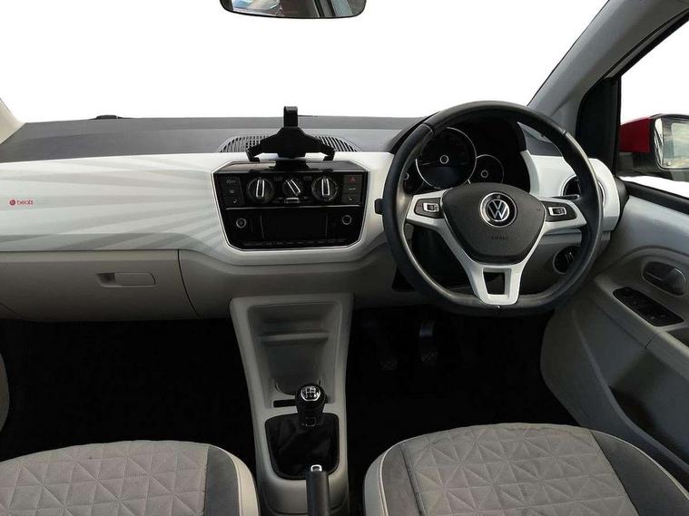 Digital clock, E-call, Lane assist, Multifunction computer, One touch indicators, Rev counter, Speed sensitive power steering, Speedometer, electronic odometer and fuel gauge, Galvanished body, Start/stop function with battery regeneration, Composition colour system with 5" screen, DAB, AUX in socket, SD card, MP3/WMA/AAC, 4 X 20W, bluetooth, audio connection and USB connectivity, Smartphone answering button on multifunction steering wheel with audio over the vehicle speaker system, Smartphone interface navigation system, Antenna, Black radiator grille, Body colour door handles, Body coloured bumpers, Chrome plated decorative stripe on tailgate, Door sill protectors with beats design, Electric front windows, Halogen clear headlights with integrated indicators and range adjustable, Heated rear window, High level 3rd brake light, Manually dimming rear view mirror, Rear fog lights, Rear side wing doors, Rear tinted glass from B pillar backwards, approx 65% tinted, Rear wash/wipe, Unique beats decals on the side skirts, Unique beats logo on B pillar, Windscreen wipers intermittent wipe, 12V accessory power point in centre console, 2 cup holders in the front and rear centre console, 2 separate seats in 2nd row, Ambient lighting, Beats cloth upholstery, Cooled glovebox, Driver seat height adjust, Drivers and front passengers easy entry sliding seat with memory function, Drivers and front passengers sun visors with vanity mirrors, Folding front seat backrest release on front passenger seat, Front + rear carpet mats, Front head restraints, Heating/ventilation unit with 4 speed fan, Height adjustable rear seat head restraints (x2), Height adjustable steering wheel, Interior light delay, Isofix Preparation 2 Rear child seats, Jack and tool kit, Light grey roof lining, Luggage compartment cover, Luggage compartment lighting, Multifunction leather trimmed three-spoke steering wheel, gear knob and handbrake grip, Single front passenger seat, Storage compartment in front doors, Two rear seats with 60/40 split folding rear seat backrest, Variable boot floor, Beats sound pack - Up, 3 point front seatbelts with pre-tensioners, Anti-lock braking system with EDL, EBD + TCS, Curtain airbags for front and rear passengers, Driver and front passenger airbag with front passenger airbag deactivation, Driver/front passenger side airbags, Engine drag torque control, Front disc brakes, High tone horn, Hill hold control, Hydraulic Brake Assist (HBA), Manual child lock in rear doors, Rear drum brakes, Two 3 point rear seatbelts, Tyre pressure loss indicator, Volkswagen roadside assistance, Warning buzzer and light for front and rear seat belts if unfastened, Electronic engine immobiliser, Locking fuel filler cap, Remote central locking with 2 remote folding keys, Chrome surrounds to the air vents, radio controls and air conditioning, Chrome-plated light switch surround, Deep dimension ceramique 3D upper dashpad with beats logo, 15" Radial alloy wheels with anti theft wheel bolts, Tyre mobility system,