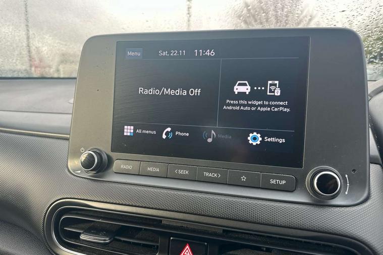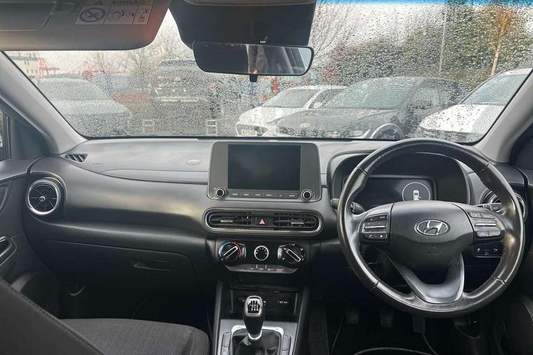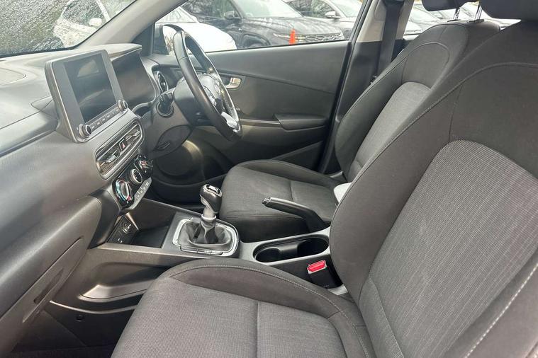 8" Touchscreen display audio + smart device integration, Bluetooth connectivity, Cruise control + speed limiter, Digital clock, Driver attention warning, Driver supervision instrument cluster with 10.25" LCD display, eCall emergency call system, Forward collision avoidance assist with pedestrian detection, Lane follow assist, Lane keep assist, Leading vehicle departure alert (LVDA), Parking system with rear camera and guidance system, PAS, Phone connection with apple carPlay and android auto, Rear parking sensor, Roadside assistance, Windscreen washer fluid sensor and warning indicator, 6 speed intelligent manual transmission, 6 speakers (2 front, 2 tweeters, 2 rear), Front USB ports, RDS and Digital DAB, Steering wheel mounted audio/phone controls, Automatic headlights with dusk sensor, Body colour door mirrors and handles, Door mirror integrated indicators, Electric front/rear windows with drivers one touch/anti-trap, Electrically adjustable and heated door mirrors, Halogen headlights, Halogen rear lights, LED daytime running lights, Positioning Lights - LED, Rain sensor, Rear roof spoiler with integrated LED brake light, Rear side wing doors, Rear wiper, Roof rails, Tinted glass with front door glass and windscreen with shade band, 12V power outlet in front console, 3 seat bench in 2nd row, 60/40 split folding rear seat, Adjustable head restraints, Air conditioning, Centre interior light, Cloth upholstery, Door scuff plate, Driver's seat height adjustment, Driver/passenger sunvisors and illuminated vanity mirrors, Front interior light, Front passenger seat manual adjustments, Height/reach adjustable steering column, Isofix rear child seat fastenings, Leather wrapped steering wheel and gear knob, Luggage compartment lighting, Luggage hooks, Metal paint effect interior door handles, Parcel shelf, Rear centre console with air vents, Single front passenger seat, Sunglasses holder, Vertical adjustment rear head restraints, Trailer wiring package - Kona, Airbags - front, front side and curtain airbags, Anti-lock brake system (ABS), Childproof rear door locks, Downhill brake control, EBD + Brake Assist, Electronic stability control, Fasten seatbelt reminder, Fixed 3 point for second row centre passenger seatbelt, Front seatbelt pretensioners, Height adjustable front seatbelts, Hill start assist control (HAC), Manual parking brake, Passenger airbag deactivate switch, Rear seat alert, Traction control, Tyre pressure monitoring system, Alarm/immobiliser, Deadlocks, Folding key, Locking wheel nuts, Remote central locking, 17" Alloy wheels,