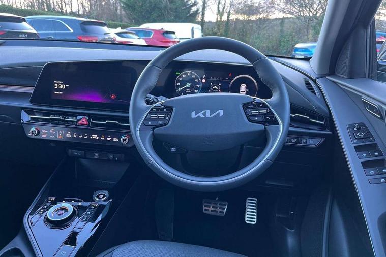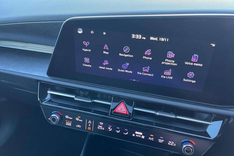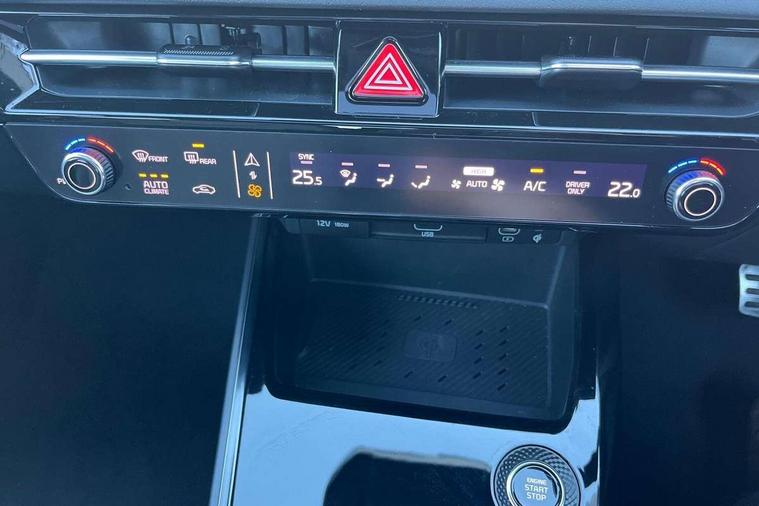 10.25" driver display screen, 10.25" touchscreen satellite navigation, Apple car play/Android Auto with voice control, Blind spot collision avoidance assist, Customisable Head Up Display, Drive mode select (Eco, normal, sport, snow), E-call, Emergency stop signalling system, Forward Collision-Avoidance Assist (FCA) 1.5 - City/Pedestrian/Cyclist/Junction turning, Front parking sensors, Highway Driving Assist (HDA), Intelligent speed limit assist, Kia Connect (UVO), Lane Following Assist (LFA), Lane keep assist, Motor driven power steering, Parking collision avoidance assist (PCA), Rear cross traffic collision avoidance assist (RCCA), Rear parking sensors, Remote smart parking assist, Reversing camera system, Safe exit warning (SEW), Smart cruise control with stop and go functionality, Smart power tailgate, Trip computer with distance/fuel consumption/average speed, Wireless Smartphone charger, 220v AC Inverter, 'Shark fin' mobile antenna, 6 speakers, Bluetooth with music streaming, DAB Digital radio, Steering wheel mounted controls, USB port for connection of a media device, Acoustic windshield, All round electric windows with drivers and front passenger auto up/down and safety function, Auto dimming rear view mirror, Automatic defog system, Automatic headlight control system, Black grille with chrome surround, Black window surrounds, Body colour bumpers, Body colour door mirrors, Body colour exterior door handles, Deluxe door scuff plates, Electrically adjustable and heated door mirrors with LED turn indicator, Electrically folding door mirrors, Front and rear chrome skid plates, Front fog lights, Gloss black wheel arches, Heated rear window, LED daytime running lights, LED Headlights, LED High mounted brake light, LED rear combination lights, Privacy glass - Rear windows and tailgate, Rain sensing front wipers, Rear fog lights, Rear roof spoiler, Rear side wing doors, Rear wiper, Roof rails, Solar glass windscreen, Sunroof with tilting and sliding function, Welcome and follow-me home light functionality, Windscreen Washer Level Warning, 12V socket in front, 12V socket in luggage compartment, 3 seat bench in 2nd row, 60:40 split remote folding rear seats, All-round height adjustable headrests, Alloy pedals, Artificial leather centre console storage box, Artificial leather steering wheel, Artificial leather upholstery, Automatic air conditioning, Centre console cupholder, Chrome coating interior door handles, Driver power adjusted memory seat, Driver/passenger sunvisors with illuminated vanity mirrors, Drivers seat power lumbar support, Front and rear door storage, Front passenger 1 x USB-C charging port, Front passenger power adjusted seat, Front passenger relaxation seat, Glove box, Heated front seats, Heated outer rear seats, Heated steering wheel, ISOFIX Child seat top tethers and anchor fixings, LED Front cabin, rear & luggage compartment lights, Luggage area load cover, Luggage board, Manually adjustable steering column, Paddle shifts, Power adjustable lumbar support on front passenger seat, Rear centre armrest with cupholder, Rear passenger 2 x USB-C charging ports, Seatback pocket - driver, Seatback pocket - front passenger, Shift by wire SBW, Single front passenger seat, Ventilated front seats, Ventiliation ducts to rear compartment, 3 point seatbelts on all seats, ABS, Automatic unlocking of doors in case of impact, Curtain and side airbags, Dual shell horn, Electric parking brake with auto hold function, Electronic stability control, Front airbags, Front passenger airbag cut-off switch, Height adjustable front seatbelts, Hill start assist control (HAC), Knee airbags, Seatbelt reminder warning, Traction control, Tyre pressure monitoring system, Customisable automatic door locking, Customisable automatic door unlocking, Deadlocks, Engine Start/Stop Button with Smart Entry System, Locking wheel nuts, Manual child locks, Rear occupant alert, Smart key with motion sensor, Thatcham category 2 security alarm and immobiliser, Visible vehicle identification number, Warranty - 7 Years/ 100, 000 miles, Centre fascia chopped carbon, 18" Alloy wheels, Tyre mobility kit,