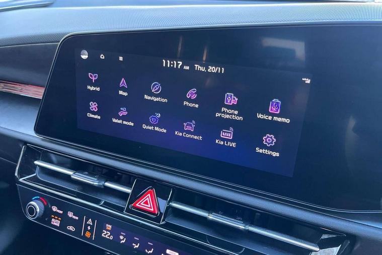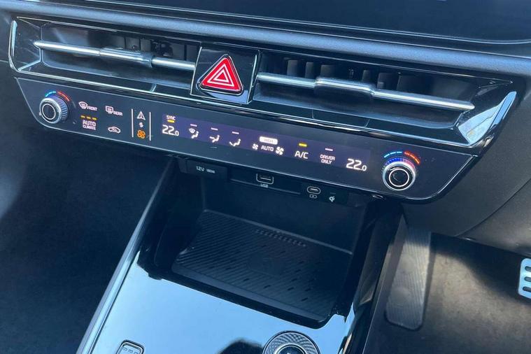 10.25" driver display screen, 10.25" touchscreen satellite navigation, Apple car play/Android Auto with voice control, Blind spot collision avoidance assist, Customisable Head Up Display, Drive mode select (Eco, normal, sport, snow), E-call, Emergency stop signalling system, Forward Collision-Avoidance Assist (FCA) 1.5 - City/Pedestrian/Cyclist/Junction turning, Front parking sensors, Highway Driving Assist (HDA), Intelligent speed limit assist, Kia Connect (UVO), Lane Following Assist (LFA), Lane keep assist, Motor driven power steering, Parking collision avoidance assist (PCA), Rear cross traffic collision avoidance assist (RCCA), Rear parking sensors, Remote smart parking assist, Reversing camera system, Safe exit warning (SEW), Smart cruise control with stop and go functionality, Smart power tailgate, Trip computer with distance/fuel consumption/average speed, Wireless Smartphone charger, 220v AC Inverter, 'Shark fin' mobile antenna, 6 speakers, Bluetooth with music streaming, DAB Digital radio, Steering wheel mounted controls, USB port for connection of a media device, Acoustic windshield, All round electric windows with drivers and front passenger auto up/down and safety function, Auto dimming rear view mirror, Automatic defog system, Automatic headlight control system, Black grille with chrome surround, Black window surrounds, Body colour bumpers, Body colour door mirrors, Body colour exterior door handles, Deluxe door scuff plates, Electrically adjustable and heated door mirrors with LED turn indicator, Electrically folding door mirrors, Front and rear chrome skid plates, Front fog lights, Gloss black wheel arches, Heated rear window, LED daytime running lights, LED Headlights, LED High mounted brake light, LED rear combination lights, Privacy glass - Rear windows and tailgate, Rain sensing front wipers, Rear fog lights, Rear roof spoiler, Rear side wing doors, Rear wiper, Roof rails, Solar glass windscreen, Sunroof with tilting and sliding function, Welcome and follow-me home light functionality, Windscreen Washer Level Warning, 12V socket in front, 12V socket in luggage compartment, 3 seat bench in 2nd row, 60:40 split remote folding rear seats, All-round height adjustable headrests, Alloy pedals, Artificial leather centre console storage box, Artificial leather steering wheel, Artificial leather upholstery, Automatic air conditioning, Centre console cupholder, Chrome coating interior door handles, Driver power adjusted memory seat, Driver/passenger sunvisors with illuminated vanity mirrors, Drivers seat power lumbar support, Front and rear door storage, Front passenger 1 x USB-C charging port, Front passenger power adjusted seat, Front passenger relaxation seat, Glove box, Heated front seats, Heated outer rear seats, Heated steering wheel, ISOFIX Child seat top tethers and anchor fixings, LED Front cabin, rear & luggage compartment lights, Luggage area load cover, Luggage board, Manually adjustable steering column, Paddle shifts, Power adjustable lumbar support on front passenger seat, Rear centre armrest with cupholder, Rear passenger 2 x USB-C charging ports, Seatback pocket - driver, Seatback pocket - front passenger, Shift by wire SBW, Single front passenger seat, Ventilated front seats, Ventiliation ducts to rear compartment, 3 point seatbelts on all seats, ABS, Automatic unlocking of doors in case of impact, Curtain and side airbags, Dual shell horn, Electric parking brake with auto hold function, Electronic stability control, Front airbags, Front passenger airbag cut-off switch, Height adjustable front seatbelts, Hill start assist control (HAC), Knee airbags, Seatbelt reminder warning, Traction control, Tyre pressure monitoring system, Customisable automatic door locking, Customisable automatic door unlocking, Deadlocks, Engine Start/Stop Button with Smart Entry System, Locking wheel nuts, Manual child locks, Rear occupant alert, Smart key with motion sensor, Thatcham category 2 security alarm and immobiliser, Visible vehicle identification number, Warranty - 7 Years/ 100, 000 miles, Centre fascia chopped carbon, 18" Alloy wheels, Tyre mobility kit,