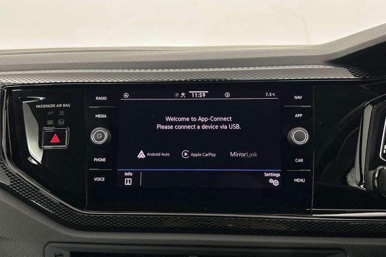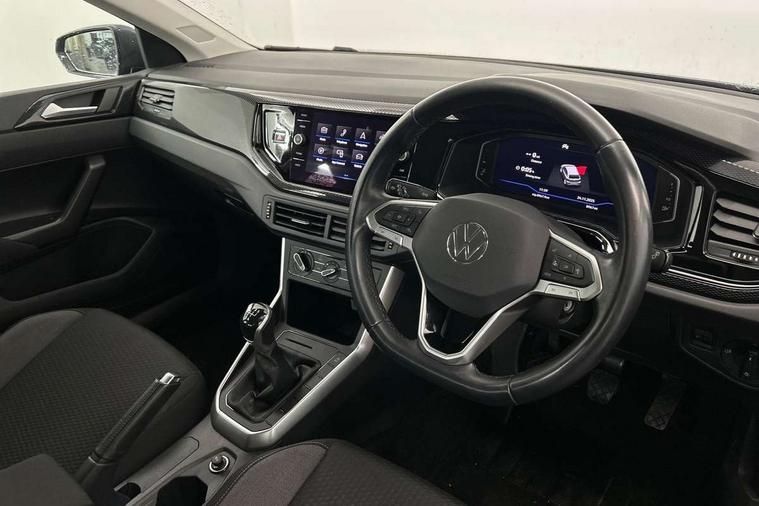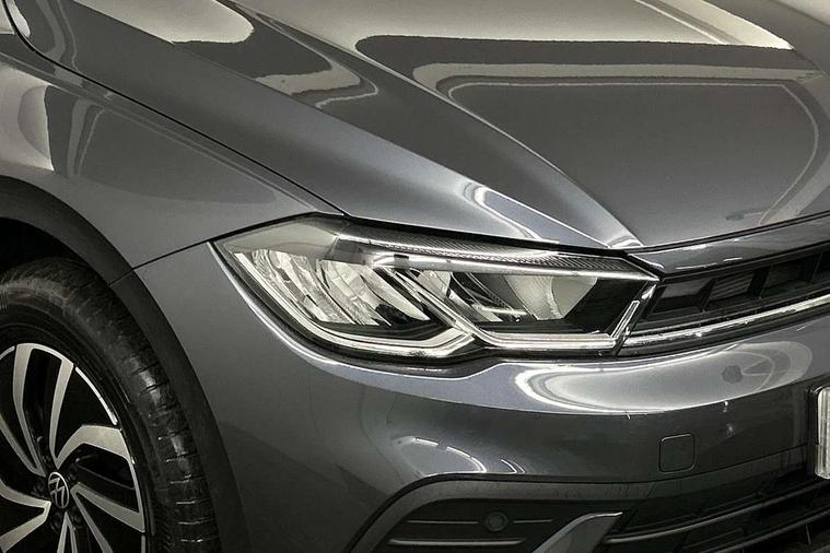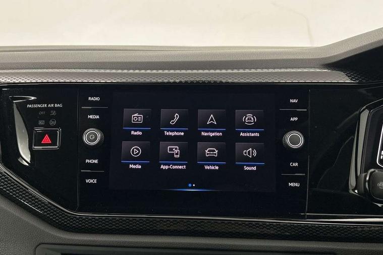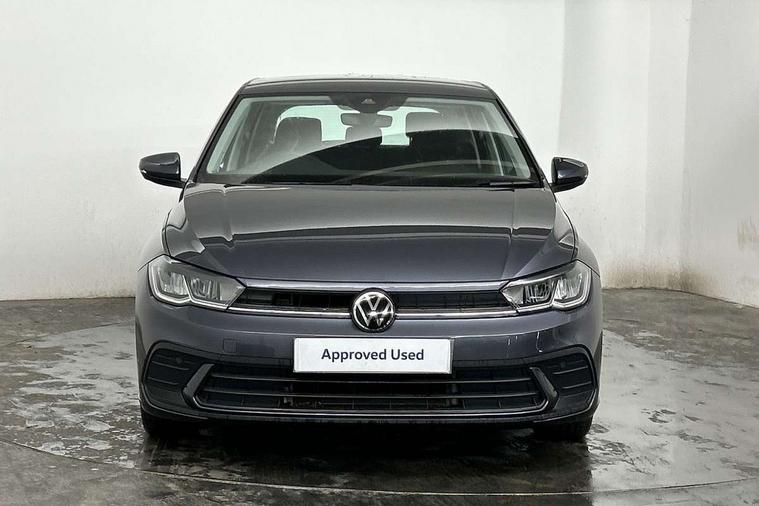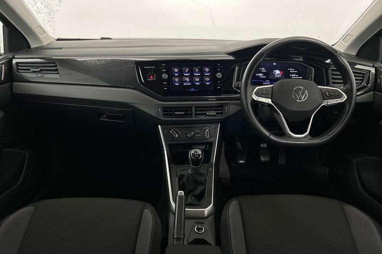 Adaptive cruise control without follow-to-stop and speed limiter, Bluetooth mobile phone interface, Driver alert system, Emergency call service, Front assist system, Power assisted speed sensitive steering, Preparation for We connect and We connect plus, Speedo and rev counter, electronic odometer, trip, service interval display and fuel gauge, Standard rear axle, Travel Assist - Lane keeping system and traffic jam assist, Travel assist including emergency assist, Trip computer, Warning signal and warning light for front and rear seatbelts not fastened, Washer fluid level indicator, Wireless app connect, Front wheel drive, Rear shock absorpion, Start-stop system with battery regeneration (recuperation - energy recovery during braking), DAB Digital radio, Diversity antenna for FM reception, Front and rear 6 speakers, Automatic dimming interior rear view mirror, Body colour bumpers, Body colour door handles, Body colour door mirrors, Electric front windows, Heat insulating darkened glass in side and rear windows, Heat insulating glass windscreen, Power folding adjustable/heated exterior mirrors and front passenger exterior mirror lowering function, Rain sensor, Rear electric windows, Rear fog light, Rear side wing doors, Rear windscreen washer and wiper with interval delay, Third brake light, 12V power socket in centre console, 2 front and 2 rear reading lights, 2 USB-C ports in the front, 2 USB-C charging sockets on the center console in the rear, 3 rear head restraints, 60/40 split folding rear seat and rear seat bench not split, Ceramique headliner, Chrome plated radiator grille inserts, air vent surrounds and light switch surrounds, Door and side trim panel, Driver and front passenger seat height adjustment, Driver/passenger sunvisors with illuminated vanity mirrors, Front centre armrest, Front seat backrest storage pockets, Front standard seats, Handbrake lever handle in leather, Hartley/Thomas cloth upholstery, Isofix child seat preparation easy-fit (for two outer rear seats, and front passenger seat) compatible with I-size, Leather trimmed gear knob, Luggage compartment cover, Luggage compartment floor, Luggage compartment lighting, Multifunction steering wheel, Single front passenger seat, Standard pedal cluster, Light and vision pack - Polo, 3 point height adj front seatbelts + pretensioners, 3x3 point rear seatbelts, ABS, Driver and front passenger airbag with front passenger airbag deactivation, Drivers and front passengers safety optimised head restraints, ESC (Electronic stability control) + EDL (Electronic Differntial lock) and ASR (Traction control), Extended and predictive pedestrian/ cyclist protection, Front curtain and side airbags with center airbag, Front disc brakes, Hill hold control, Manual child lock in rear doors, Rear drum brakes, Single tone horn, Tyre pressure loss indicator, Alarm with interior protection, Anti-theft alarm system with interior monitoring, backup horn, and towing protection, Anti-theft wheel bolts, Electronic engine immobiliser, Lava stone black gloss/matt decorative inserts in dash and front door panels, Low rolling resistance tyres,