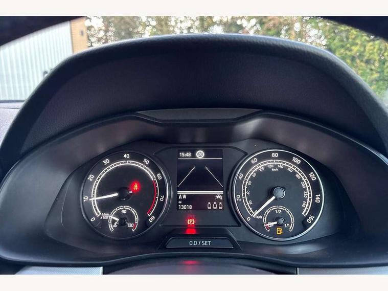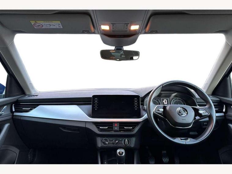 Amundsen satellite navigation with 9.2" glass colour touchscreen display, web radio, voice control and traffic sign recognition, Bluetooth system, E-call, Front assist system, Gesture control, PAS, Service indicator, Speed limiter, Wireless SmartLink for apple car play, android auto and mirrorlink, 8 Speakers, Auxiliary input socket, DAB Digital radio, Body colour bumpers, Body colour door mirrors and handles, Chrome grille surround, Dimming rear view mirror with black surround, Electrically adjustable and heated door mirrors, Front and rear electric windows, Headlight range control, Heated rear window, LED rear lights - low functionality, Light sensors, Privacy glass, Rear fog lights, Rear side wing doors, Rear wiper, 12V Accessory socket in centre console, 3 seat bench in 2nd row, Chrome inner door handles, Cloth upholstery, Front head restraints, Glove compartment with illumination, Height adjustable driver and front passenger seats - manual, Ice scraper, Isofix child seat fittings on outer rear seats, ISOFIX on front passenger seat, Manual lumbar support for front seats, Rake/reach adjustable steering wheel, Reading lights, Single front passenger seat, Sun visors with illumination on front passenger, Textile floor mats, Third rear headrest, Top tether for front passenger seat, Umbrella in driver's door, 3x3 point rear seatbelts, Airbags - driver and front passenger, ESP, Front passenger airbag deactivation switch, Front side airbags with curtain airbags, Hill hold control, Manual parking brake, Manual rear child locks, One tone horn, Rear disc brakes, Seatbelt reminder for driver an co-driver, Traction control, Tyre pressure monitor, Anti-theft alarm system with interior monitoring, backup horn, towing protection and remote central locking with SAFE system, Anti-theft wheel bolts, Electronic engine immobilizer, Silver haptic decorative insert on the dashboard with hot stamping in glossy black,