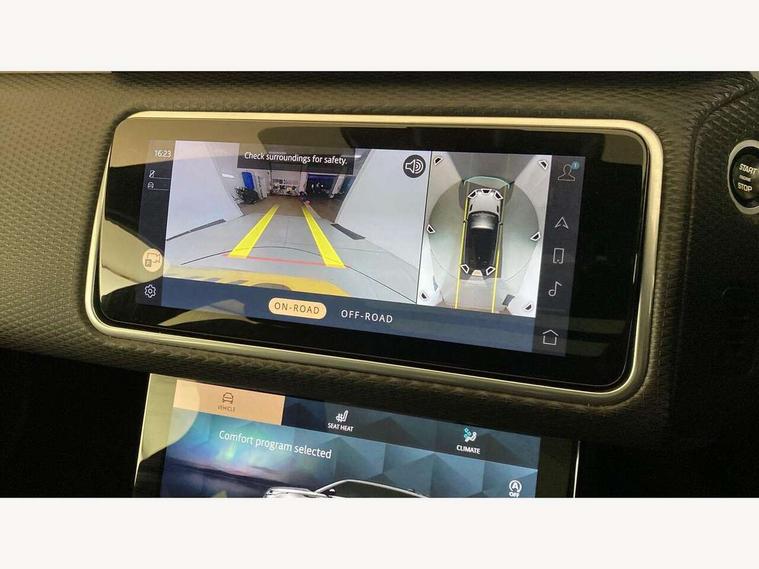 10" touch screen, 3D Surround camera includes, clear sight ground view, 360 parking aid and wade sensing, Android Auto, Apple car play, Blind spot assist, Bluetooth connectivity, Brake pad wear indicator warning light, Driver condition monitor, InControl remote, Interactive Driver display instrument cluster, Land Rover InControl apps, Lane keep assist, Pivi pro connected includes upgraded infotainment, smart settings, connected navigation pro, Nuance speech licence, Powered gesture tailgate/boot lid, Push button start, Rear traffic monitor, Service indicator, Speed proportional electronic power assisted steering (EPAS), Traffic sign recognition with adaptive speed limiter, Trip computer, Voice control system, Wade Sensing, 8 speed automatic transmission, Open differential with torque vectoring by braking, Single speed transfer box, Digital Audio Broadcast radio-DAB, Steering wheel mounted controls, Acoustic laminated windscreen, Adaptive front lighting system, Auto dimming interior rear view mirror, Automatic headlamp levelling, Automatic headlights, Body coloured bumpers, Boot protection plate, Electric heated/power fold door mirrors with approach lights and auto dimming driver side, Electric windows with one touch open/close and anti trap, Flush deployable exterior door handles, Follow me home headlights, Front fog lights, Heated rear window with timer, Heated windscreen + heated windscreen washer jets, Metal load space scuff plates, Metallic paint, Privacy glass, Rain sensor windscreen wipers, Rear fog lights, Rear wash/wipe, SE badge, Sliding panoramic sunroof with auto blind function, Tailgate/boot lid spoiler, Trailer stability assist, Velar and R-dynamic badge, 40:20:40 split folding rear seats, Ambient lighting, Bright metal pedals, Driver/passenger sunvisors with illuminated vanity mirrors, Heated steering wheel, Isofix system on outer rear seats, Loadspace cover, Overhead lighting console, Overhead stowage for sunglasses, Passive front headrests, Rear air vents, Rear centre headrest, Satin chrome gearshift paddles, Standard interior, Twin front cupholders, Twin sliding front centre armrest, Online pack with data plan - Velar, R-Dynamic black pack - Velar, 355mm front brakes and 325mm rear brakes, 3x3 point rear seatbelts, Anti-lock braking system (ABS), Cornering brake control, Curtain airbags, Customer configurable autolock, Door side intrusion beams, Driver airbag, DSC - Dynamic Stability Control, Electronic brake force distribution, Electronic parking brake, Electronic traction control, Emergency brake assist, Emergency braking, Front and rear seatbelt reminder, Hill descent control, Hill launch assist, Low traction launch, Passenger airbag, Power operated child locks, Rear airbags, Roll stability control, Side airbags, Tyre pressure monitoring system, Unpainted brake calipers, Global lock and unlock switch on driver door, Immobiliser, Intrusion sensor, Keyless entry, Lock only switch on front passenger door, Locking wheel nuts, Perimetric alarm, Remote central locking, 20" 7 spoke alloy wheels with gloss black finish - Style 7014,