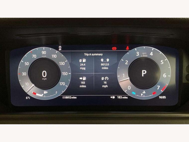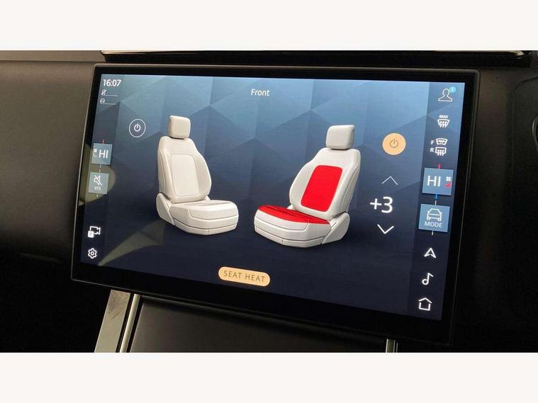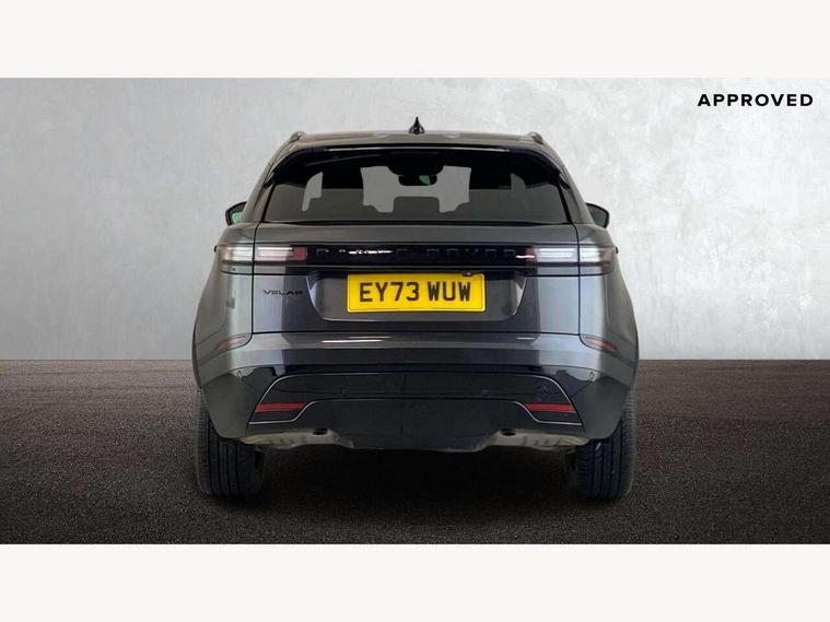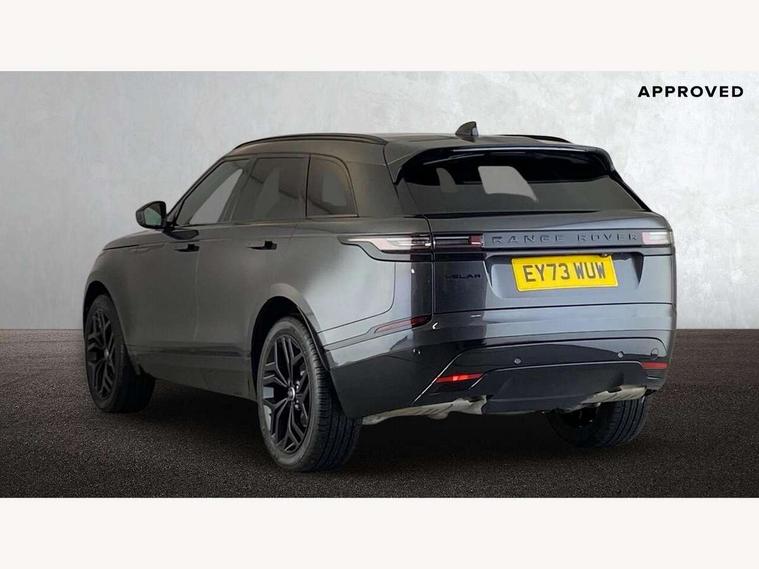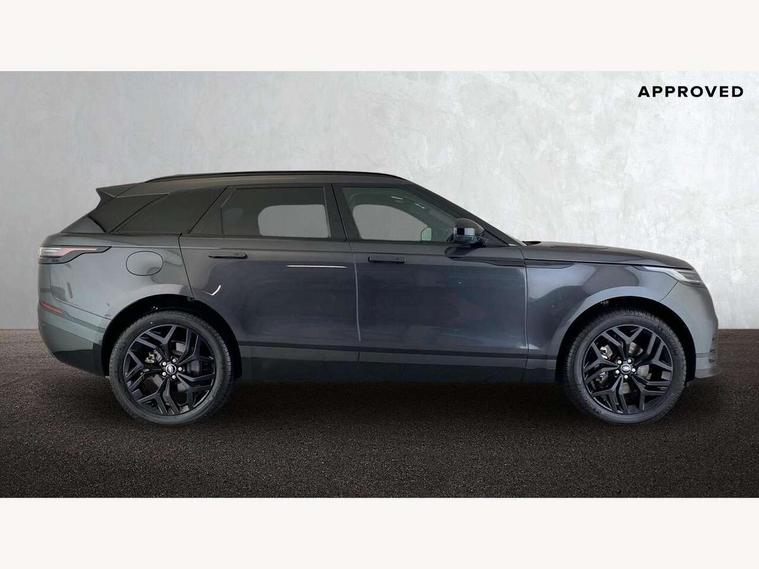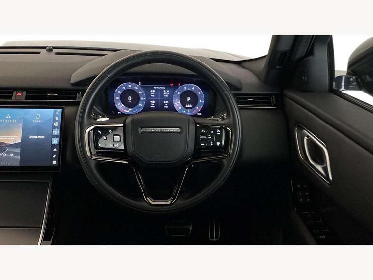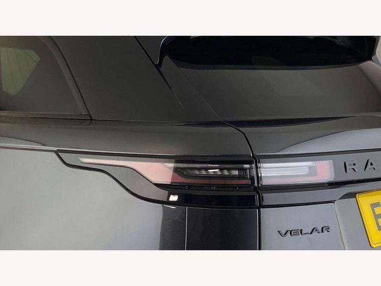 Adaptive cruise control with steering assist, Android Auto, Apple CarPlay, Blind spot assist, Bluetooth connectivity, Brake pad wear indicator warning light, Driver condition monitor, eCall emergency call system, Front and rear parking aid, InControl remote, Land Rover InControl apps, Lane keep assist, Pivi pro with connected navigation, Rear collision monitor, Rear traffic monitor, Service indicator, Speed proportional electronic power assisted steering (EPAS), Traffic sign recognition with adaptive speed limiter, Trip computer, Voice control system, 8 speed automatic transmission, Adaptive dynamics, All terrain progress control, Open differential with torque vectoring by braking, Single speed transfer box, DAB radio, Steering wheel mounted controls, 3rd brake light, Acoustic laminated windscreen, Auto dimming interior rear view mirror, Automatic headlamp levelling, Automatic headlights, Black roof rails, Body coloured bumpers, Boot protection plate, Electric windows with one touch open/close and anti trap, Flush deployable exterior door handles, Follow me home headlights, Heated rear window with timer, Heated washer jets, Metal front tread plates, Metal load space scuff plates, Pixel LED headlights with signature DRL, Power fold, auto-dimming, heated door mirrors with memory and approach lights, Rain sensor windscreen wipers, Rear animated directional indicators, Rear fog lights, Rear side wing doors, Rear wash/wipe, Tailgate/boot lid spoiler, Trailer stability assist, Velar badge, 3 seat bench in 2nd row, Ambient lighting, Bright metal pedals, Carpet mats, Driver/passenger sunvisors with illuminated vanity mirrors, Ebony morzine headlining, Electrically adjustable steering column, Heated steering wheel, Isofix system on outer rear seats, Loadspace cover, Overhead lighting console, Overhead stowage for sunglasses, Passive front headrests, Rear air vents, Rear centre headrest, Single front passenger seat, Twin front cupholders, Twin sliding front centre armrest, Online pack with data plan - Velar, Power socket pack 2 - Velar, 355mm Front and 325mm Rear brakes, 3x3 point rear seatbelts, Anti-lock braking system (ABS), Cornering brake control, Curtain airbags, Customer configurable autolock, Door side intrusion beams, Driver airbag, DSC - Dynamic Stability Control, Electronic brake force distribution, Electronic parking brake, Electronic traction control, Emergency braking, Front and rear seatbelt reminder, Hill descent control, Hill launch assist, Low traction launch, Passenger airbag, Power operated child locks, Rear airbags, Roll stability control, Side airbags, Tyre pressure monitoring system (TPMS), Global lock and unlock switch on driver door, Immobiliser, Intrusion sensor, Keyless entry, Lock only switch on front passenger door, Locking wheel nuts, Perimetric alarm, Remote central locking,