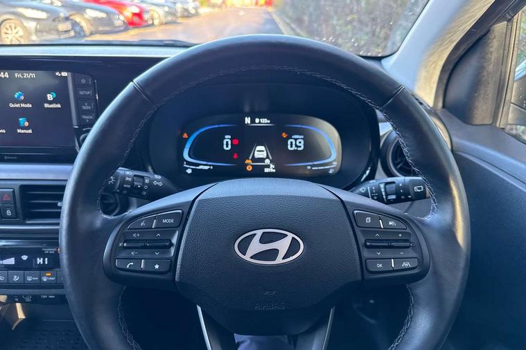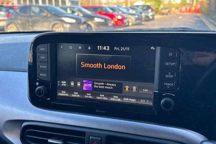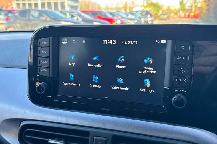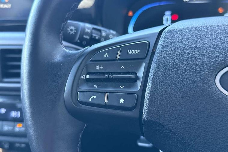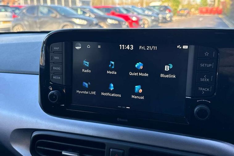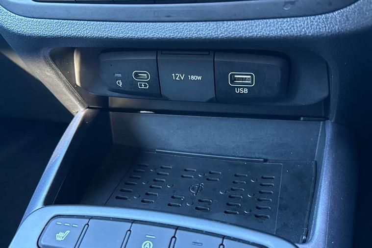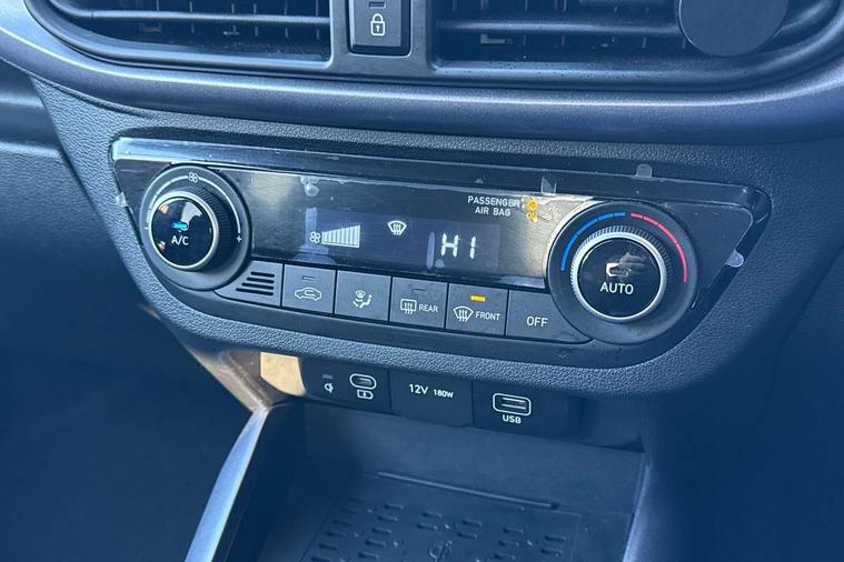 Apple car play/Android Auto, Bluelink mobile remote connectivity, Bluetooth connectivity with voice recognition, Cruise control, Driver attention alert system, eCall emergency call system, Forward Collision-Avoidance Assist (FCA) - Pedestrian/Cyclist, Front USB-C charging and USB-A data, Full-width 4.2" LCD instrument cluster, Intelligent speed limit assist, Lane departure warning system with lane keep assist - LKAS, Lane follow assist, PAS, Rear parking sensors, Rear view camera with guidelines, Roadside assistance, Start/Stop function, Tailgate, Trip computer, Wireless charging pad, 2 front/2 rear speakers, Rear USB-C device charger, Steering wheel audio, phone and cruise controls, 1 speed non intermittent rear windscreen wiper, Black finish on B pillars, Body colour door handles, Body coloured bumpers, Body coloured door mirrors, Electric folding door mirrors, Electric front windows, Electric rear windows, Electrically adjustable and heated door mirrors, Flat metal emblem, Front fog lights, Front grille in glossy black, Front intermittent wipers, Halogen bi-function headlights, Headlights inner with Black Blade design, Heated rear window, High beam assist, Indicator light on door mirrors, LED DRLs diamond mesh design, Privacy glass - Rear windows and tailgate, Rear roof spoiler with integrated LED brake light, Rear side wing doors, 12v power outlet - front, 3 seat bench in 2nd row, 60/40 split folding flat to floor rear seats, Air conditioning, Auto light control, Bottle holders in front/rear doors + front centre console, Cabin and luggage compartment interior lighting, Cloth upholstery, Driver + passenger vanity mirrors, Driver's seat height adjustment, Driver/passenger sunvisors with ticket holders, Floor mats, Front door pockets, Front Head Restraints - Vertical and Horizontal Adjustment, Front LED blue mood lighting, Glove compartment, Heated front seats, Heated steering wheel, Height adjustable steering column, Isofix child seat preparation, Leather multifunction steering wheel, Rear door pockets, Single front passenger seat, Vertical adjustment rear head restraints, 3x3 point rear seatbelts, Airbags - front, front side and curtain airbags, Anti-lock brake system (ABS), Autonomous emergency braking (AEB) with forward collision warning system, Brake assist function, Childproof rear door locks, Electronic stability control, Front and rear seatbelt reminder, Front seatbelt pretensioners, Hill start assist control (HAC), Passenger airbag deactivate switch, Traction control, Tyre pressure monitoring system, Immobiliser, Perimeter alarm, Rear occupant alert, Remote central locking, Second remote key, Smart key with motion sensor, Speed sensitive auto door locking, 16" alloy wheels, Tyre repair kit,